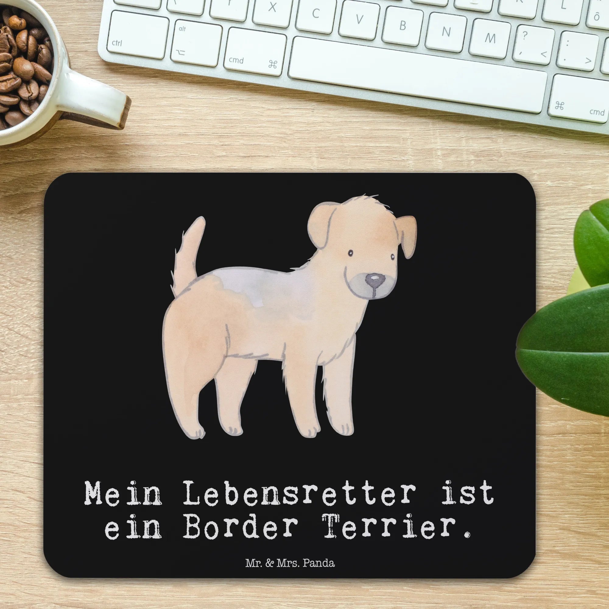 Mouse mat Border Terrier Lifesaver - with saying - Grey Pastel