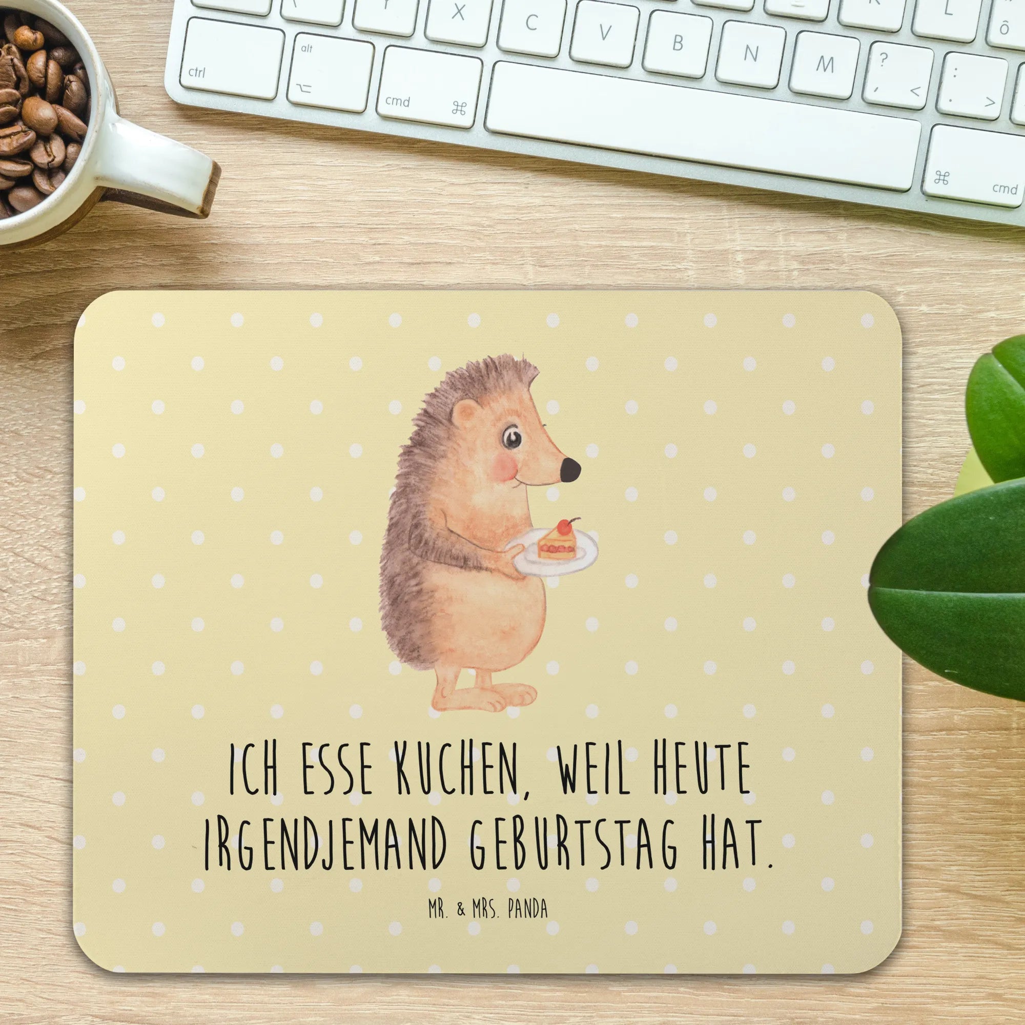 Mouse mat Hedgehog piece of cake - with a saying - Pastel Yellow