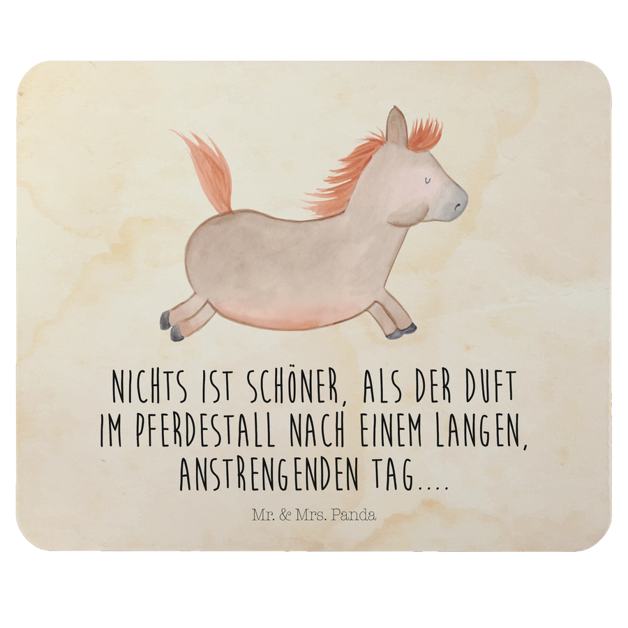 The lovely slogan, "Nichts ist schöner als der Duft im Pferdestall nach einem langen, anstrengenden Tag...." (Nothing is more beautiful than the scent of the horse stable after a long, tiring day....), which you can opt for, adds a warm, personal touch that's sure to resonate with any horse aficionado. Picture their smile as they place this mouse pad on their desk, serving as a daily reminder of their passion for horses.
