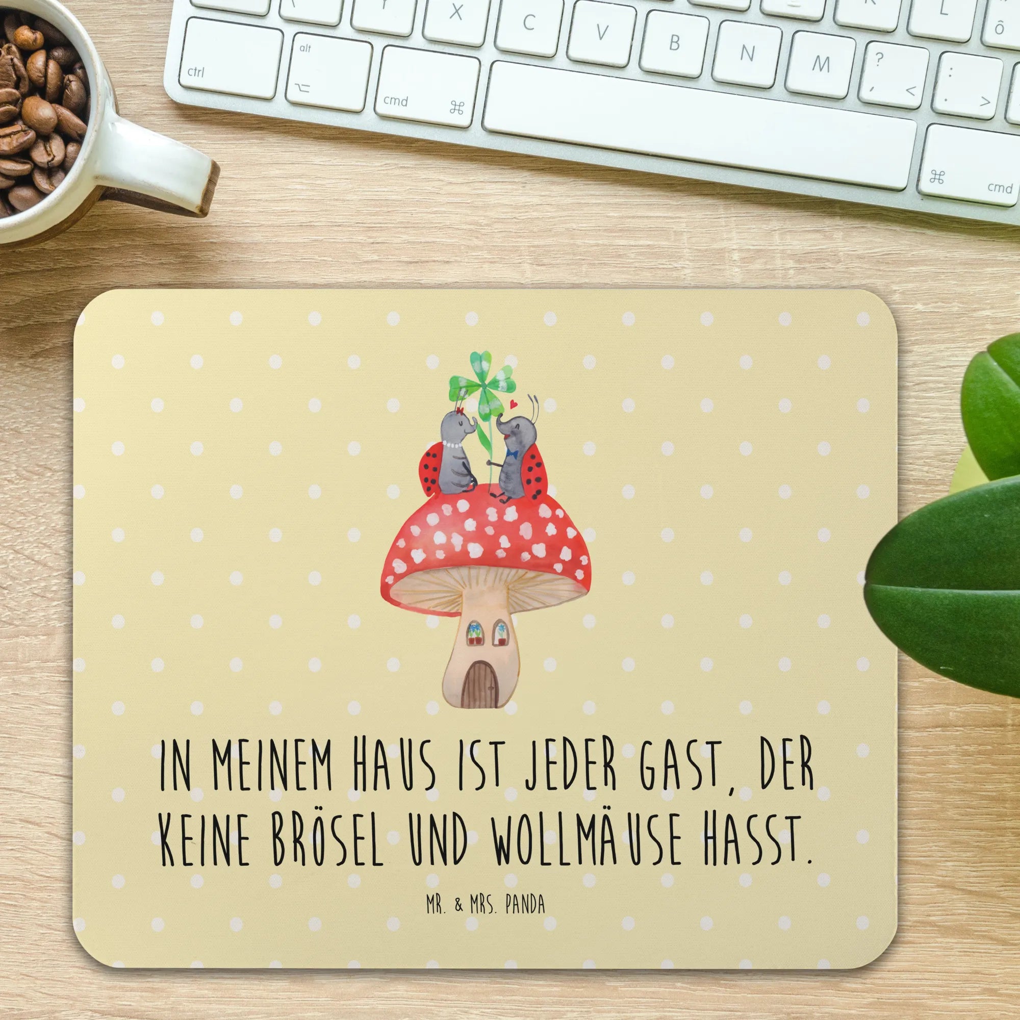Mouse mat ladybug toadstool - with a saying - Pastel Yellow