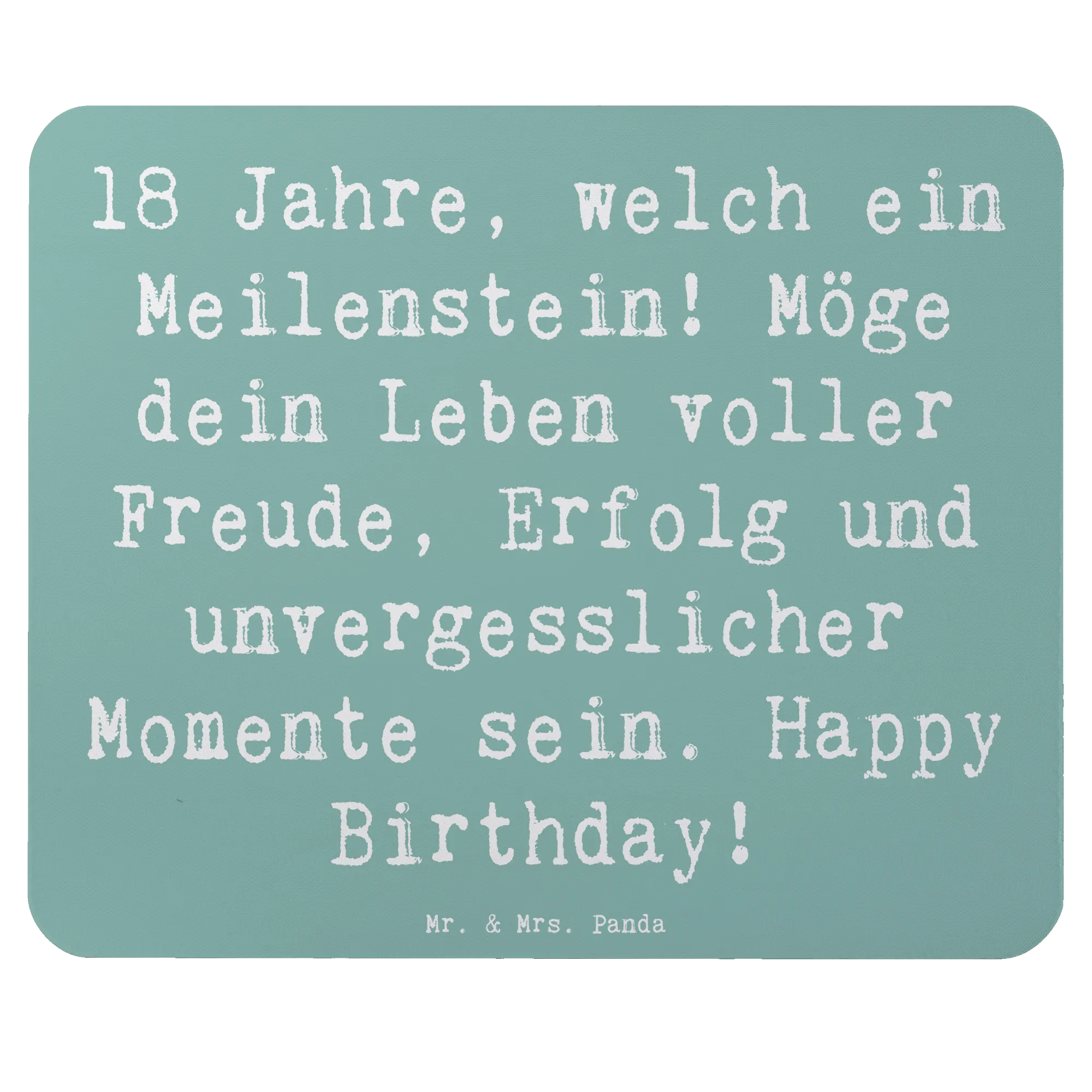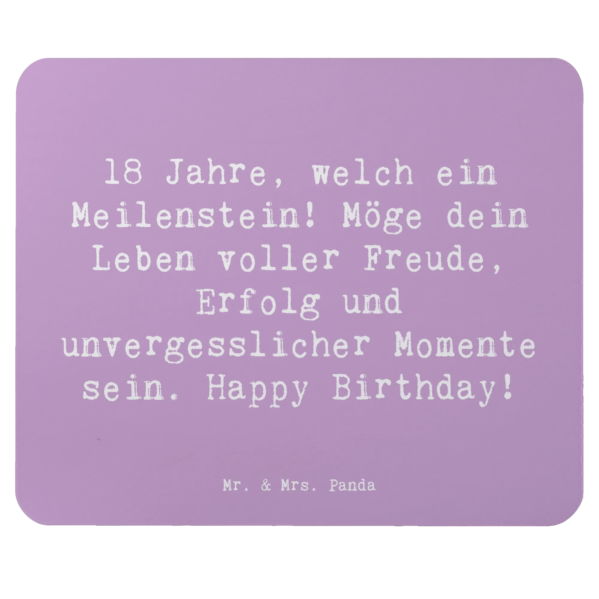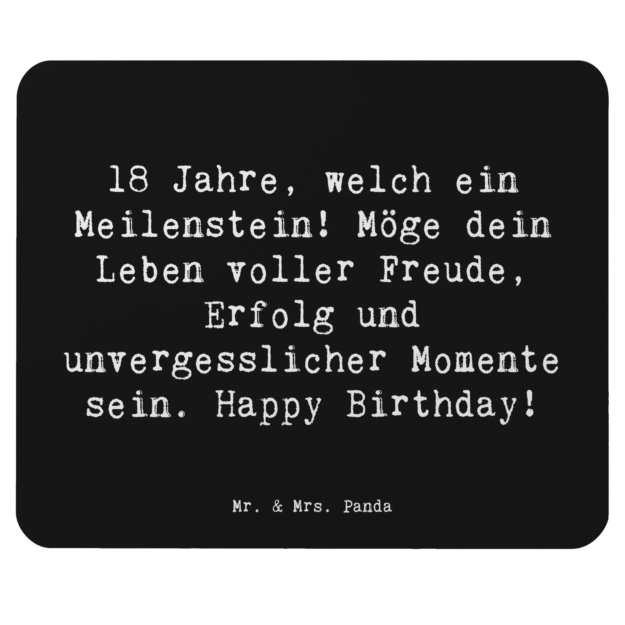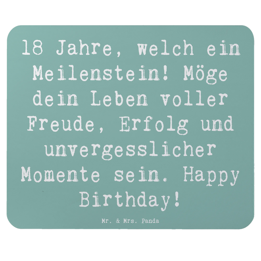 Das Mauspad ist mit dem Spruch "18 Jahre, welch ein Meilenstein! Möge dein Leben voller Freude, Erfolg und unvergesslicher Momente sein. Happy Birthday!" bedruckt und bringt garantiert ein Lächeln auf die Lippen des Geburtstagskindes.