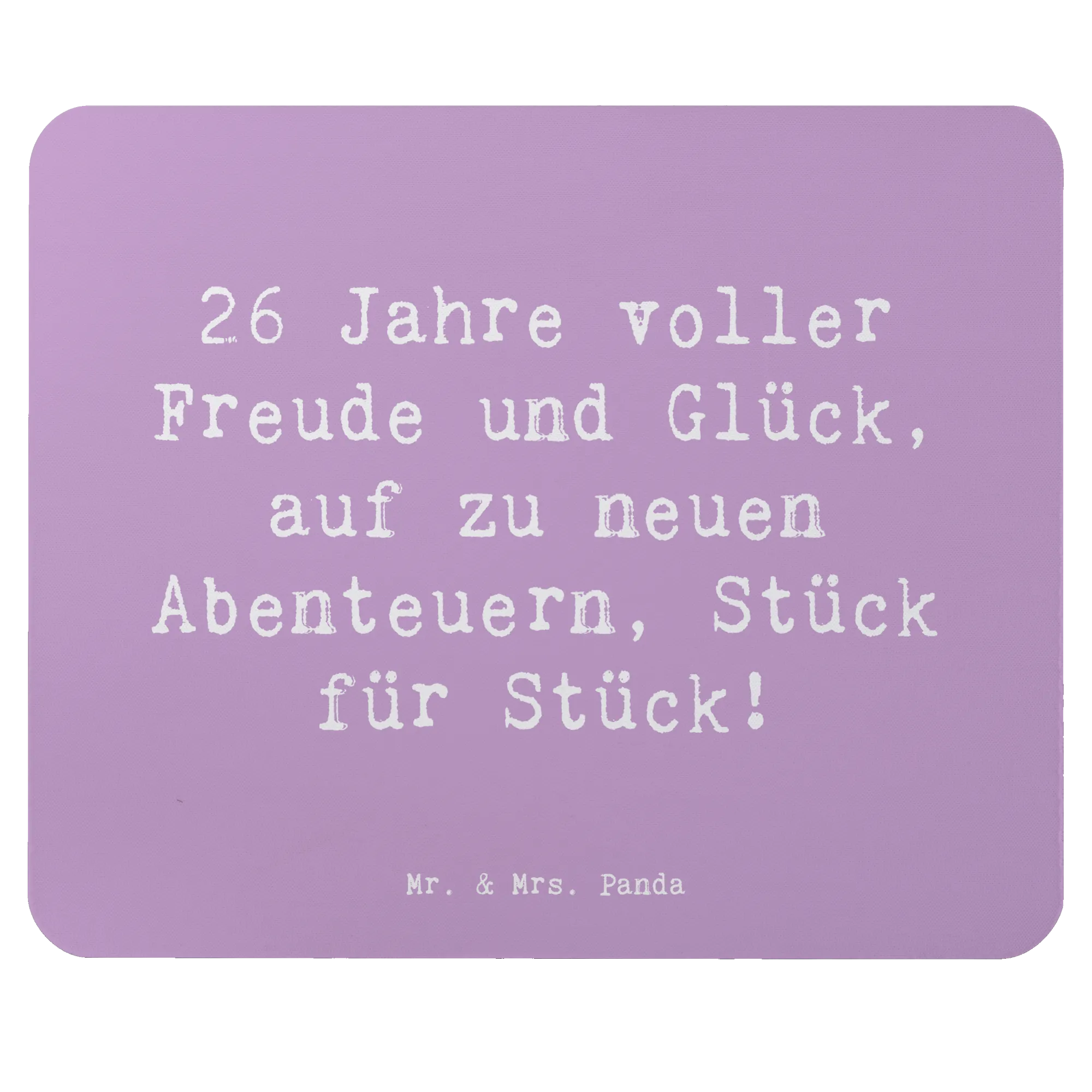 Das Mauspad "26 Jahre voller Freude und Glück, auf zu neuen Abenteuern, Stück für Stück!" von Mr. & Mrs. Panda ist das perfekte Geschenk für jeden, der seinen 26. Geburtstag gebührend feiern möchte. Dieses einzigartige Mauspad kombiniert liebevolles Design mit praktischer Funktionalität und ist damit der ideale Begleiter für das Homeoffice oder den Arbeitsplatz.