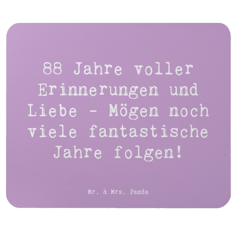 Das perfekte Geschenk zum 88. Geburtstag – ein einzigartiges Mauspad von Mr. & Mrs. Panda! Wenn Du auf der Suche nach einem liebevollen und nützlichen Geschenk bist, hast Du mit diesem Mauspad das richtige Produkt gefunden. Bedruckt mit dem herzerwärmenden Spruch "88 Jahre voller Erinnerungen und Liebe - Mögen noch viele fantastische Jahre folgen!" wird dieses Mauspad zum echten Highlight in jedem Büro oder Arbeitszimmer.