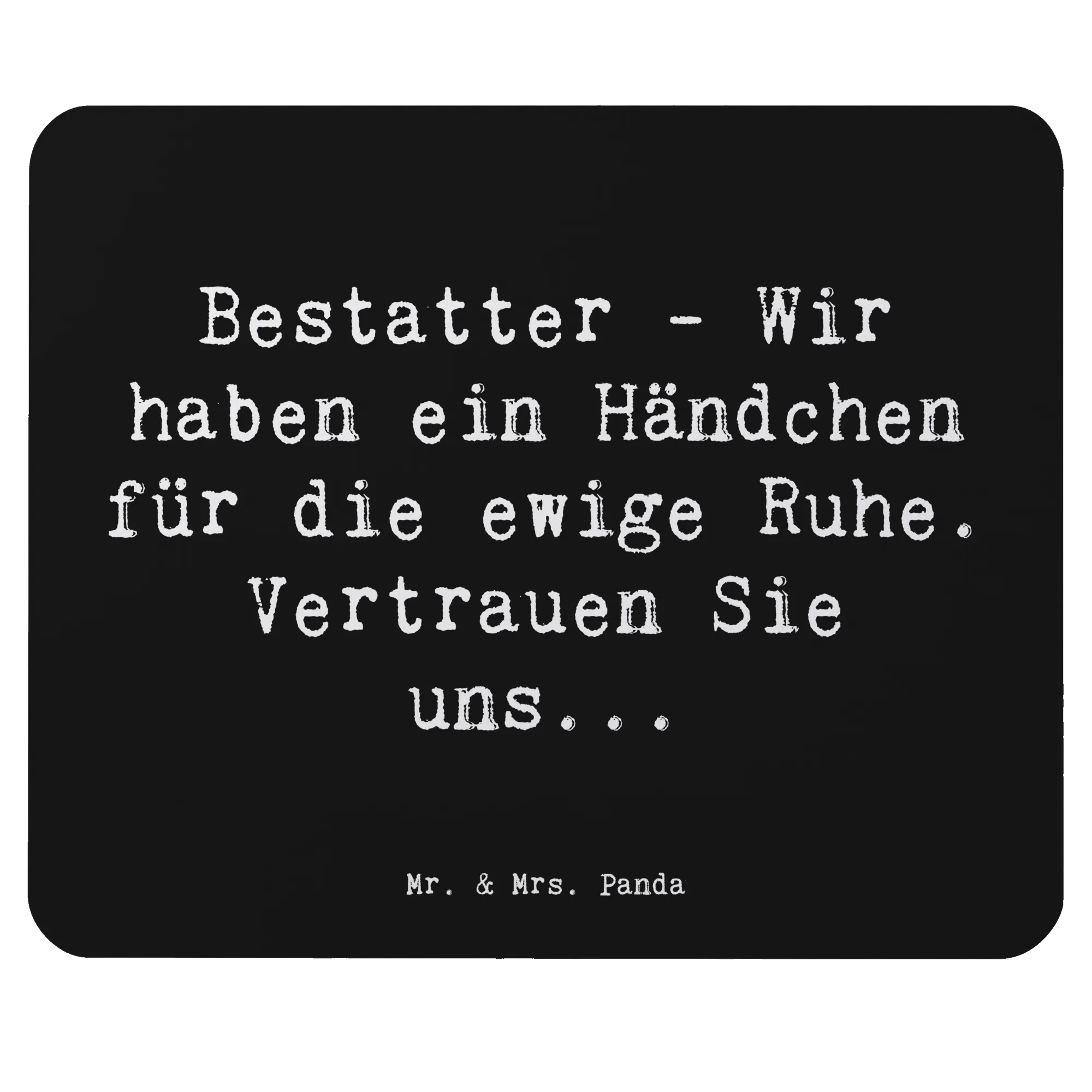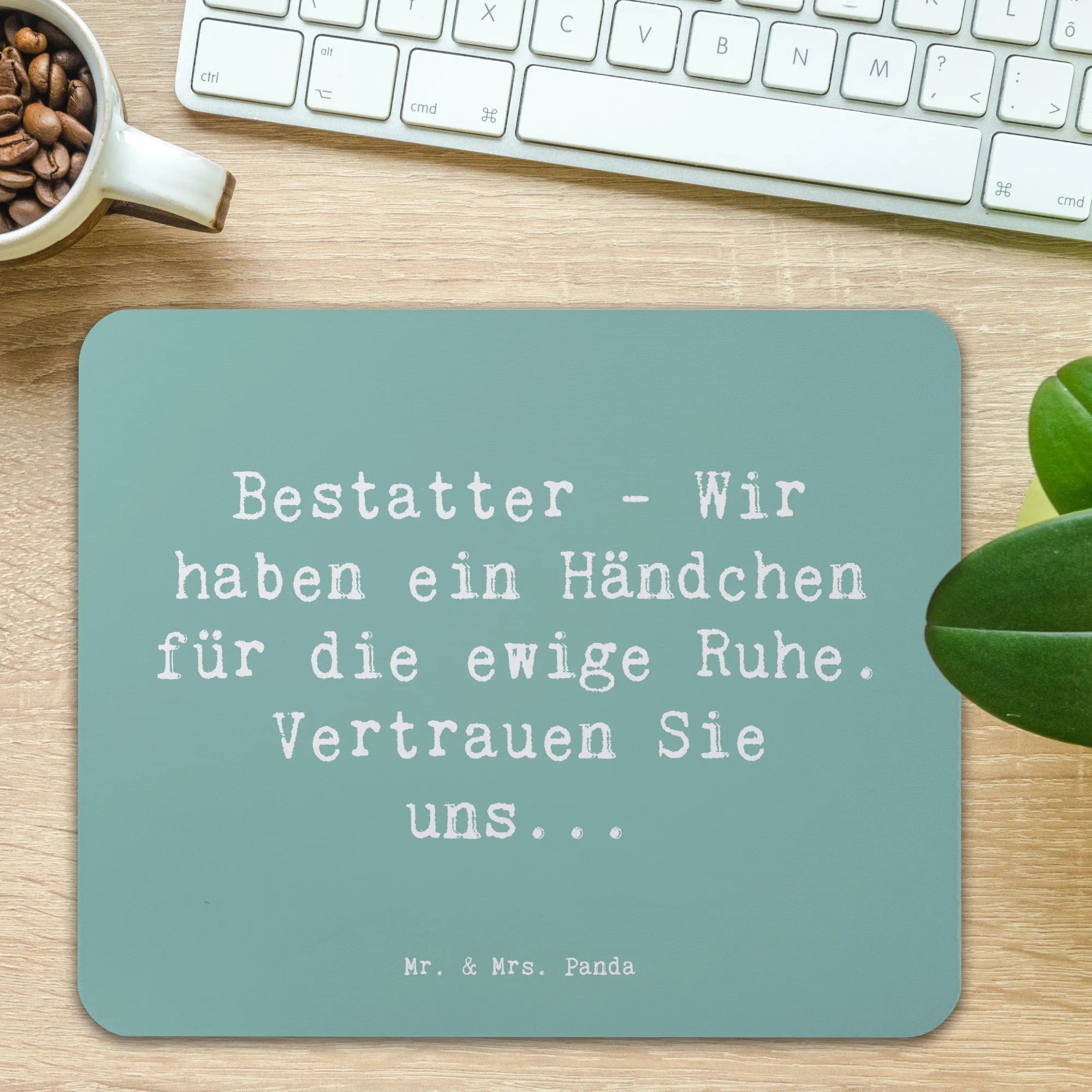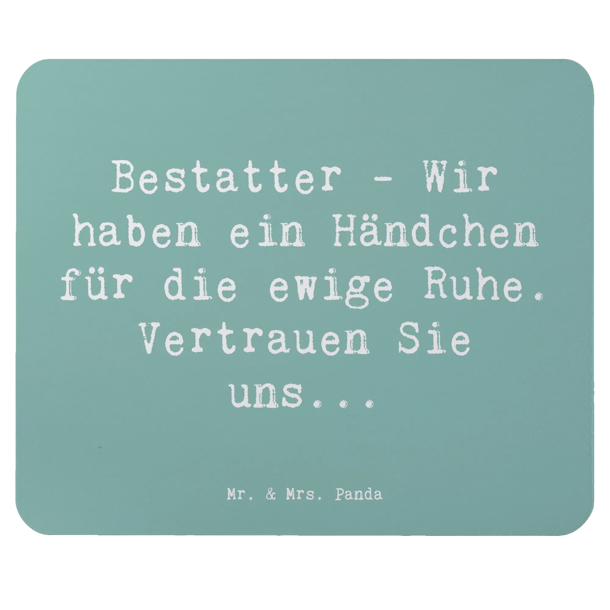 Das Mr. & Mrs. Panda Mauspad mit dem liebevollen Motiv "Bestatter - Wir haben ein Händchen für die ewige Ruhe. Vertrauen Sie uns..." ist der perfekte Begleiter für alle, die im Bestattungswesen tätig sind oder enge Beziehungen zu diesem Beruf haben.