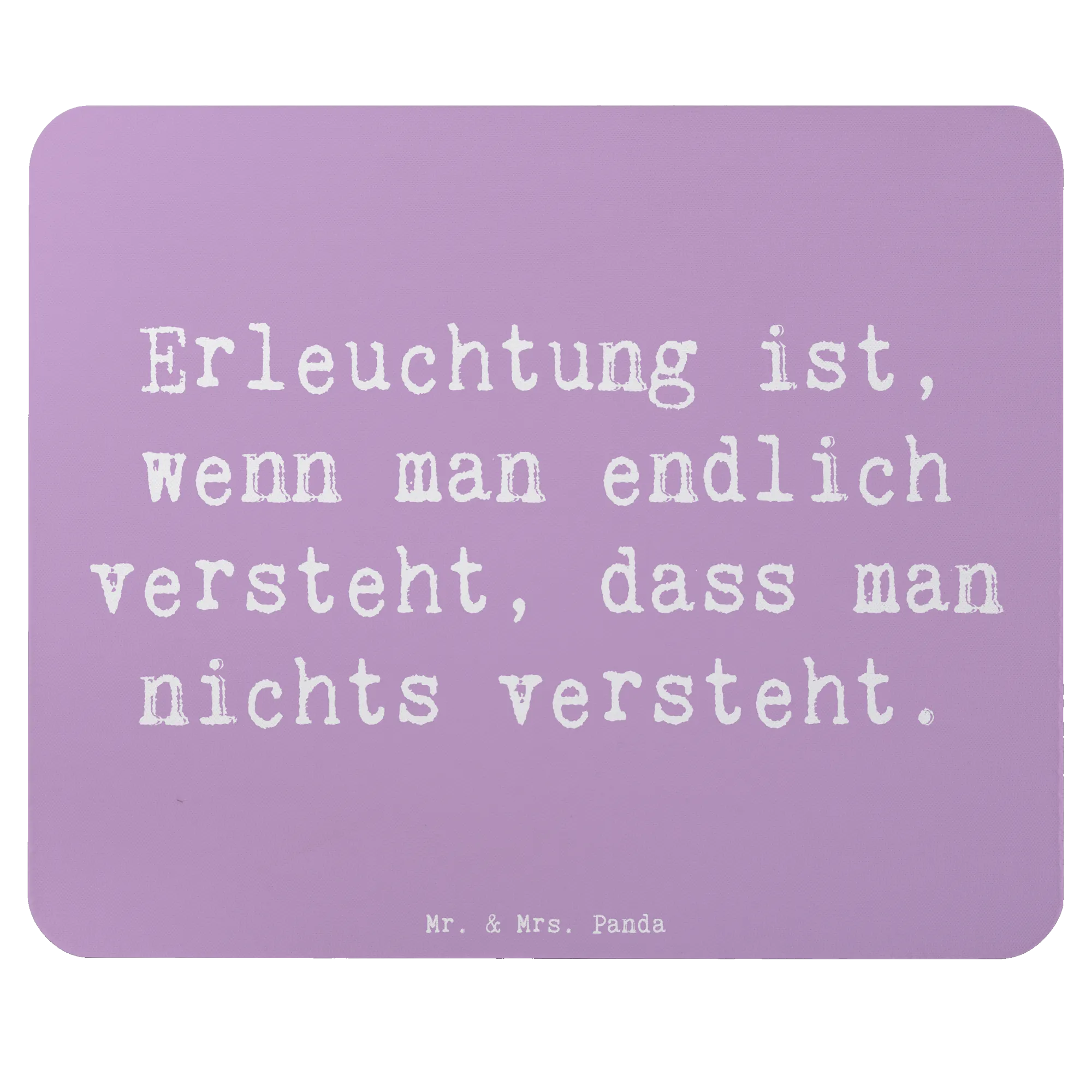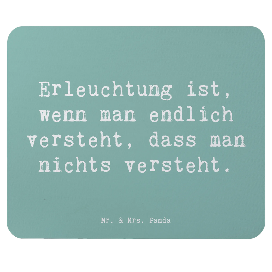 Bist du auf der Suche nach dem perfekten Geschenk für Freunde, Kollegen oder für dein eigenes Homeoffice? Dann haben wir bei Mr. & Mrs. Panda genau das Richtige für dich! Unser einzigartiges Mauspad mit dem inspirierenden Spruch "Erleuchtung ist, wenn man endlich versteht, dass man nichts versteht" aus der Kollektion Gefühle & Stimmungen ist ein toller Begleiter für alle, die ihren Arbeitsplatz oder Computerzubehör aufpeppen möchten.