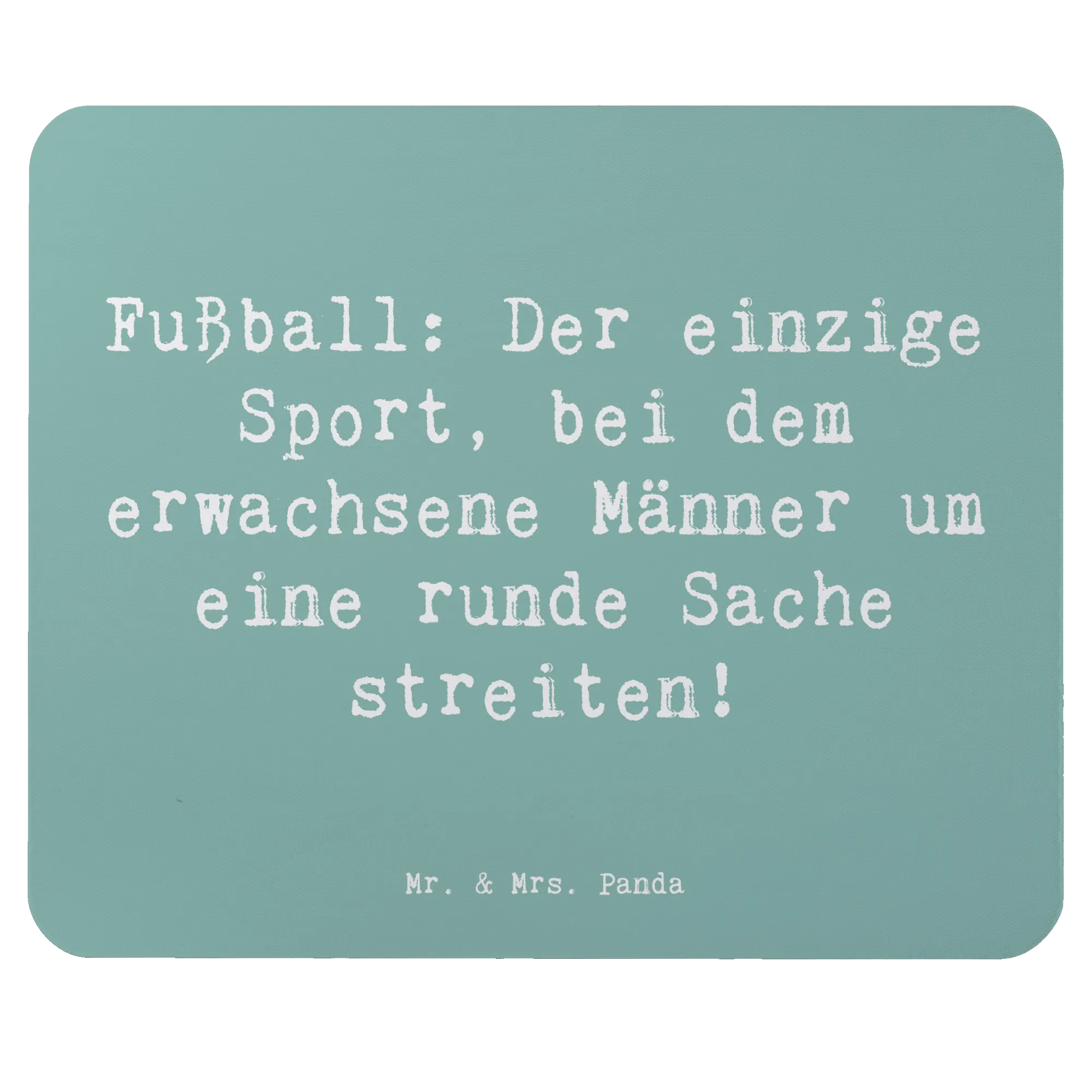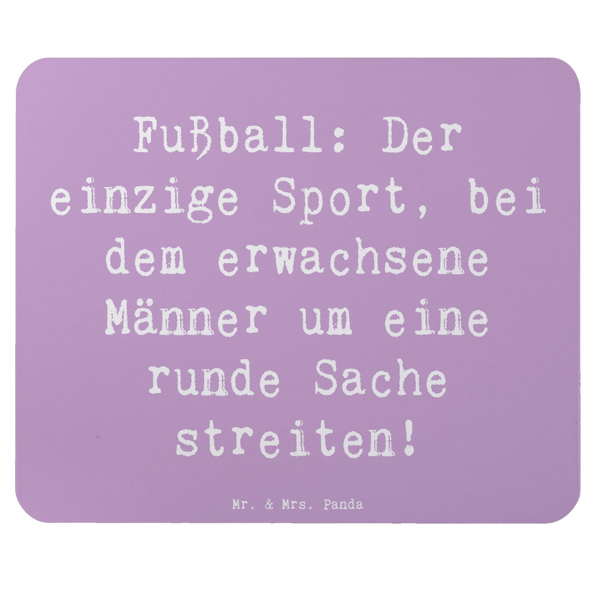 Wenn du auf der Suche nach einem besonderen Geschenk für einen Fußball-Enthusiasten bist, dann ist das Mauspad mit dem Motto "Fußball: Der einzige Sport, bei dem erwachsene Männer um eine runde Sache streiten!" von Mr. & Mrs. Panda die perfekte Wahl!