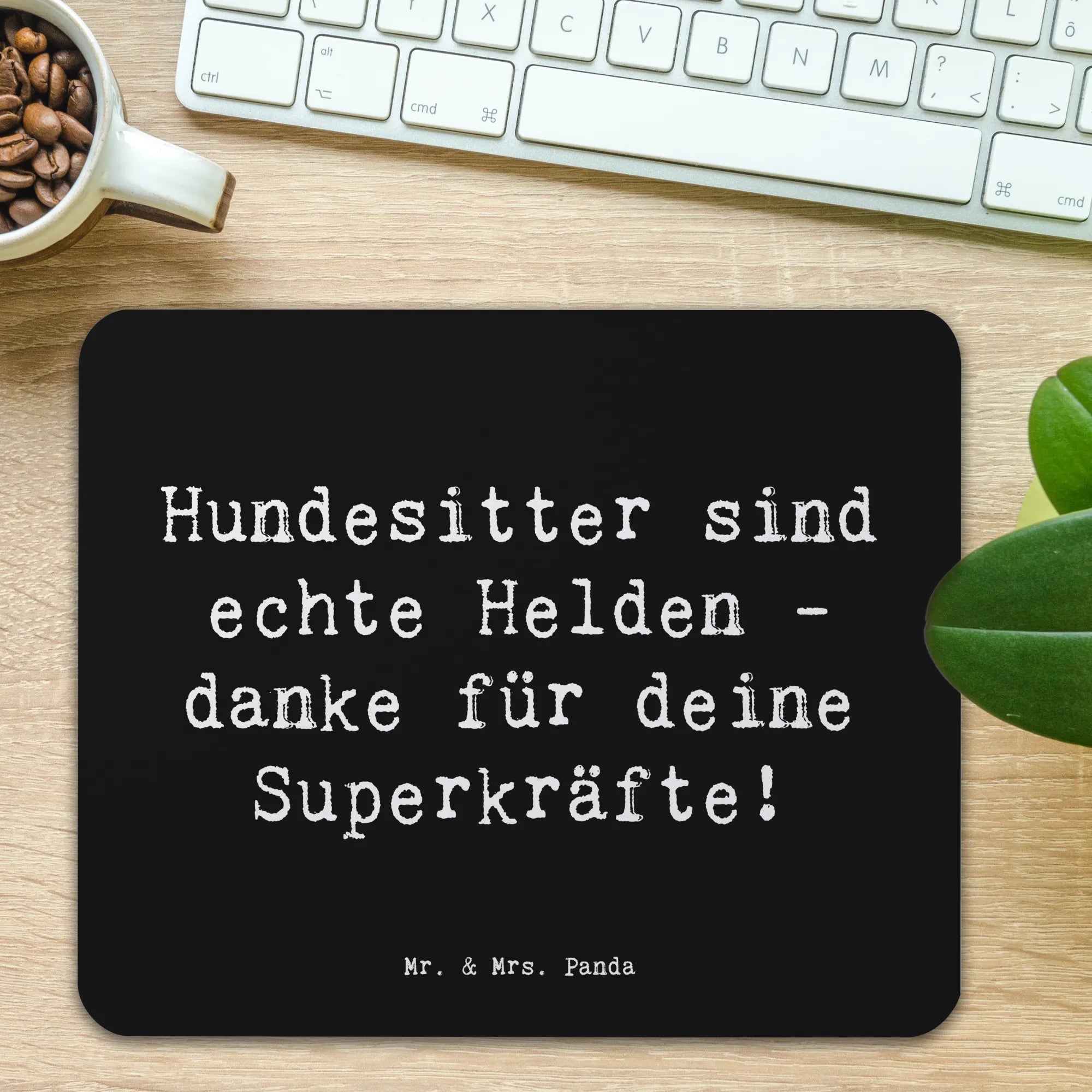 Mouse mat Saying Hundesitter sind echte Helden - danke für deine Superkräfte! - Natural rubber - Black