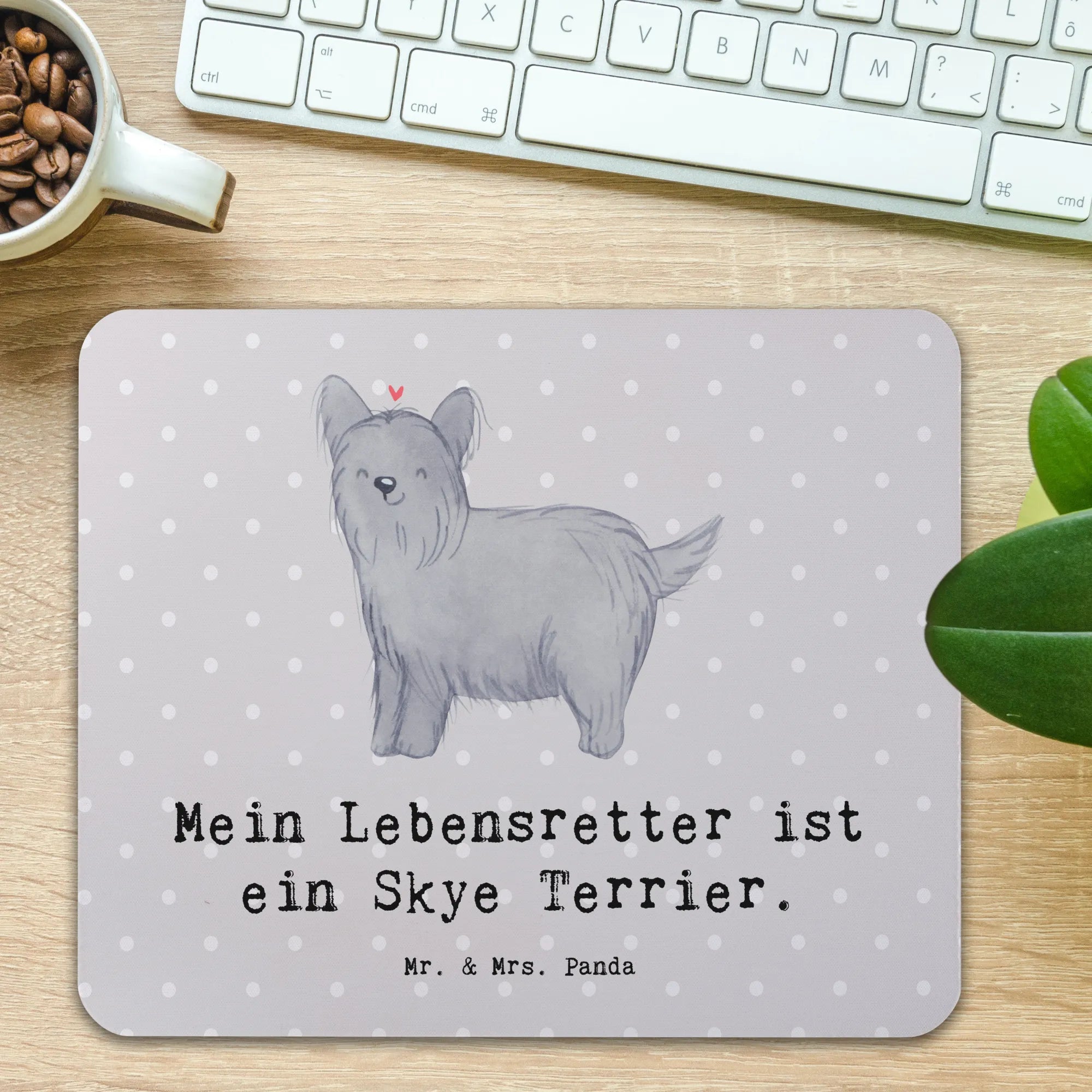 Mouse mat Skye Terrier Lifesaver - with saying - Pastel Gray
