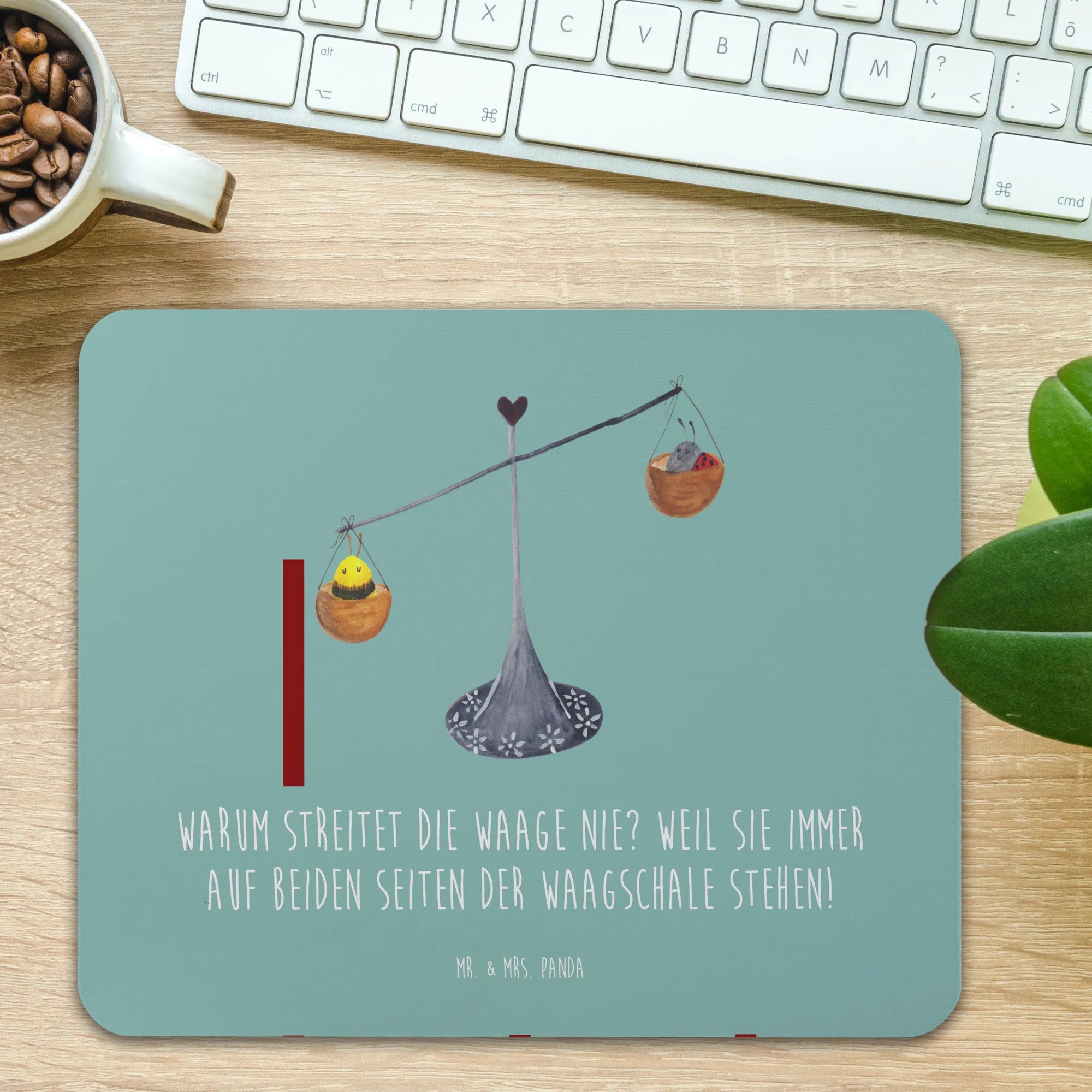 Mit seinem fröhlichen Design und dem witzigen Spruch "Warum streitet die Waage nie? Weil sie immer auf beiden Seiten der Waagschale stehen!" ist dieses Mauspad ein absoluter Hingucker jeden Schreibtischs. Es ist ideal für Menschen, die unter dem Sternzeichen Waage geboren wurden und ihre Liebe zur Astrologie auf eine charmante Art und Weise zeigen möchten.