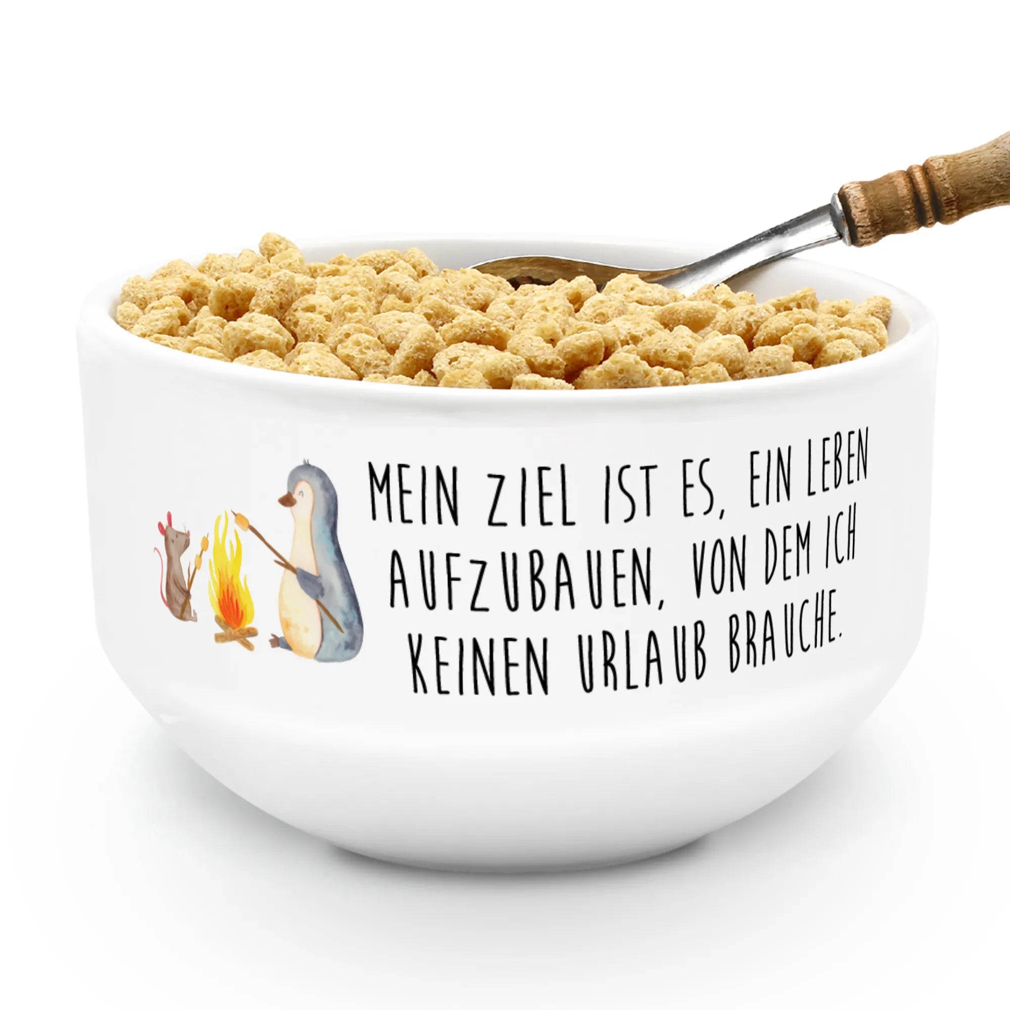Muesli Bowl Penguin campfire cereal bowl, fruit bowl, cereal dish, breakfast bowl, snack bowl, salad bowl, porcelain bowl, bowl, dessert bowl, ceramic bowl, soup bowl, Penguin, North Pole, Winter, Penguins, mouse, life motto, barbecue, life motivation, penguins, campfire, work, life, love, fire, marshmallows, office, job, everyday office life, motivation, new start