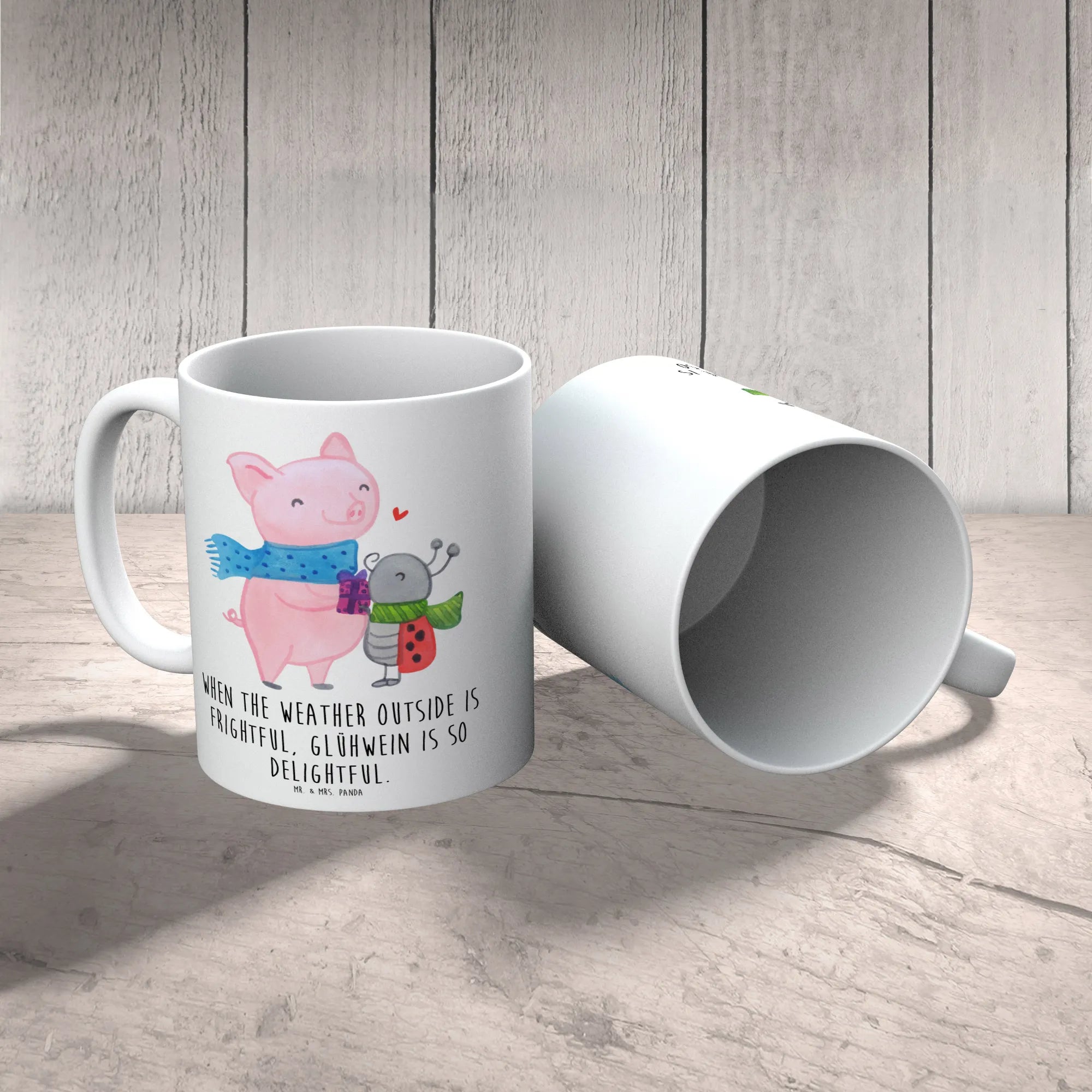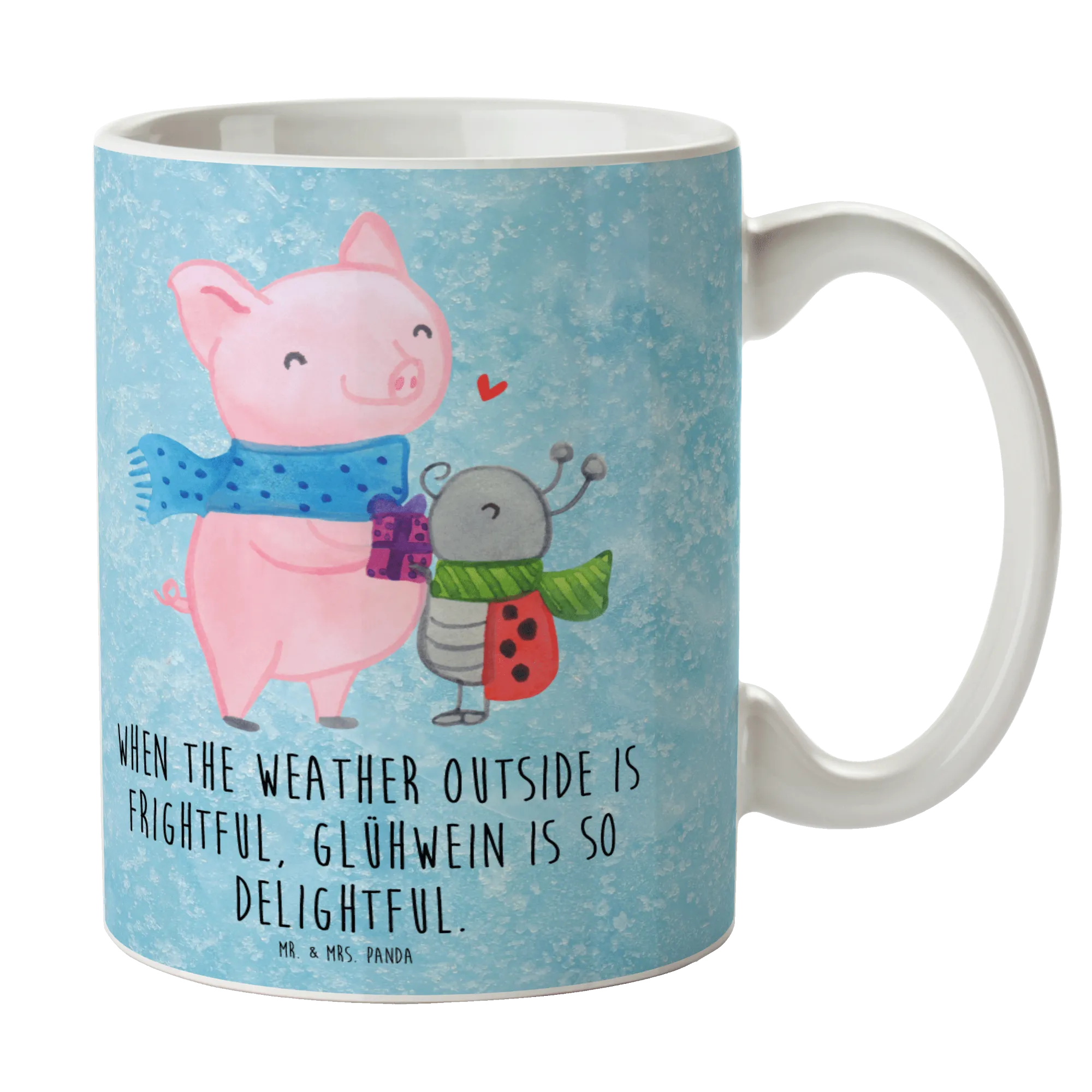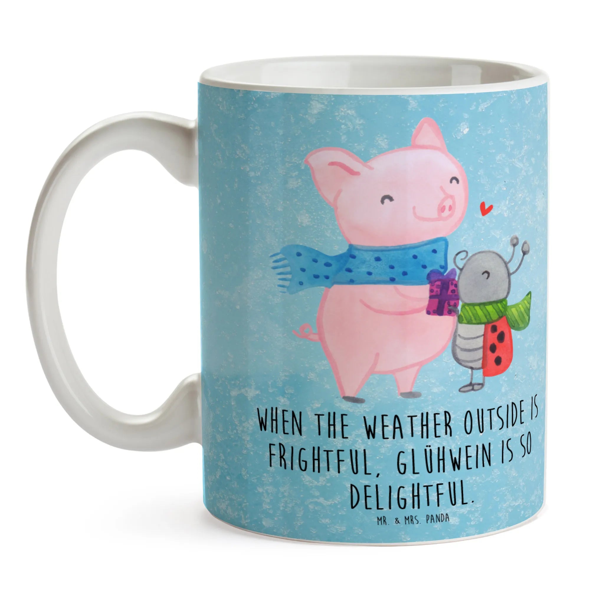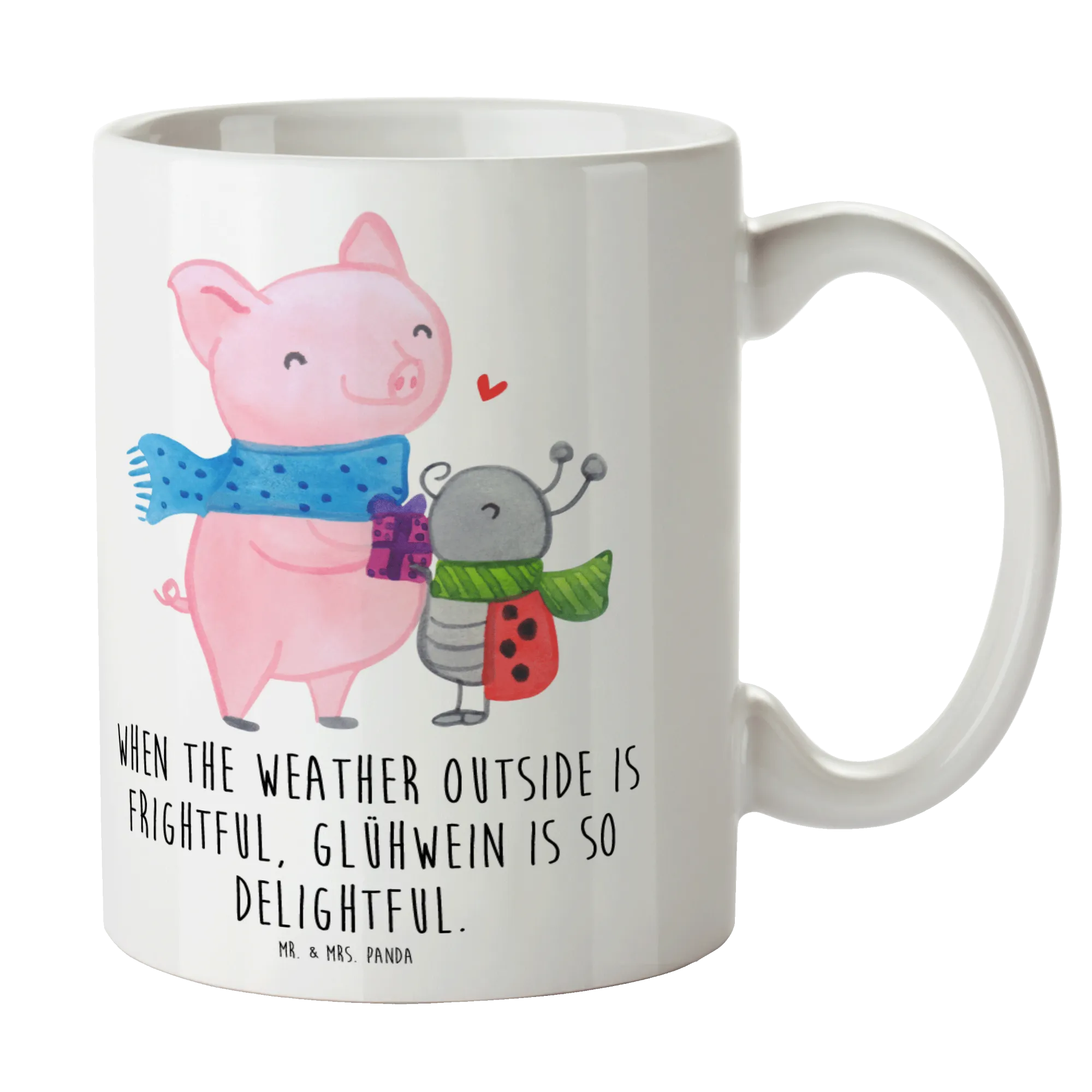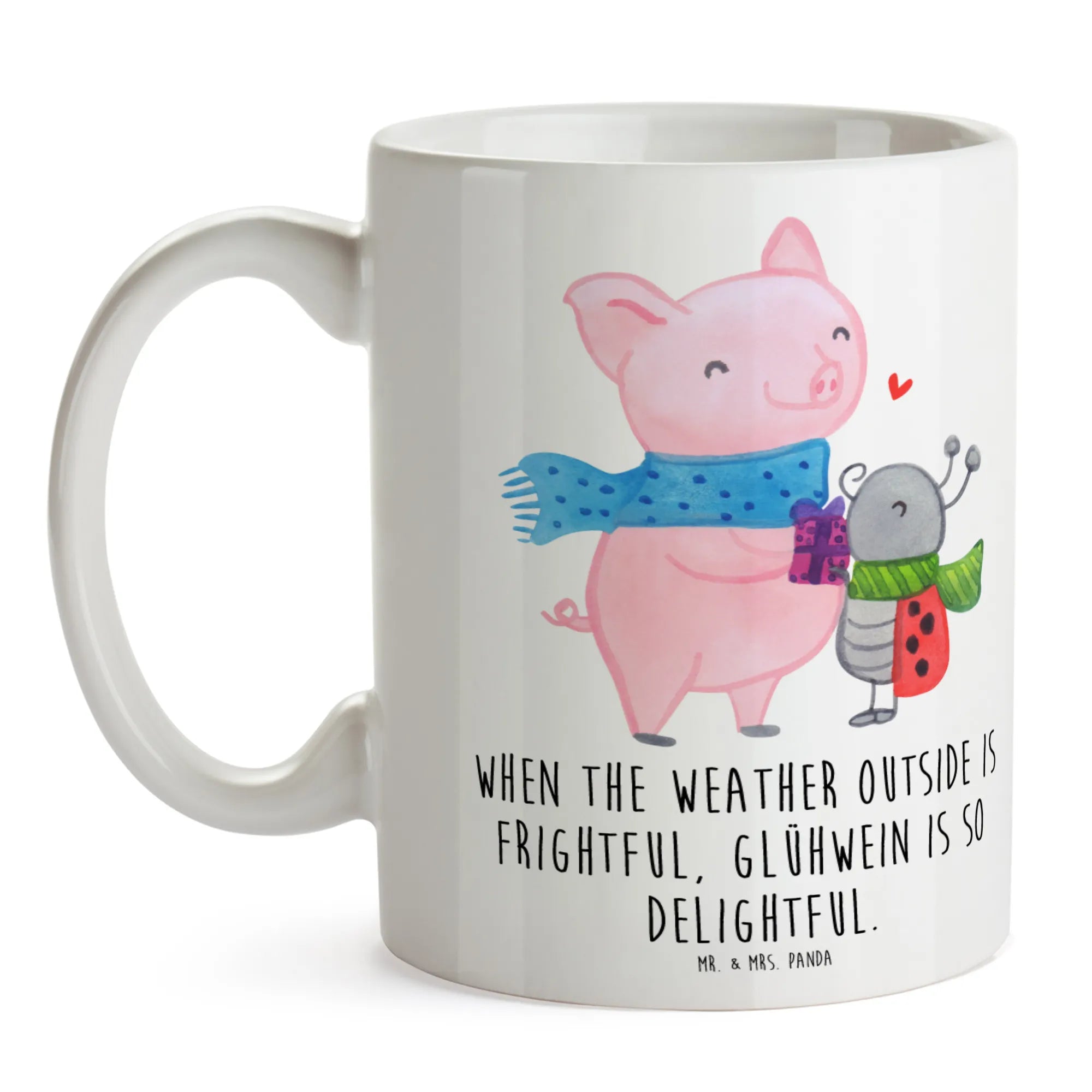 Dive into the warmth of the Toasty Pig Smörle motif, where joy meets coziness! Imagine our charming pig, wrapped in a delightful blue scarf, enjoying a hot cup of Glühwein. With the adorable ladybug at his side, donned in a striped green scarf, they personify the friendship and warmth that make winter delightful. The heart floating above them signifies the love surrounding every cozy moment shared between friends. This design isn't just an artwork; it's a celebration of winter fun and the delightful drinks that come with it. As we like to remind you, 'When the weather outside is frightful, Glühwein is so delightful.' This motif serves as a sweet reminder to embrace those special moments with loved ones, making for an ideal gift for every Glühwein lover!