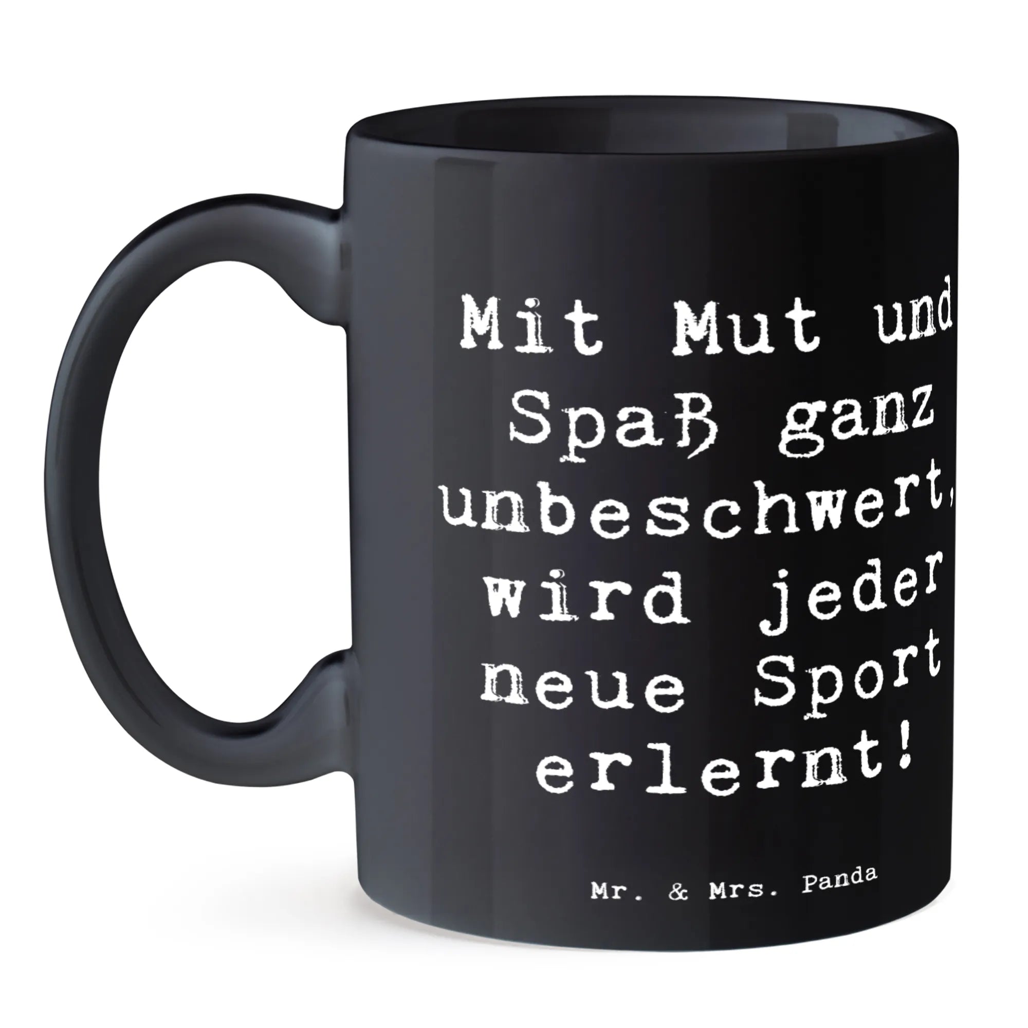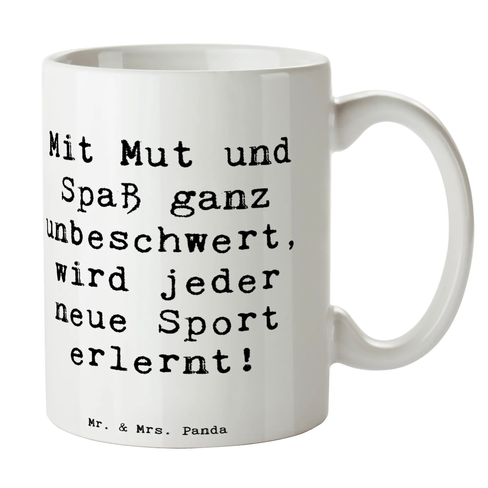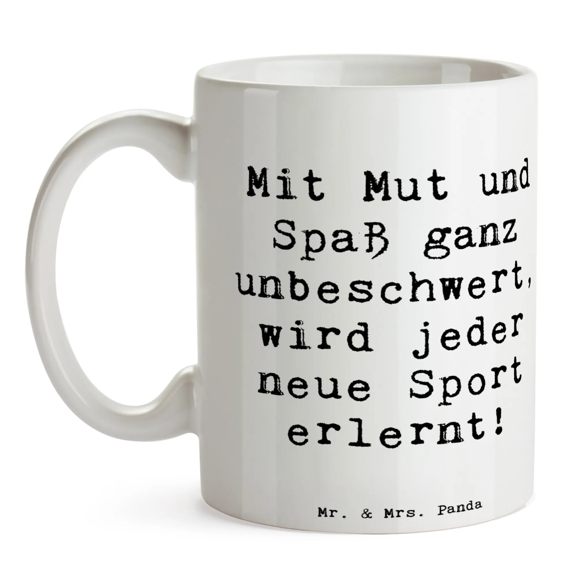 Mug Saying Mit Mut und Spaß ganz unbeschwert, wird jeder neue Sport erlernt! - White