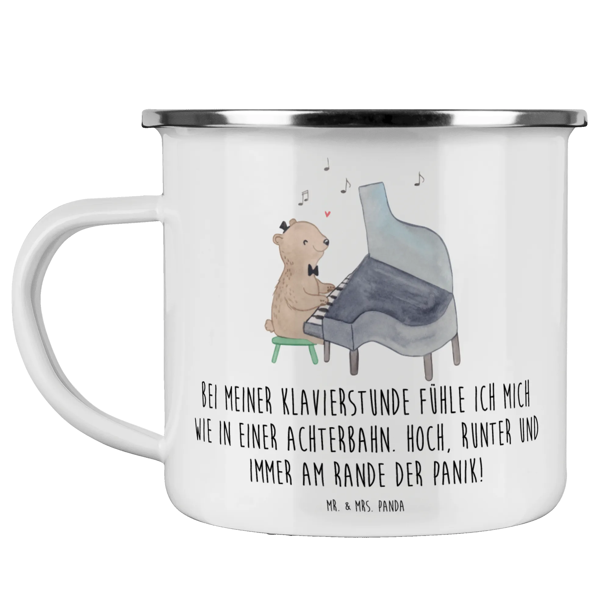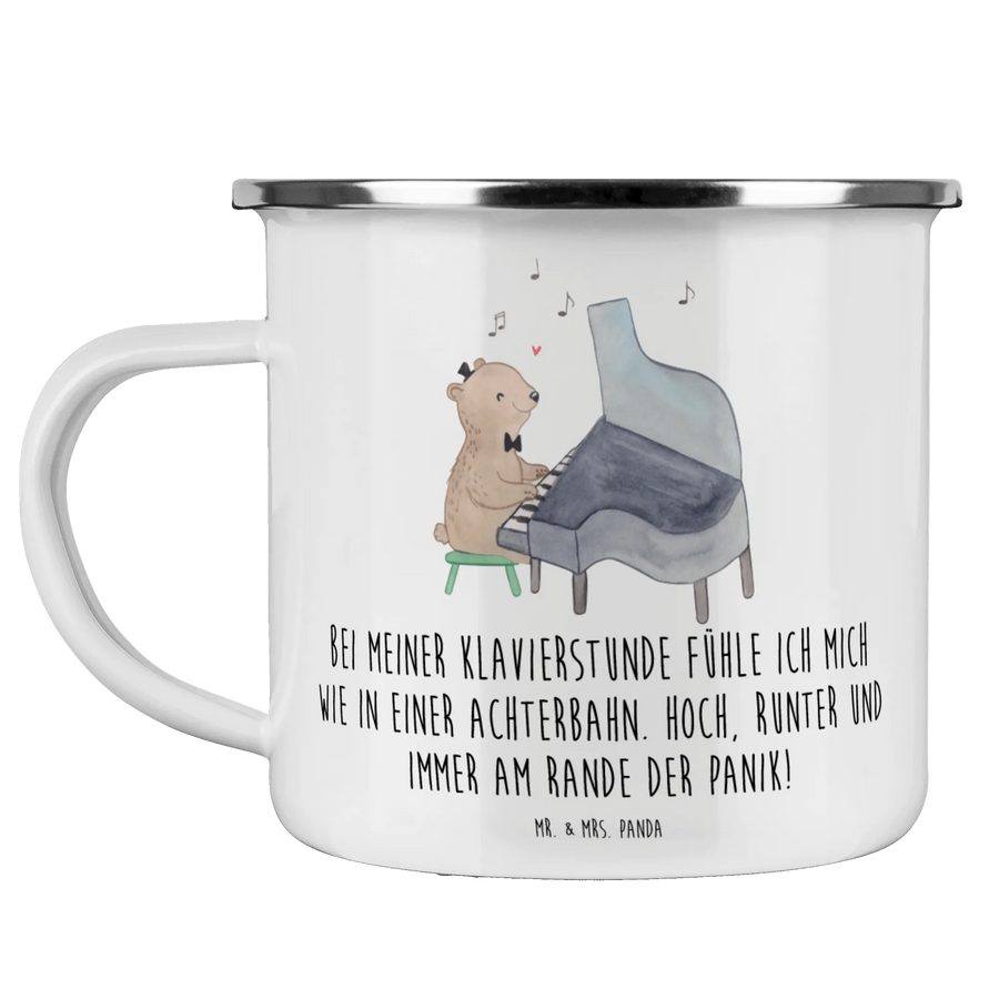 Enamel camping mug Bei meiner Klavierstunde fühle ich mich wie in einer Achterbahn. Hoch, runter und immer am Rande der Panik!