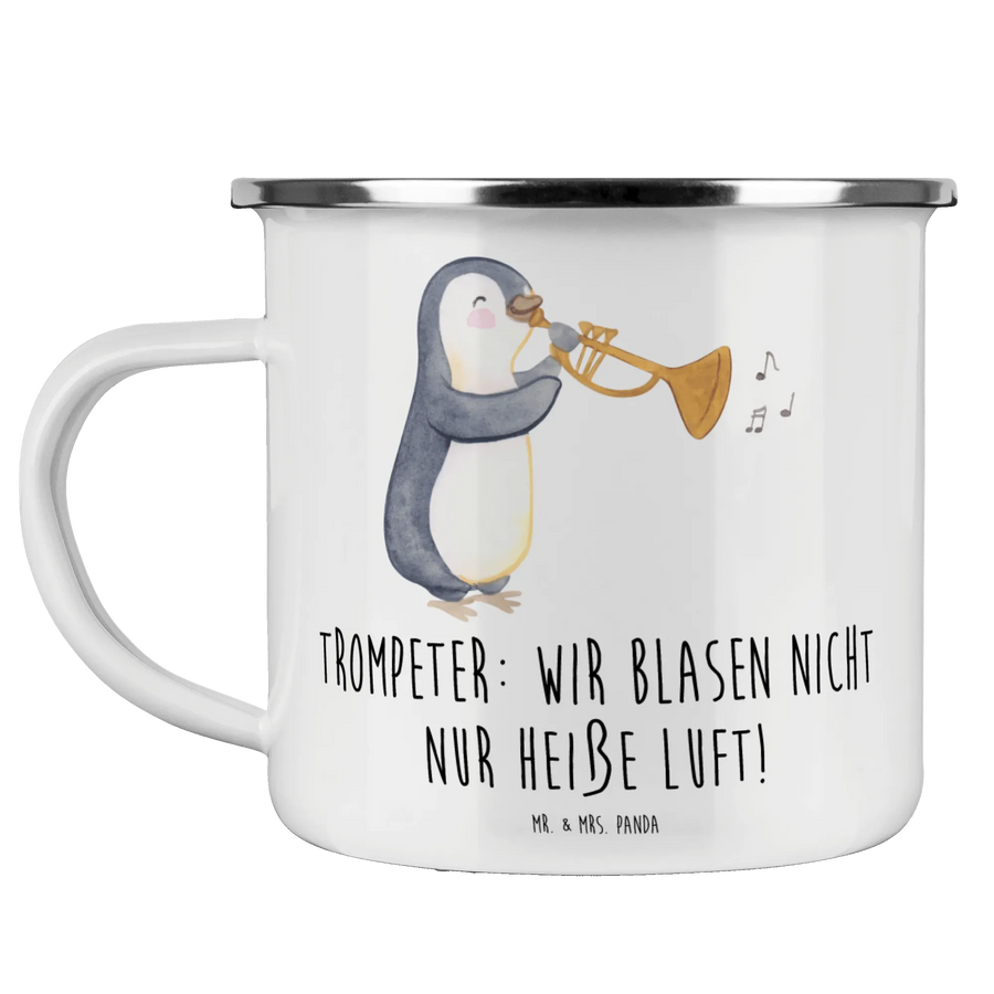 Enamel camping mug Trompeter: Wir blasen nicht nur heiße Luft!