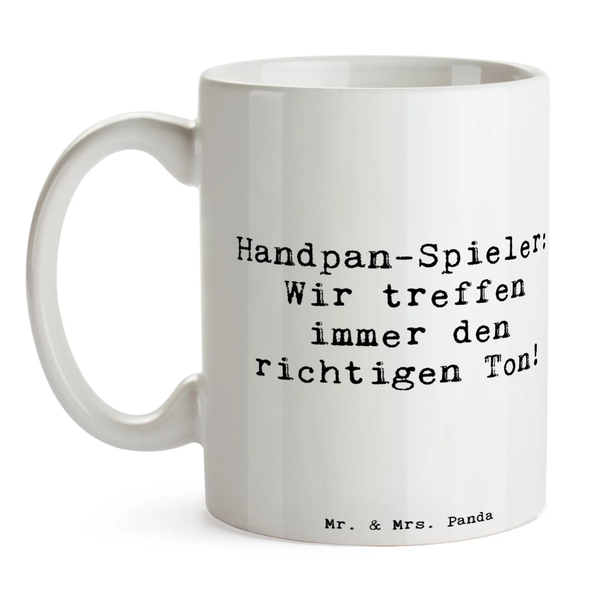 Suchst du das perfekte Geschenk für Handpan-Spieler und Musikliebhaber? Unsere Mr. & Mrs. Panda Kaffeetasse mit dem Spruch „Handpan-Spieler: Wir treffen immer den richtigen Ton!“ ist liebevoll gestaltet und ideal für alle, die Musik, Meditation und entspannte Momente schätzen.