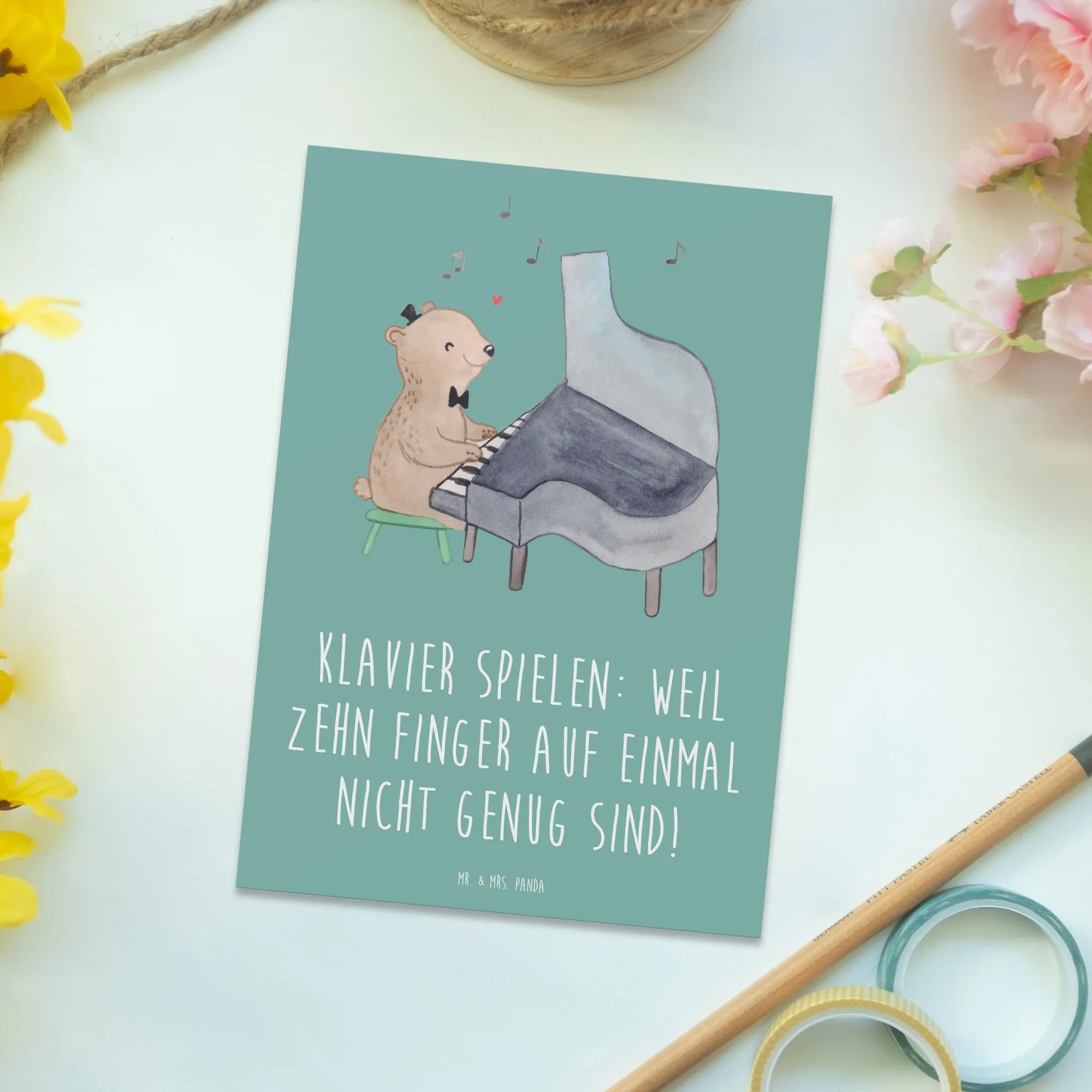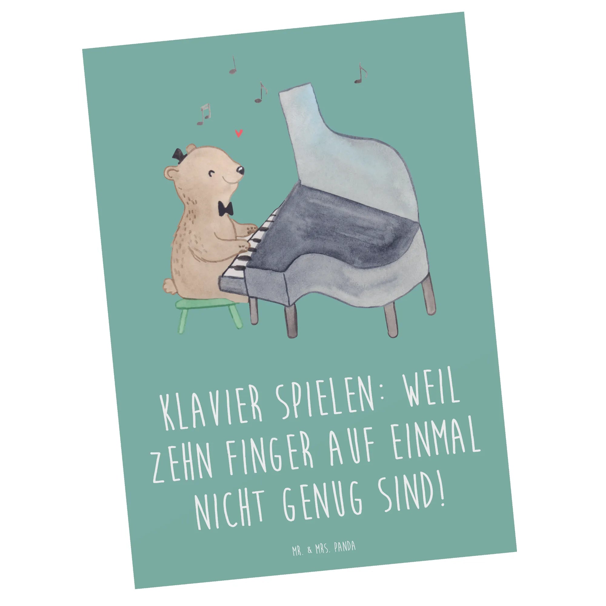 Hergestellt aus hochwertigem 300 Gramm Karton, bietet diese Karte nicht nur eine tolle Haptik, sondern besticht auch durch ihr elegantes und ansprechendes Design. Ob für eine Einladung zu einem Klavierabend oder als Dankeskarte für ein musikalisches Geschenk - diese Postkarte ist vielseitig einsetzbar! Sie gehört zur besonderen Kollektion Musizieren & Instrumente von Mr. & Mrs. Panda, die speziell für all die Musiker und Musikliebhaber entworfen wurde, die die Liebe zur Musik teilen.