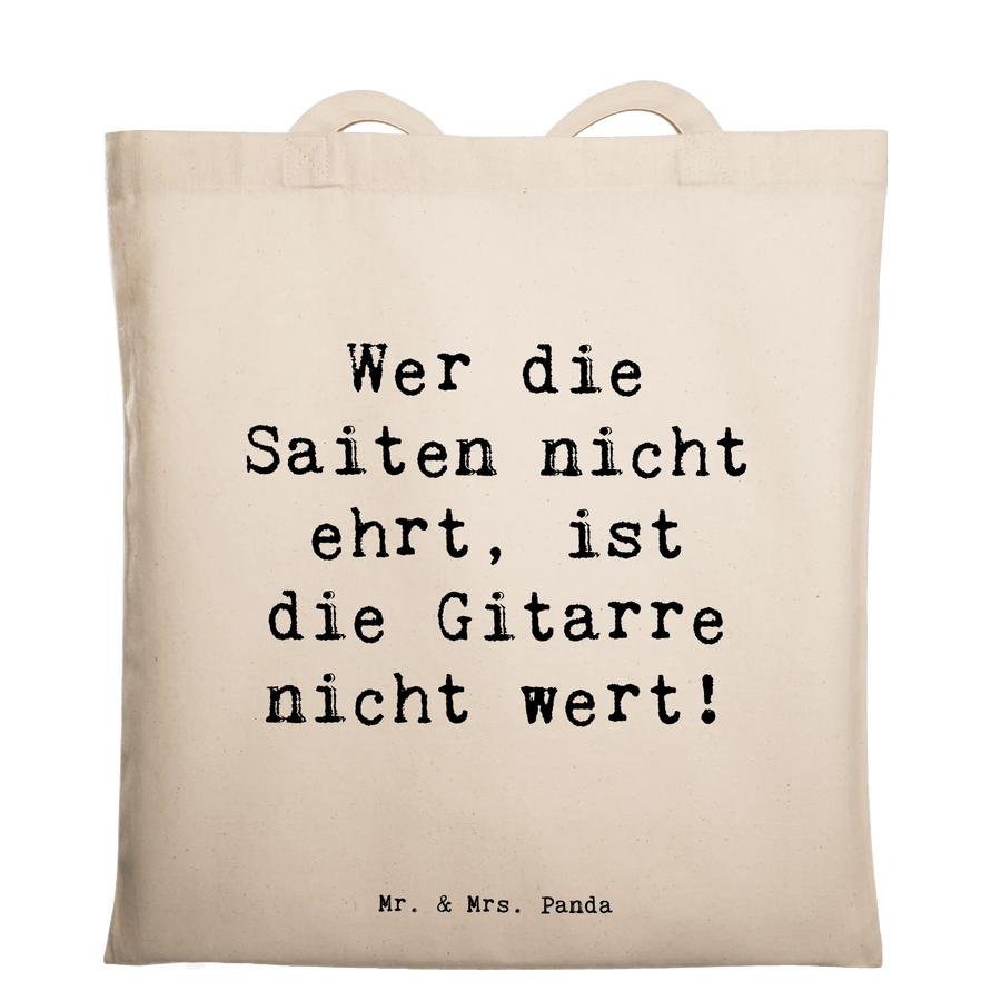 Suchst du das perfekte Geschenk für einen leidenschaftlichen Musiker oder einfach einen Musikliebhaber? Dann ist die Tragetasche mit dem stilvollen Gitarrenmotiv von Mr. & Mrs. Panda genau das Richtige! Diese bezaubernde Tragetasche vereint Funktionalität und Leidenschaft für Musik in einem und ist die optimale Wahl für jeden Anlass. Der Spruch „Wer die Saiten nicht ehrt, ist die Gitarre nicht wert!“ macht sie besonders einzigartig und stellt sicher, dass jeder, der sie sieht, sofort ins Schmunzeln gerät.