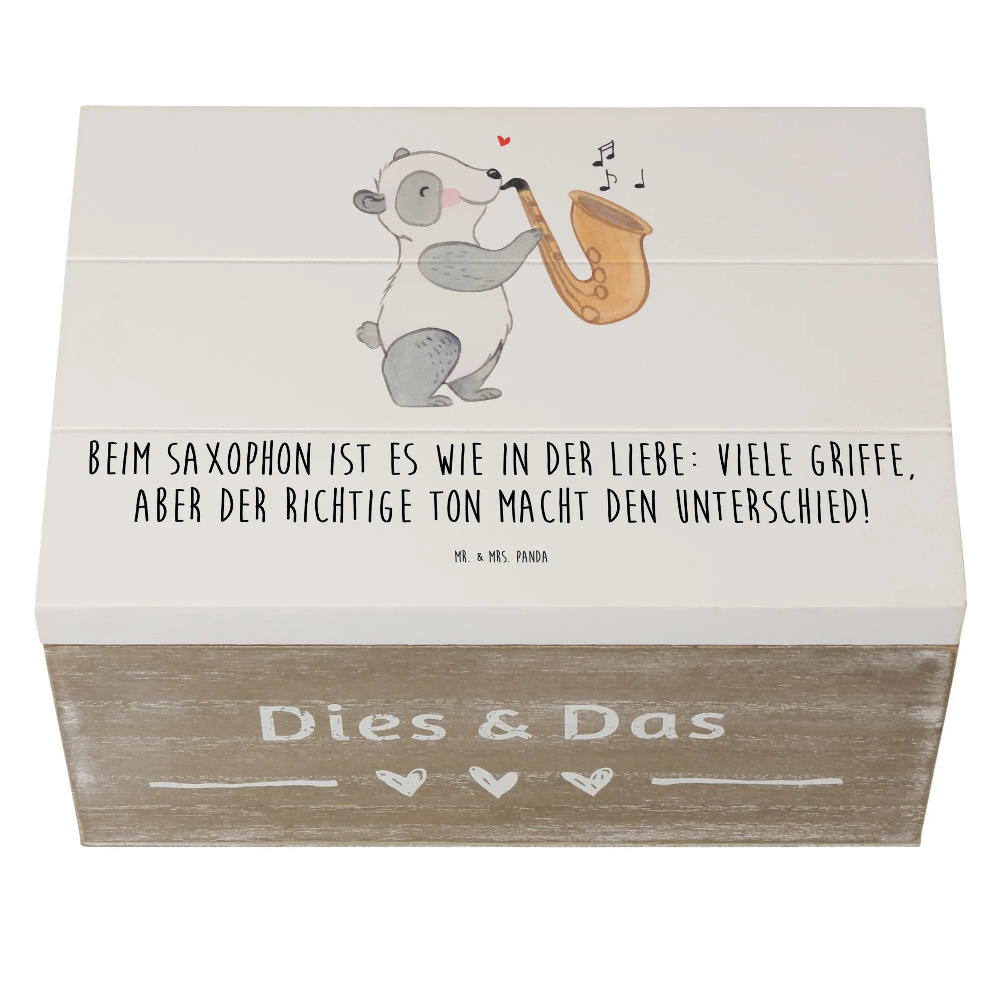 Wooden chest Beim Saxophon ist es wie in der Liebe: Viele Griffe, aber der richtige Ton macht den Unterschied! - 22 x 15 cm - White