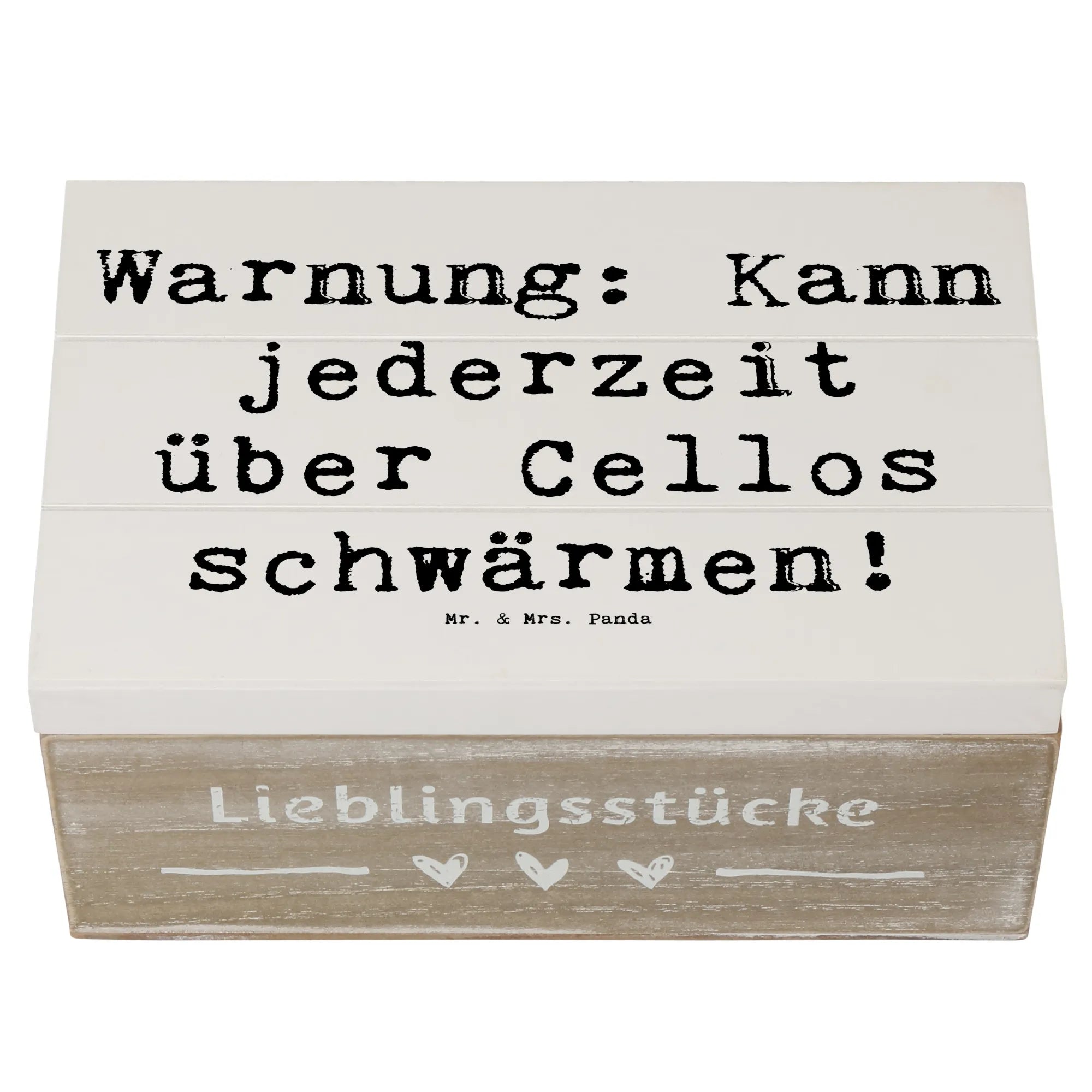 Wooden chest Saying Warnung: Kann jederzeit über Cellos schwärmen! - 22 x 15 cm - White