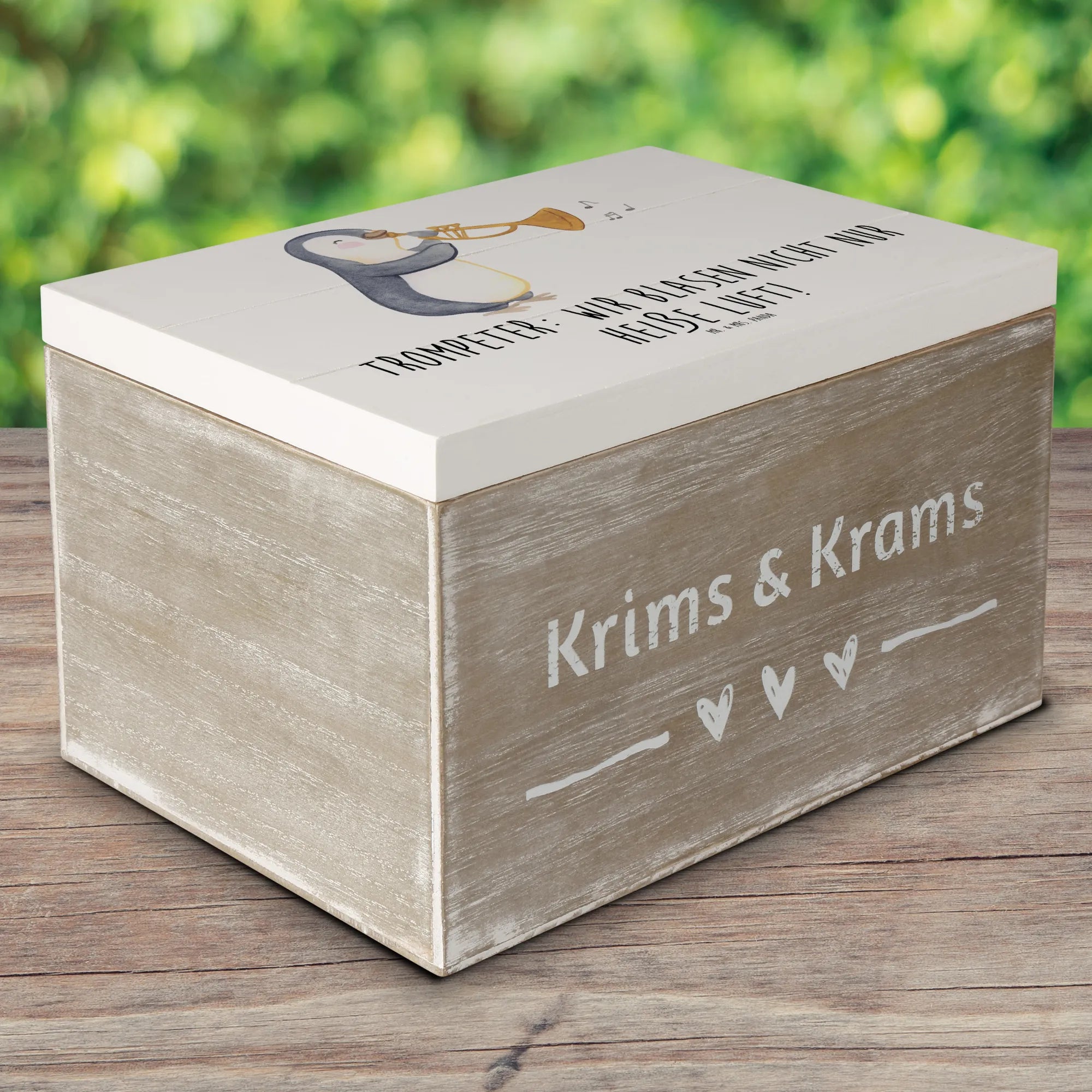 Wooden chest Trompeter: Wir blasen nicht nur heiße Luft! - 22 x 15 cm - White