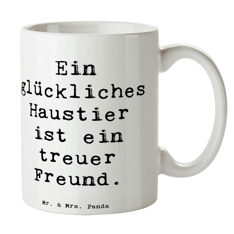 Mug Saying Ein glückliches Haustier ist ein treuer Freund. - White