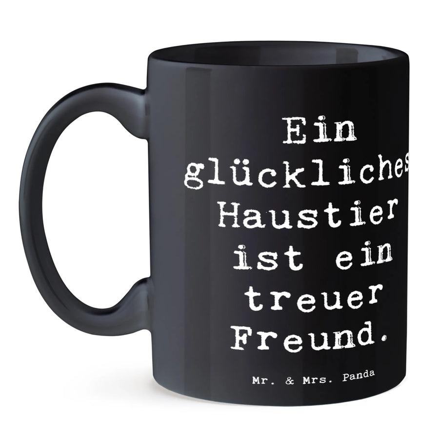 Mug Saying Ein glückliches Haustier ist ein treuer Freund. - Black