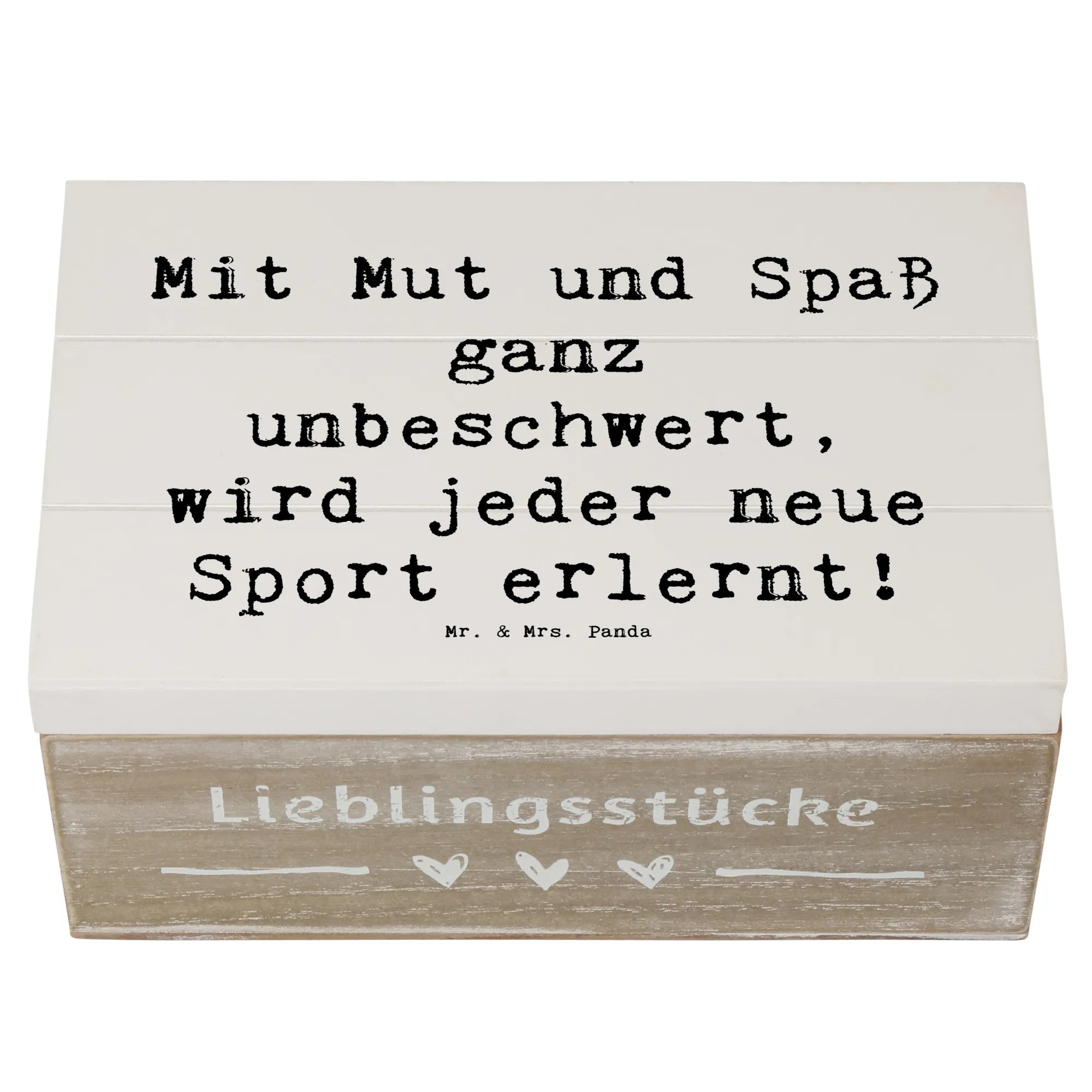Wooden chest Saying Mit Mut und Spaß ganz unbeschwert, wird jeder neue Sport erlernt! - 22 x 15 cm - White
