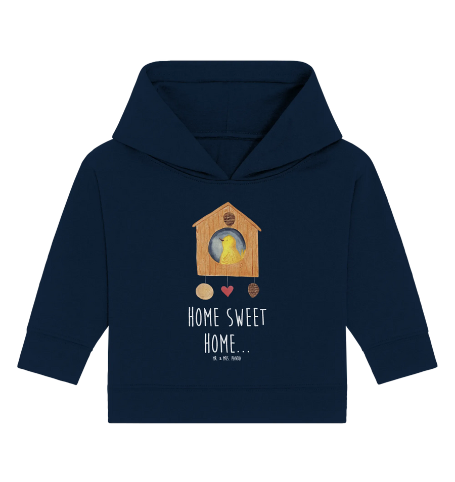Organic Baby Hoodie birdhouse Home - 12th - 18th month - with a saying - French Navy