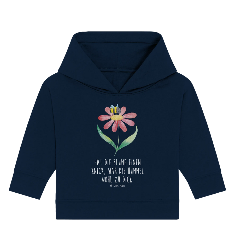 Organic Baby Hoodie bumblebee flower - 12th - 18th month - with saying - French Navy
