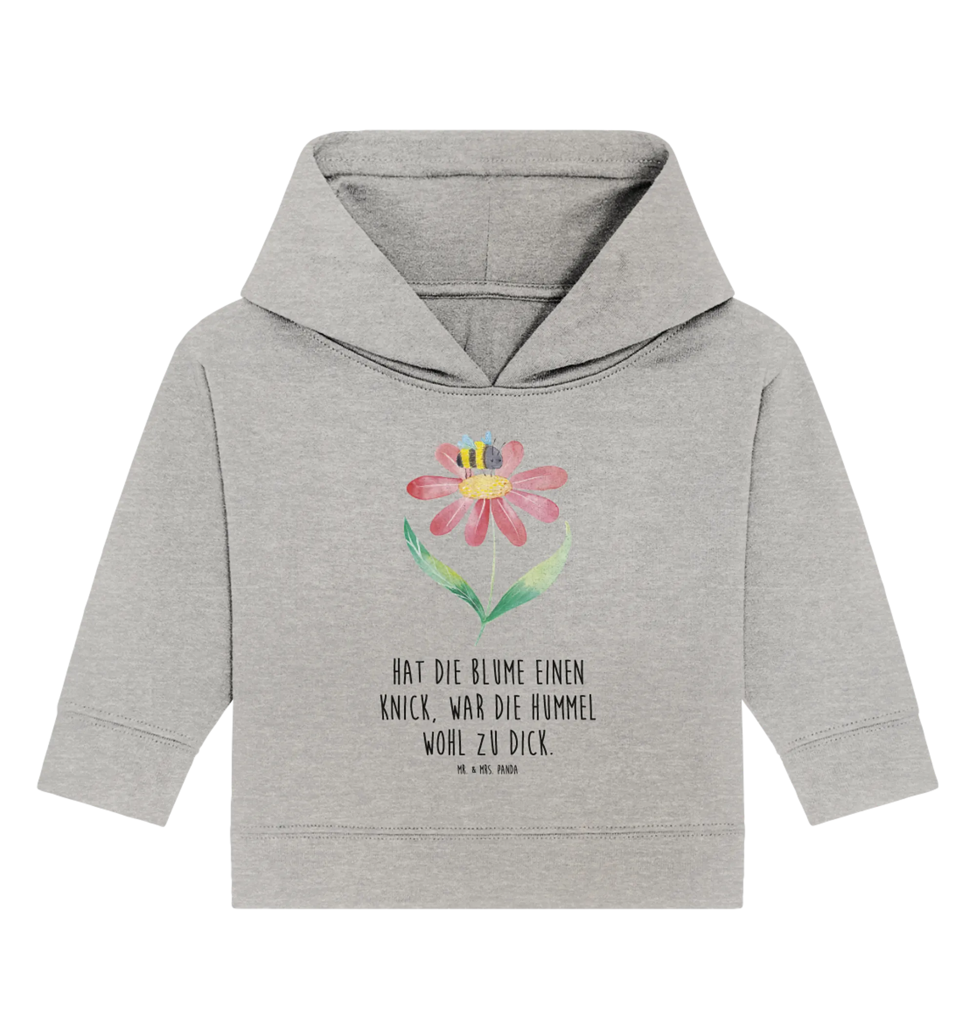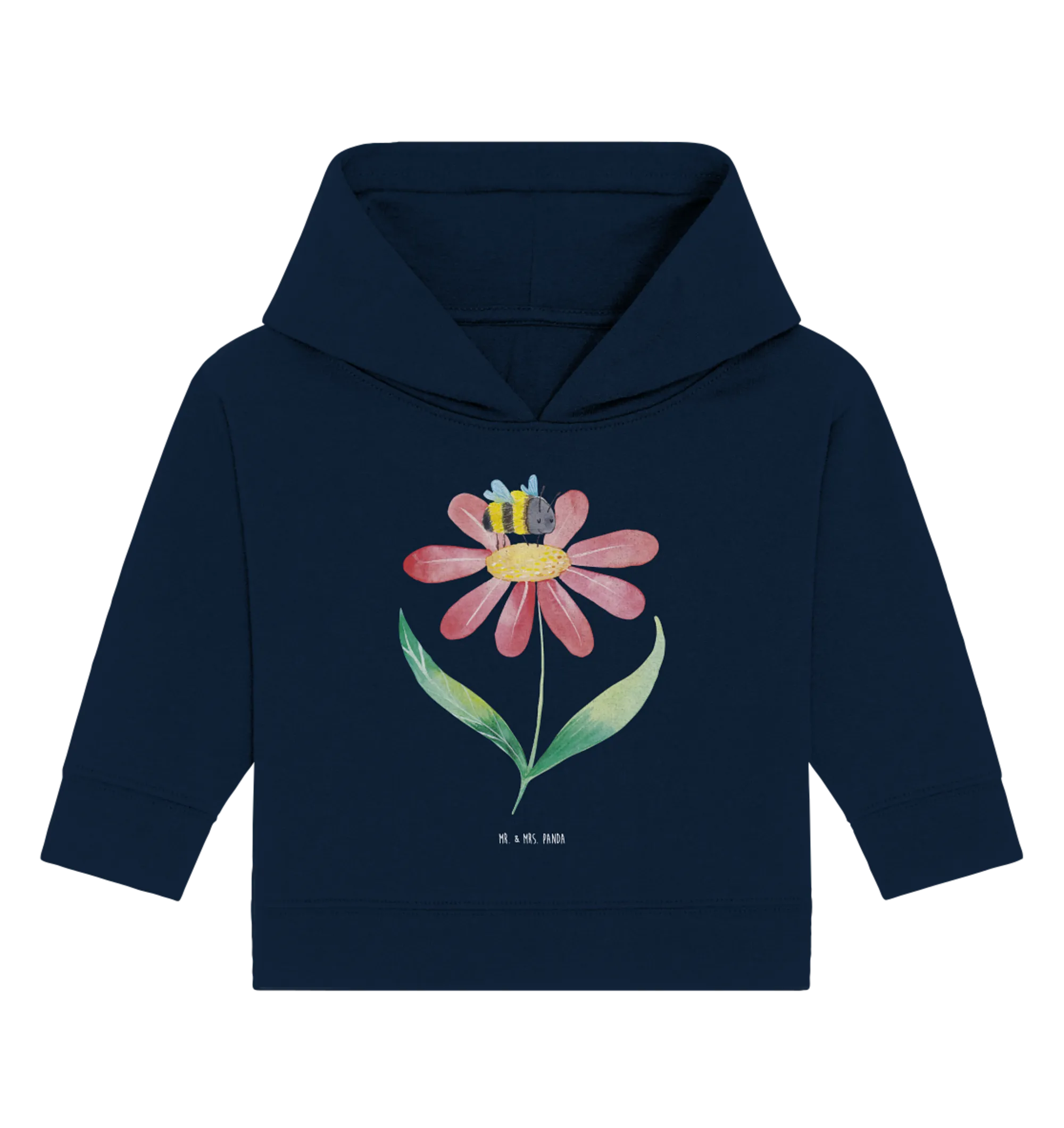 Imagine your child wearing this delightful hoodie, feeling like a little explorer in nature's playground! The charming illustration of a sweet bumblebee landing on a vibrant flower is hand-drawn with love by Mrs. Panda. It brings a touch of the magical small world right into your baby's wardrobe.