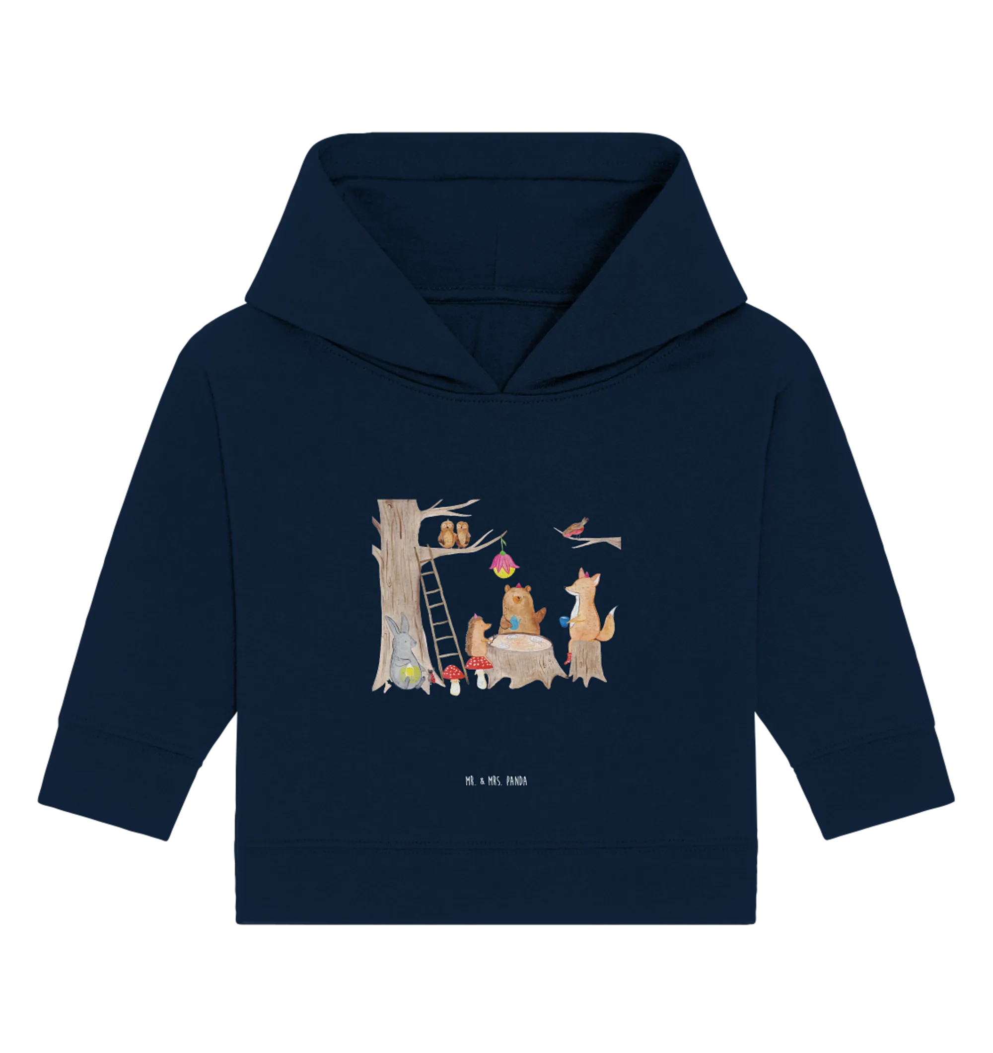 Organic Baby Hoodie forest animals picnic Baby Kapuzenshirt, Baby Kapuzensweatshirt, Baby Pullover, Baby Hoodie, Tiermotive, Lustige Sprüche, Tiere, Gute Laune, Wald, Picknick, Hase, Fuchs, Igel, Waldtiere, Eichhörnchen, Maus