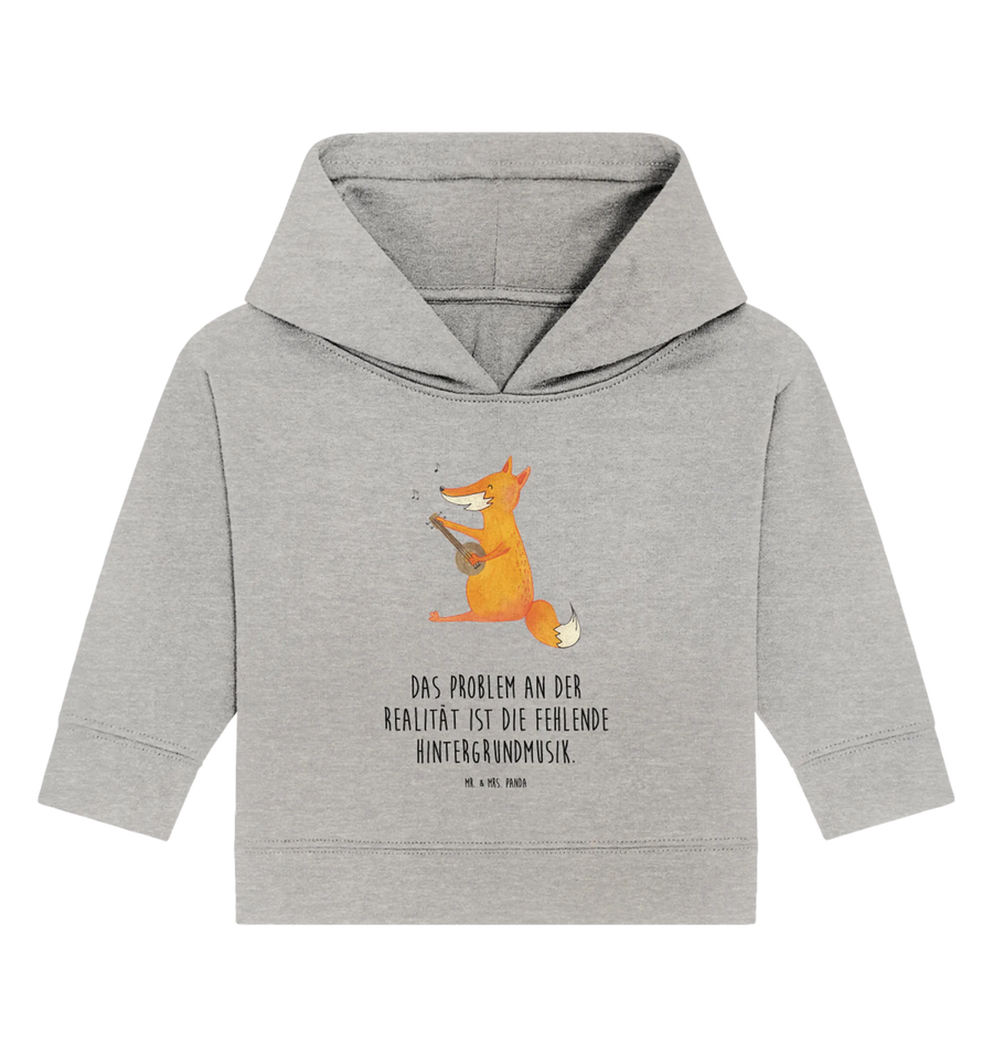 Das Organic Baby Hoodie mit dem zauberhaften Motiv "Fuchs Gitarre" aus der Fuchs Kollektion von Mr. & Mrs. Panda ist das perfekte Geschenk für kleine Musikliebhaber! Dieses süße Kapuzenshirt ist nicht nur ein echter Hingucker, sondern bringt auch Freude und Kreativität in den Alltag deines Babys. Der charmante Fuchs in Kombination mit der Gitarre fasziniert nicht nur kleidungstechnisch, sondern erregt auch die Aufmerksamkeit aller Eltern, die Musik lieben. Jedes Detail ist mit viel Liebe von Mrs. Panda handgezeichnet und vermittelt die Botschaft "Das Problem an der Realität ist die fehlende Hintergrundmusik", was perfekt zu kleinen Musikern passt.