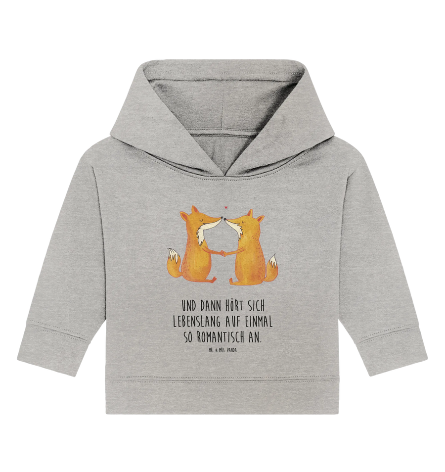 Organic Baby Hoodie foxes Love - 12. - 18. Monat - with saying - Heather Grey