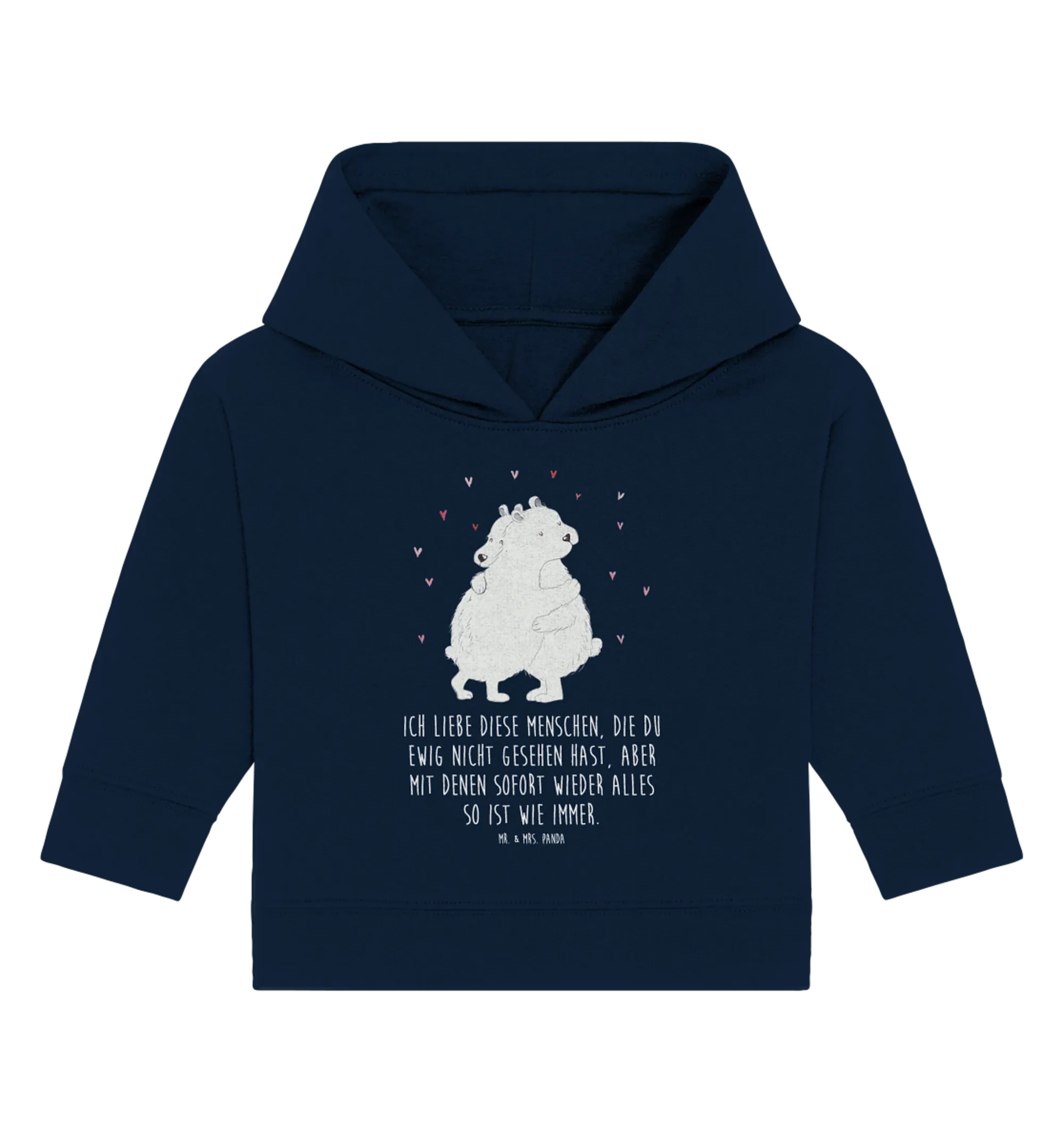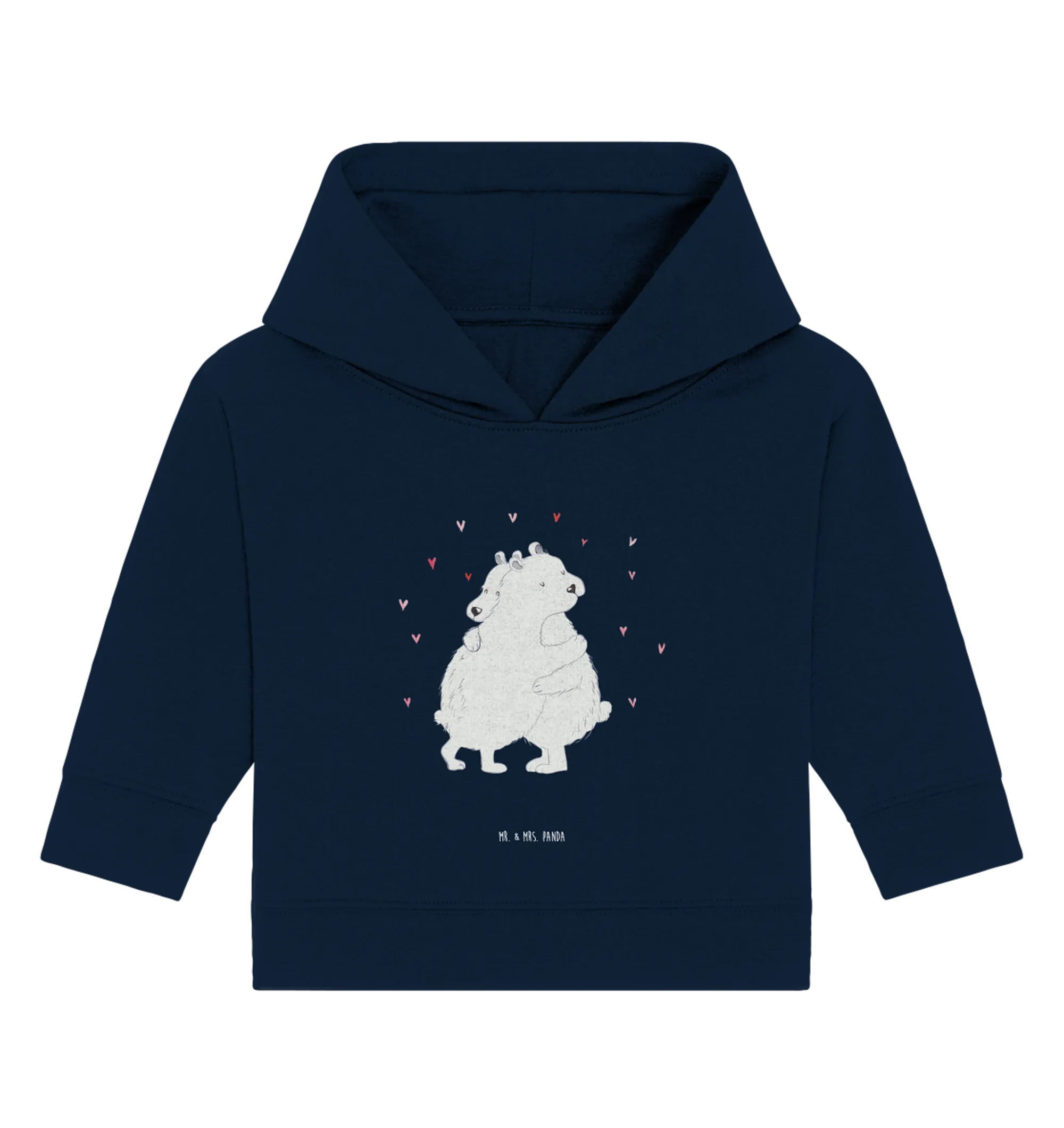 Organic Baby Hoodie Icebear Embrace - 12. - 18. Monat - with saying - French Navy
