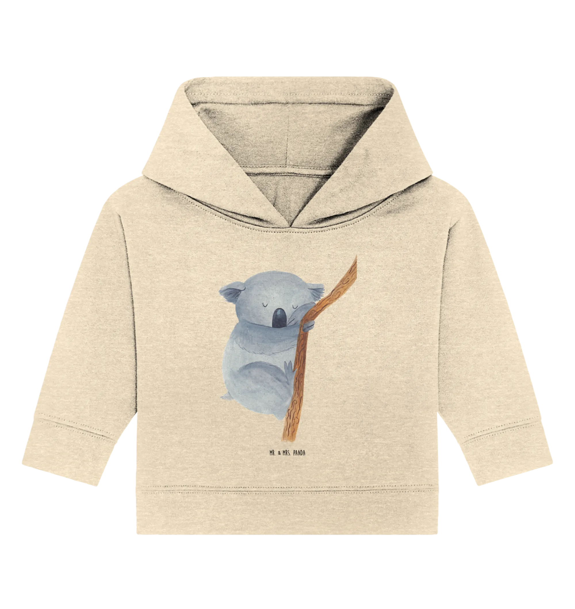 Introducing the Organic Baby Hoodie with a delightful koala motif from our enchanting Small World collection! This adorable baby hoodie is more than just a piece of clothing; it's a cozy hug that wraps your little one in warmth and cuteness. Perfect for tiny tots aged 24 to 36 months, this hoodie features a lovingly hand-drawn design of a cute sleeping koala, making it a perfect addition to any baby's wardrobe.