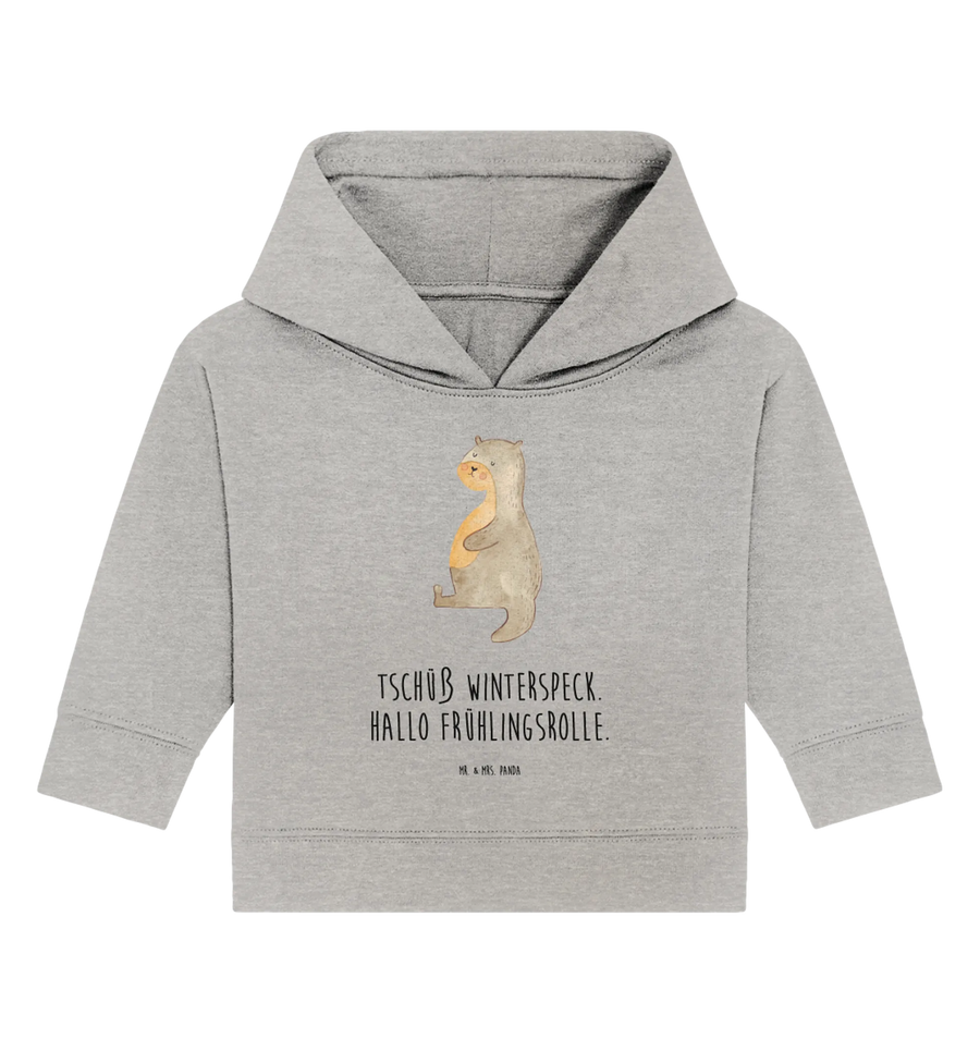 Organic Baby Hoodie otter Belly - 12. - 18. Monat - with a saying - Heather Grey