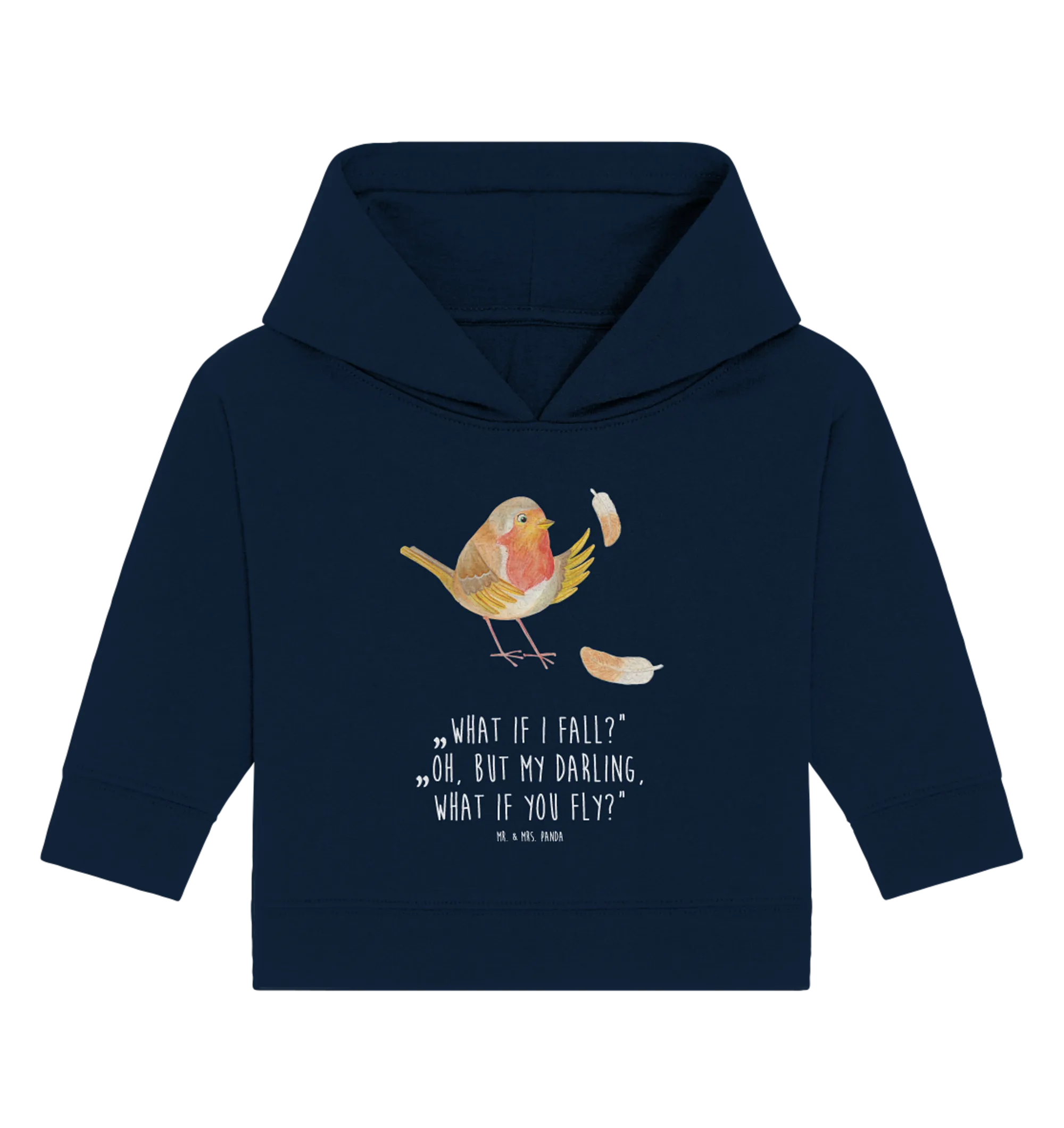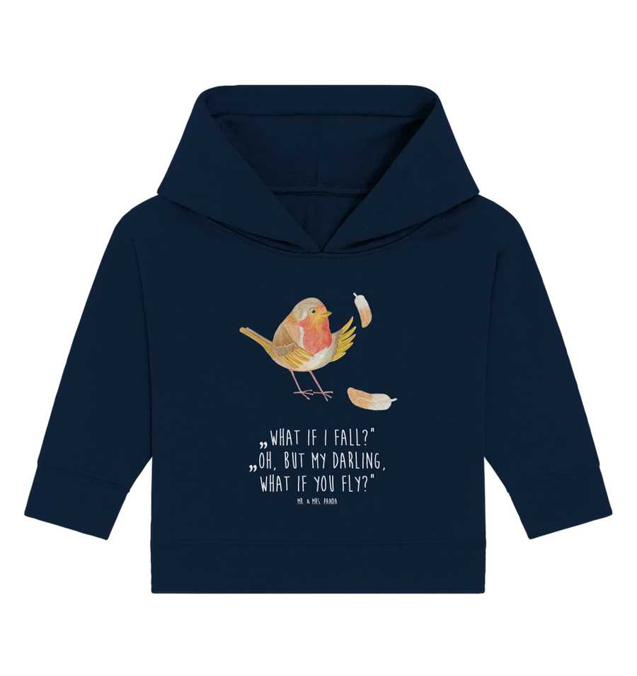 Organic Baby Hoodie robin feathers Baby Pullover, Baby Hoodie, Baby Kapuzensweatshirt, Baby Kapuzenshirt, Tiermotive, Lustige Sprüche, Tiere, Gute Laune, Motivation Sprüche, Vogel, Spruch Motivation, Spruch Mut, Rotkehlchen, Motivationsbilder, fliegen, What If I Fall