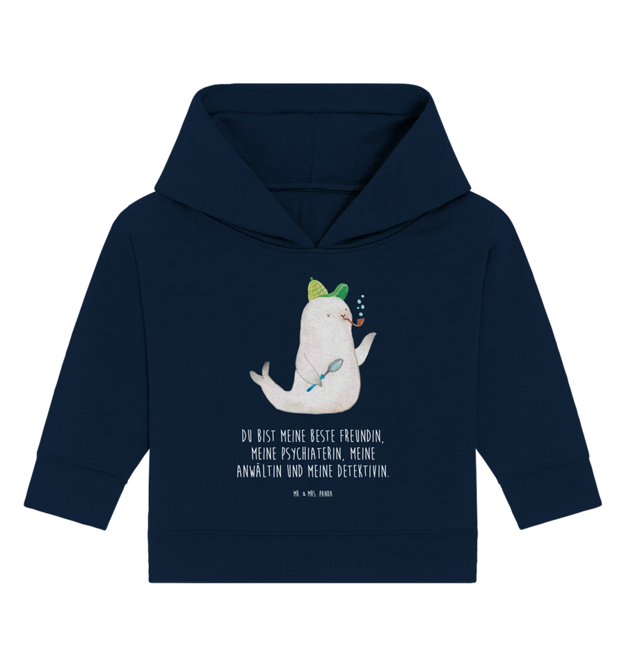 Organic Baby Hoodie seal sherlock - 12th - 18th month - with saying - French Navy