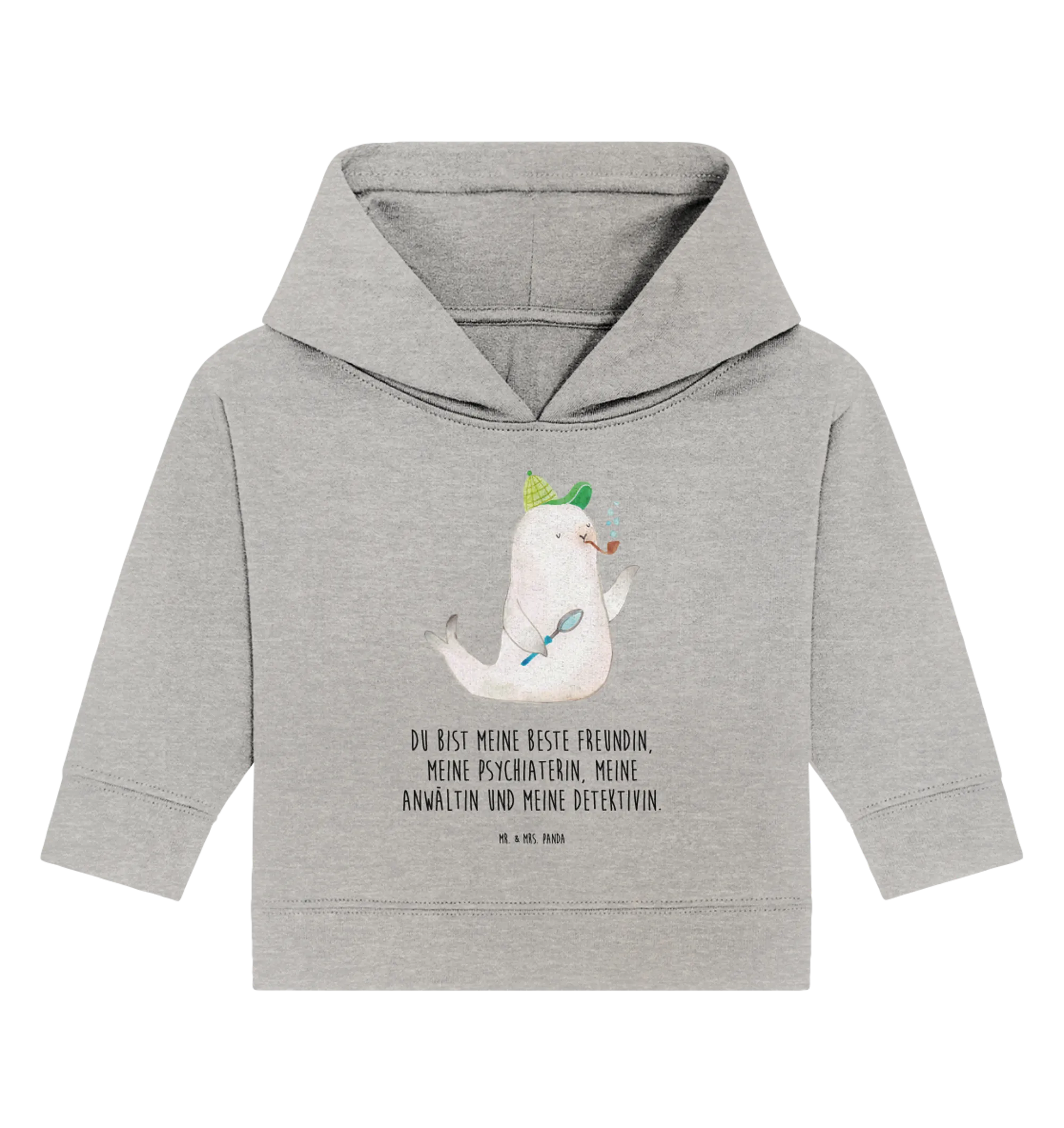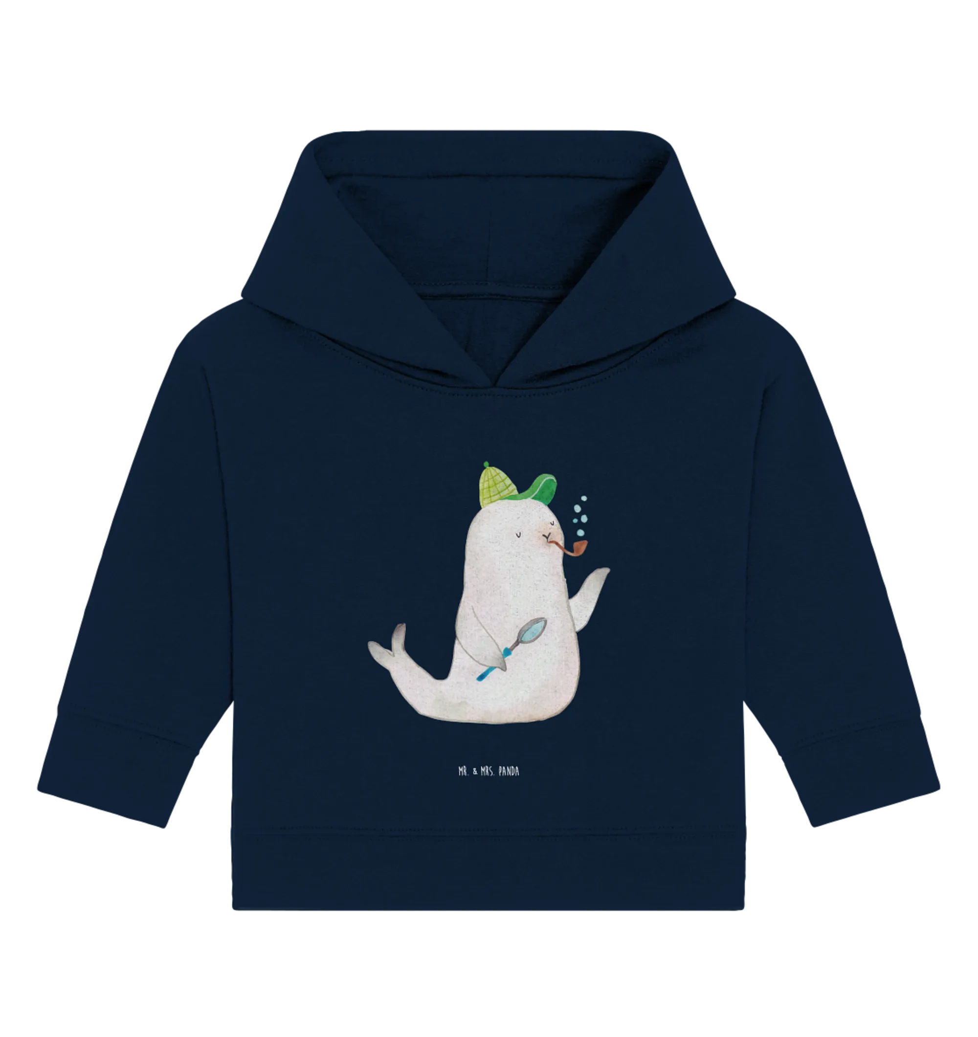 The beautiful design showcases the Sherlock Seal, a whimsical detective ready to solve mysteries and spread joy! Imagine your baby wearing this cute hoodie, diving into a world of fun with the charming seal as their companion. Whether it's a playdate with friends or family outings, this hoodie will surely be a conversation starter, bringing smiles and laughter wherever you go. The captivating motif of the Sherlock Seal is hand-drawn, reflecting our commitment to art and creativity. This delightful design doesn’t need any words to convey its charm; the sweet expression of the seal speaks volumes, inviting everyone to join in the fun.