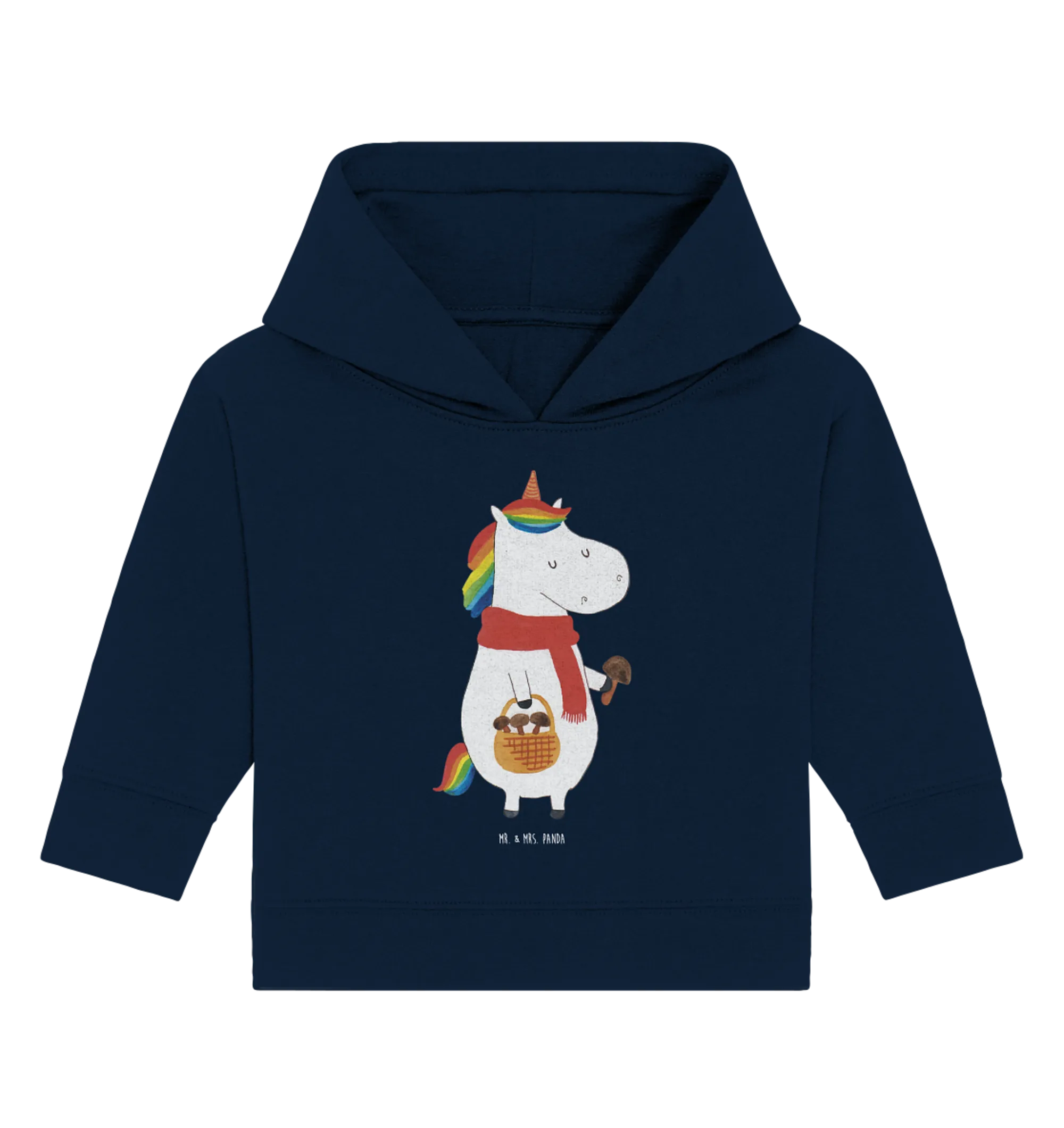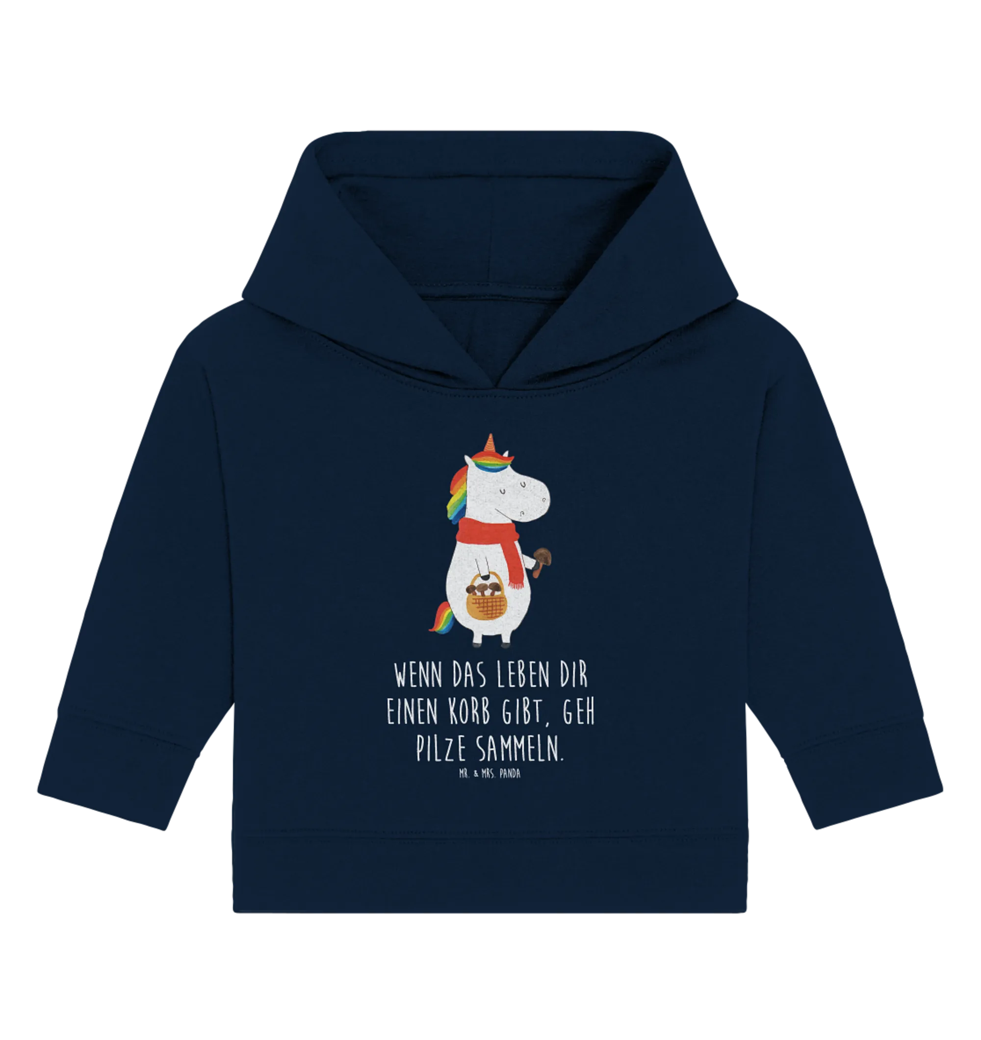 Organic Baby Hoodie unicorn Mushroom - 12th - 18th month - with a saying - French Navy