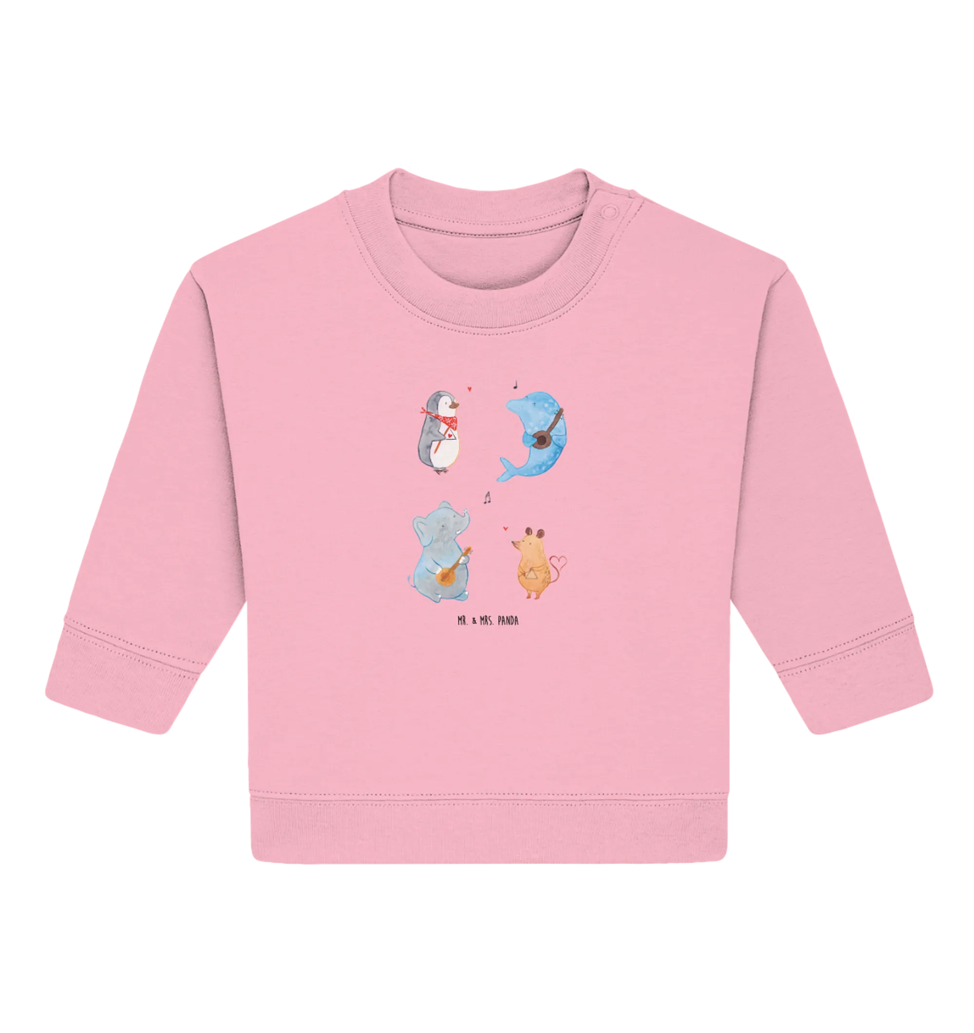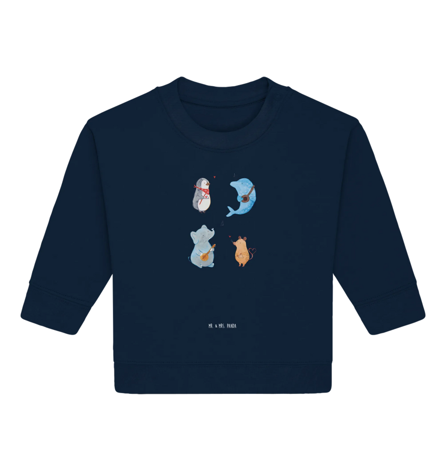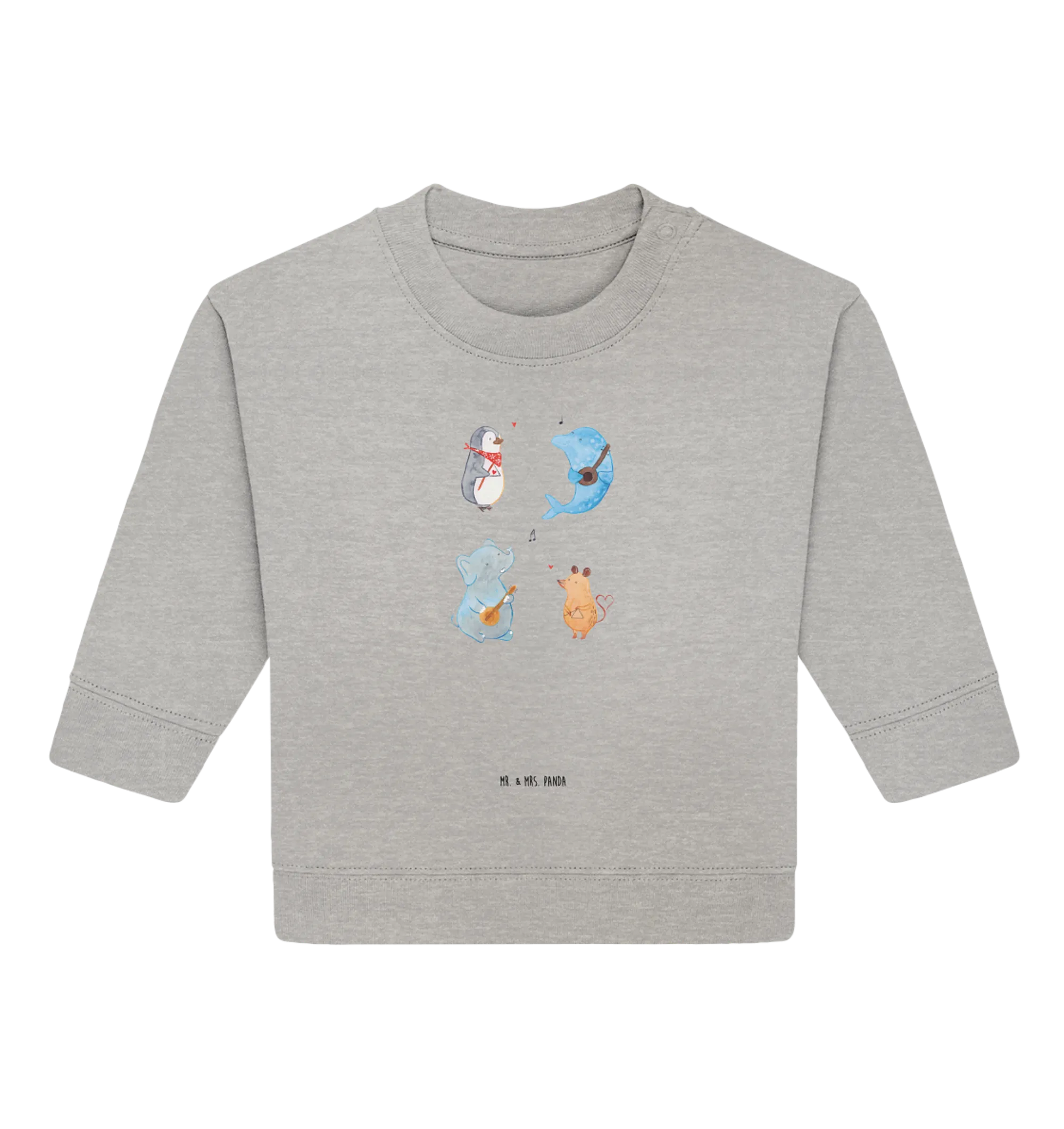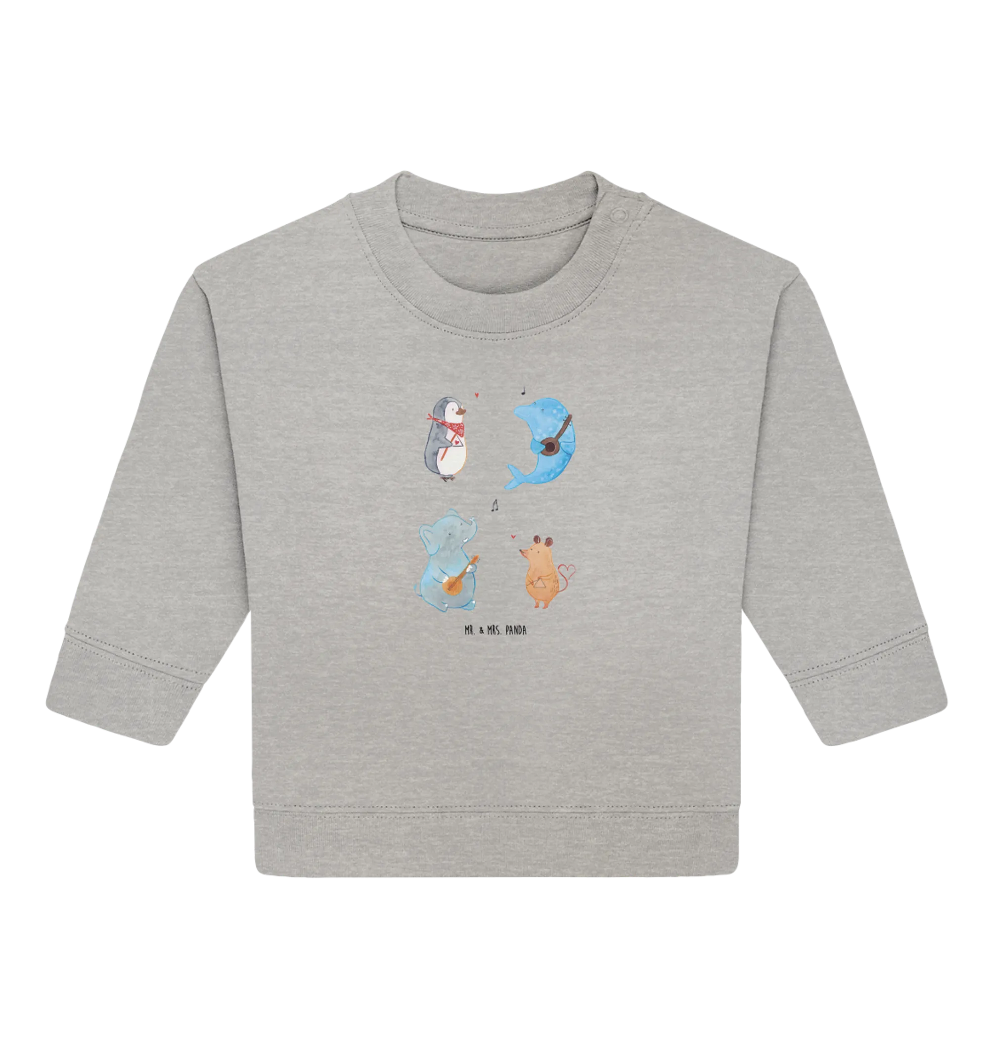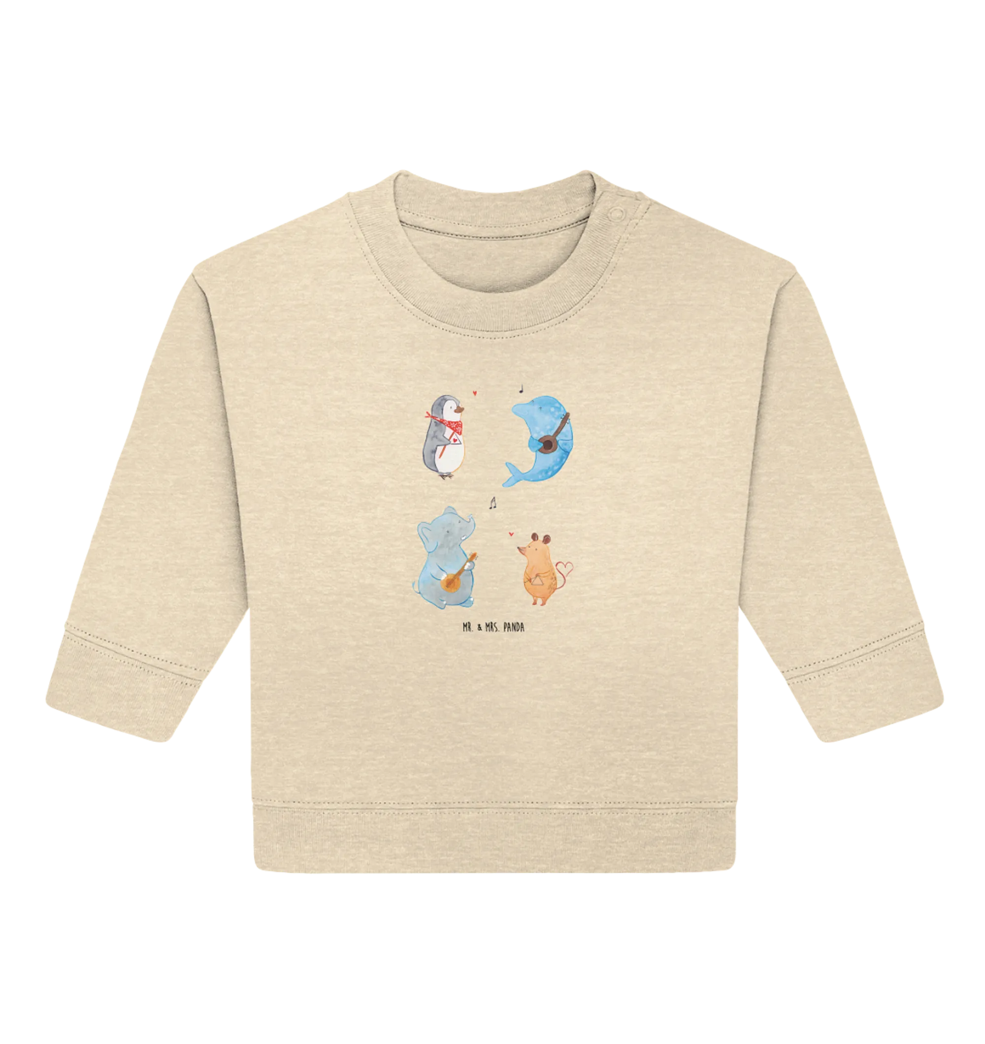 Der Organic Baby Pullover "Big Band" aus der zauberhaften Small World Kollektion von Mr. & Mrs. Panda ist das perfekte Geschenk für kleine Musikliebhaber und frischgebackene Eltern! Dieser entzückende Pullover bringt nicht nur gute Laune ins Kinderzimmer, sondern erinnert mit seinem fröhlichen Tiermotiv an eine legendäre Big Band bestehend aus einem Pinguin, einer Maus, einem Delfin und einem Elefanten. Diese lustige Truppe sorgt für viel Freude und Inspiration und lässt die Kinderherzen höher schlagen. Ob für den nächsten Kindergeburtstag, ein Fest oder einfach als liebevolle Überraschung – mit diesem Baby Pullover machst du definitiv alles richtig!