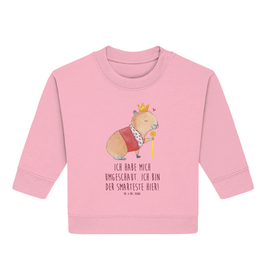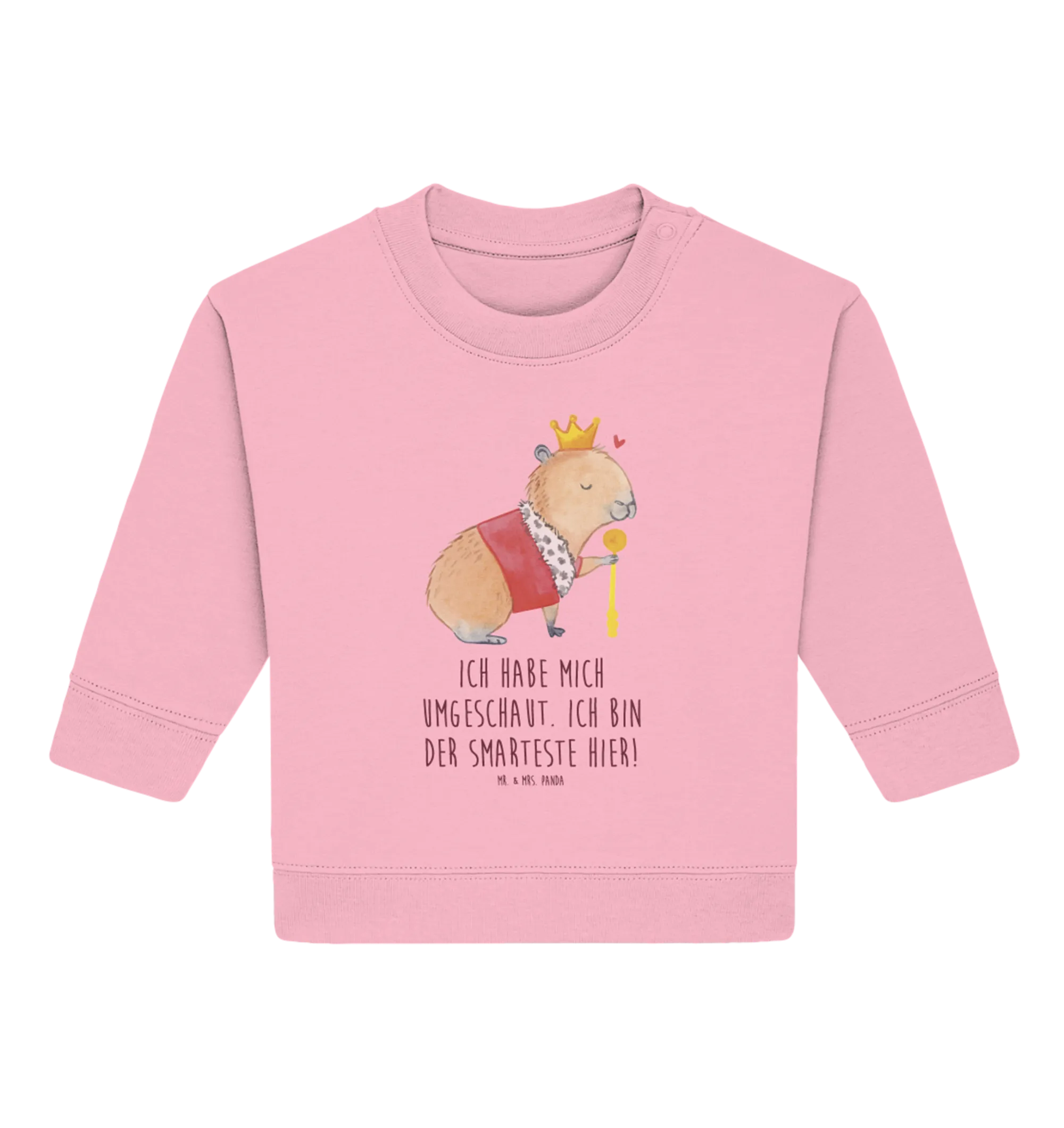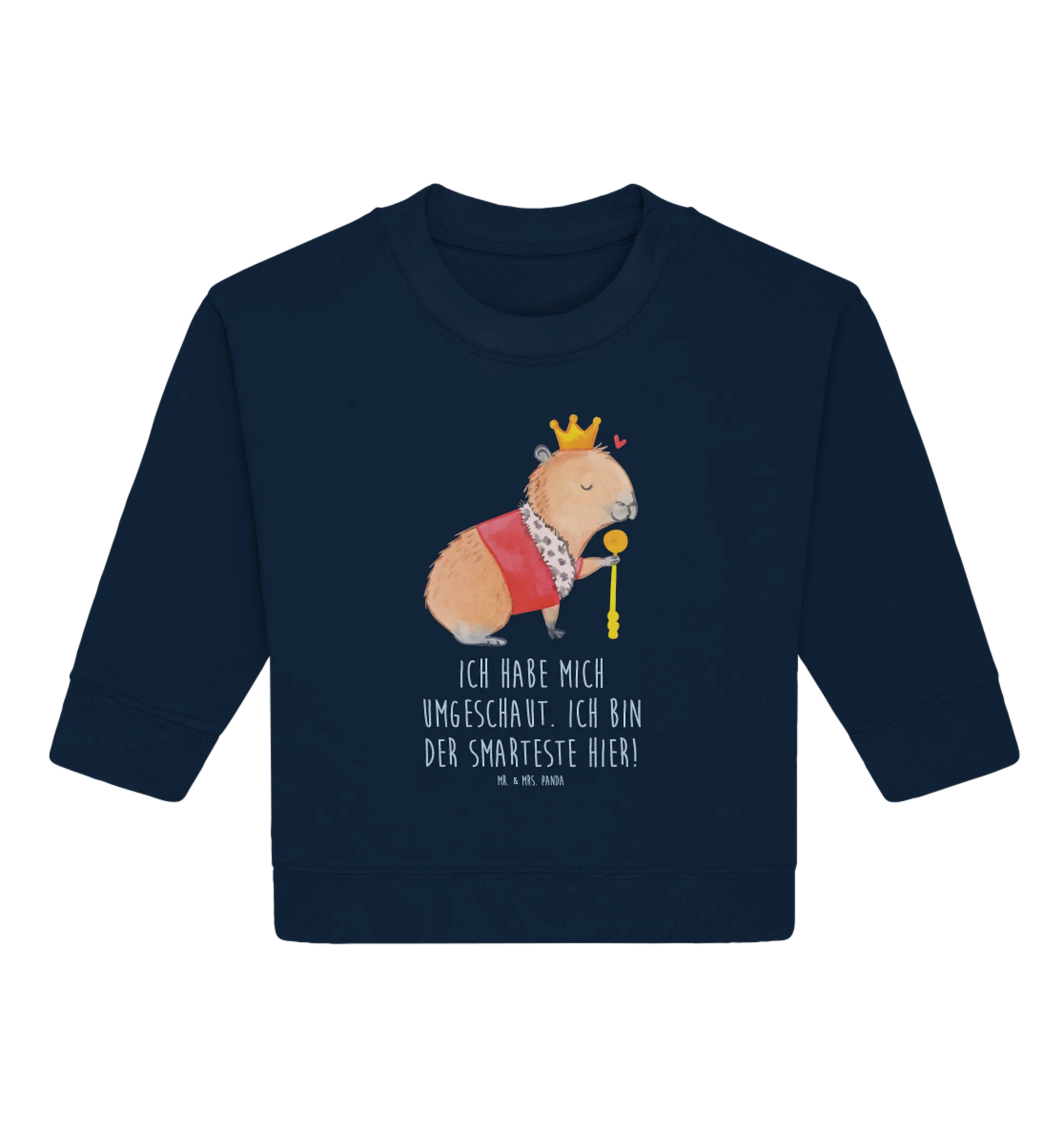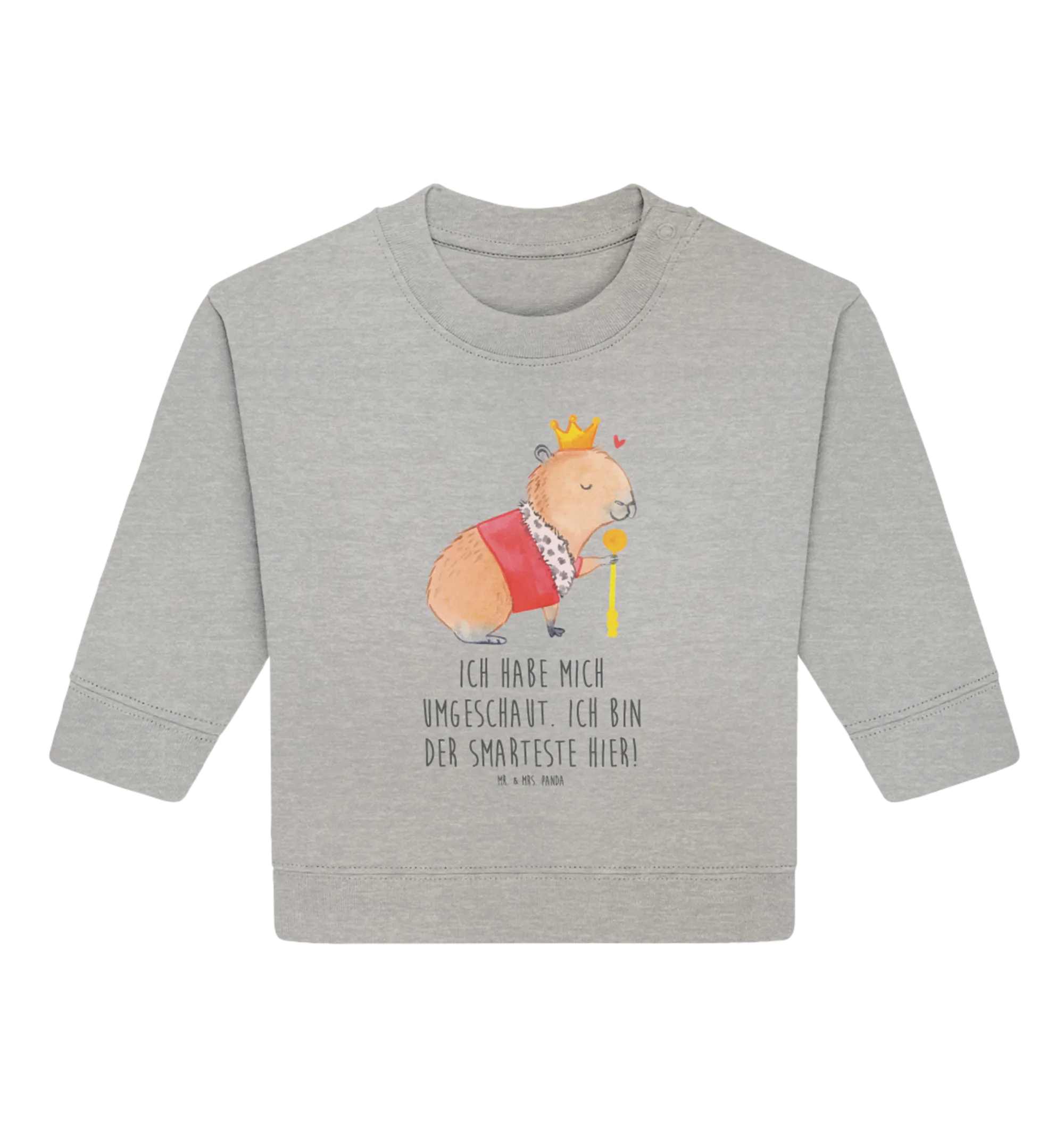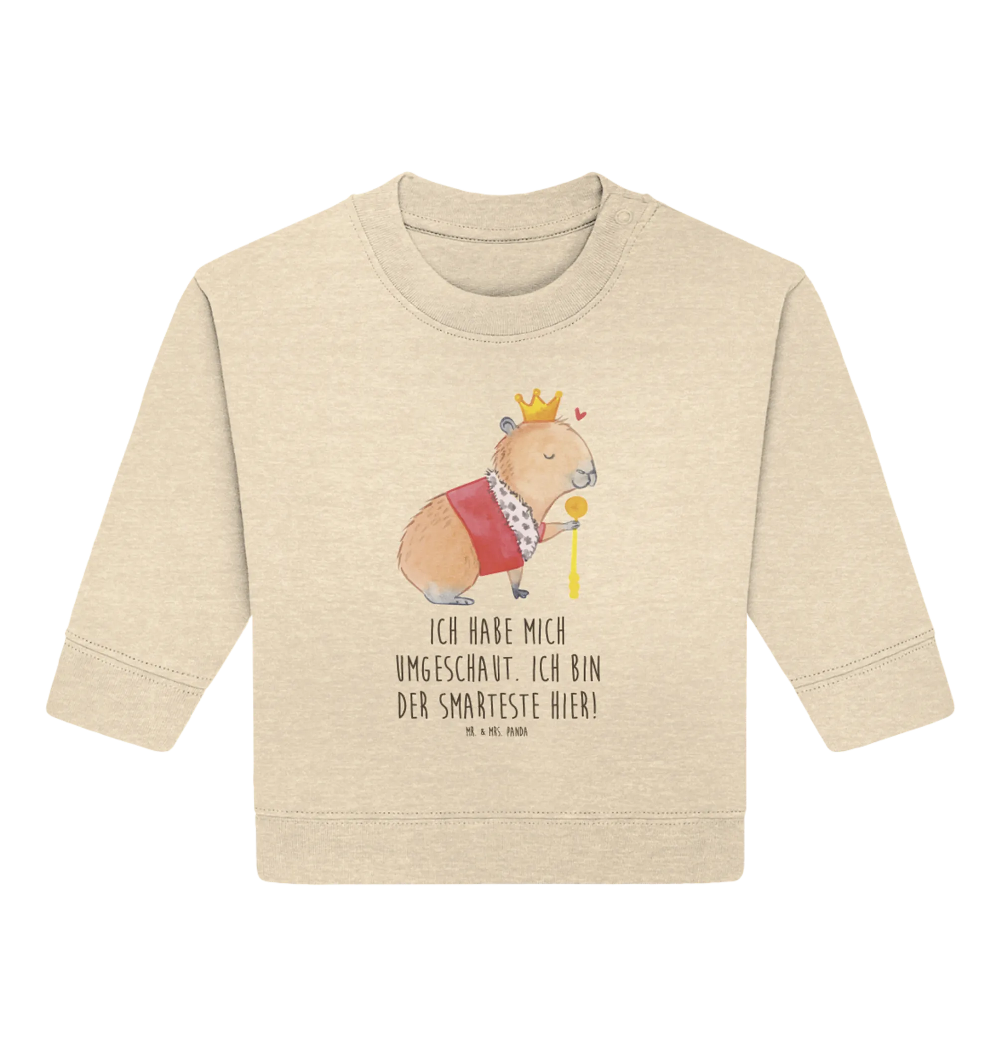 Das perfekte Geschenk für kleine Abenteurer und tierliebe Eltern ist unser zauberhafter Organic Baby Pullover mit dem Motiv "Capybara König" aus der besonderen Small World Kollektion von Mr. & Mrs. Panda! Stell dir vor, wie dein Kleines in diesem wundervollen Pullover strahlt, während es die Welt erkundet und neue Freunde trifft. Der Pullover ist nicht nur super weich und gemütlich, sondern wird auch aus hochwertiger, ökologischer Baumwolle hergestellt, die sanft zur zarten Babyhaut ist.