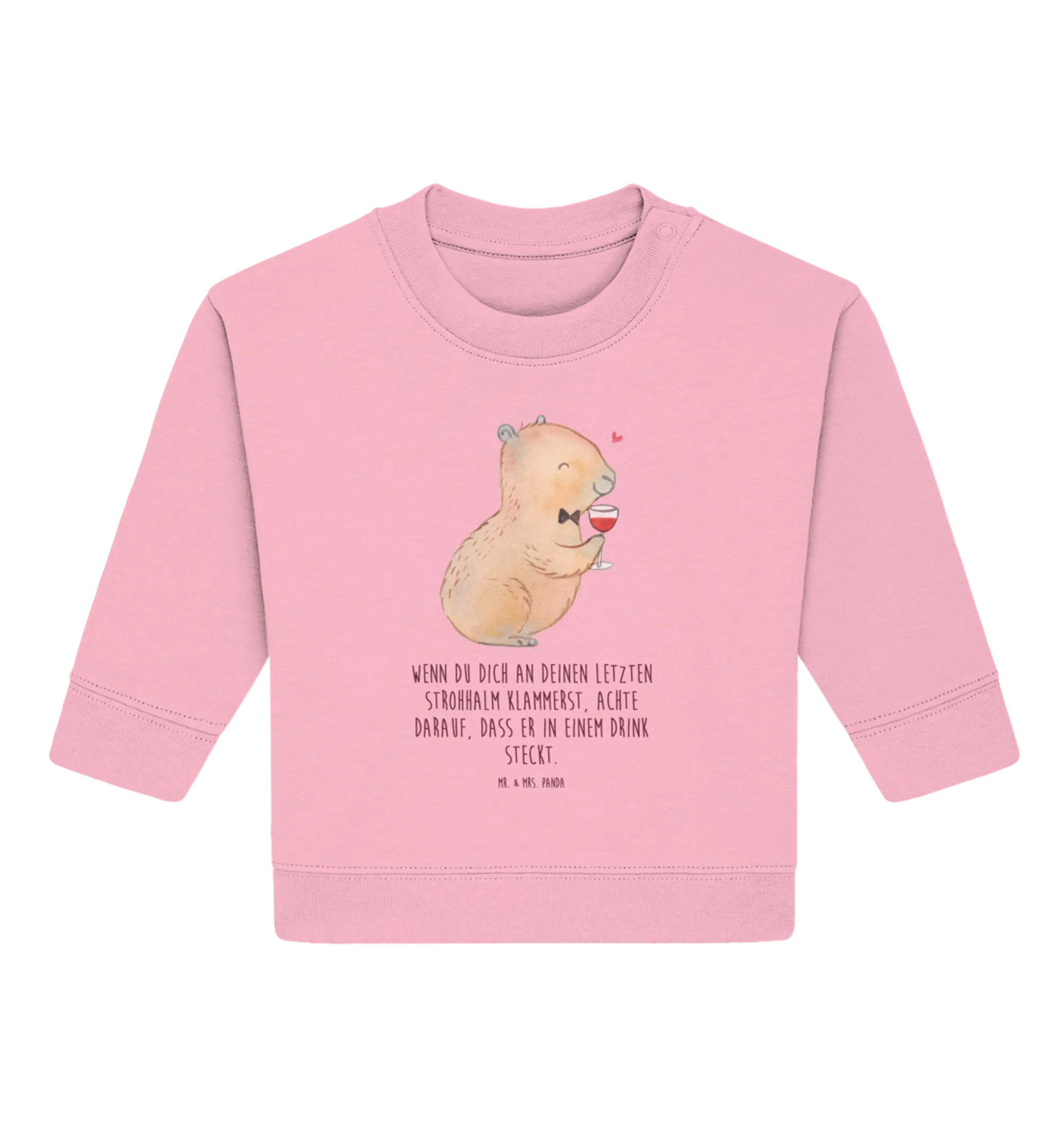 Entdecke den zauberhaften Organic Baby Pullover mit dem einzigartigen Capybara Wein Motiv aus der beliebten Small World Kollektion von Mr. & Mrs. Panda. Dieses witzige und herzliche Design verkörpert nicht nur die Liebe zum Wein, sondern bringt auch eine ordentliche Portion Freude in den Alltag Deiner kleinen Lieblinge. Der Pullover ist aus hochwertiger, nachhaltiger Öko-Baumwolle gefertigt, die besonders weich und angenehm auf der zarten Babyhaut ist.