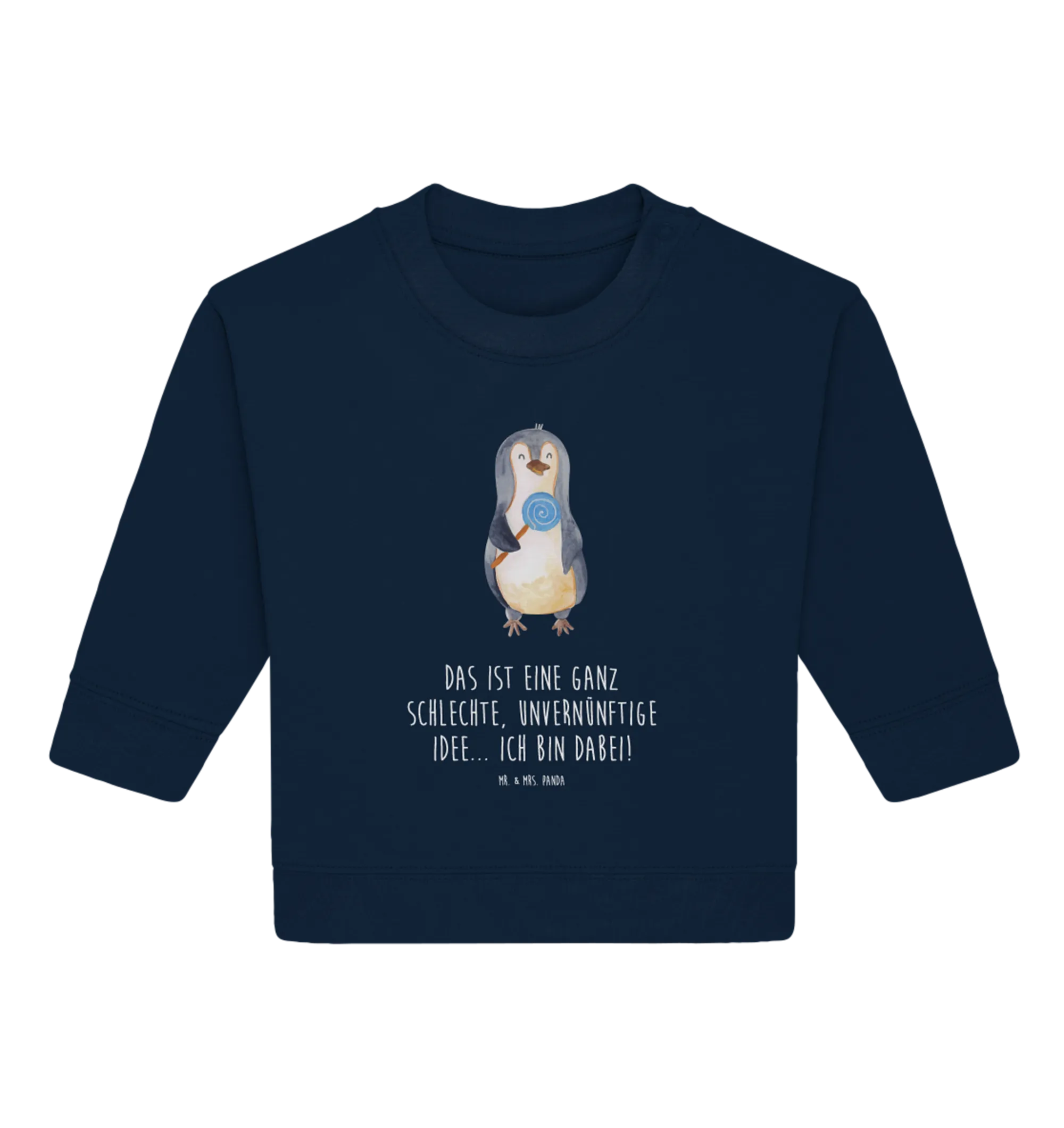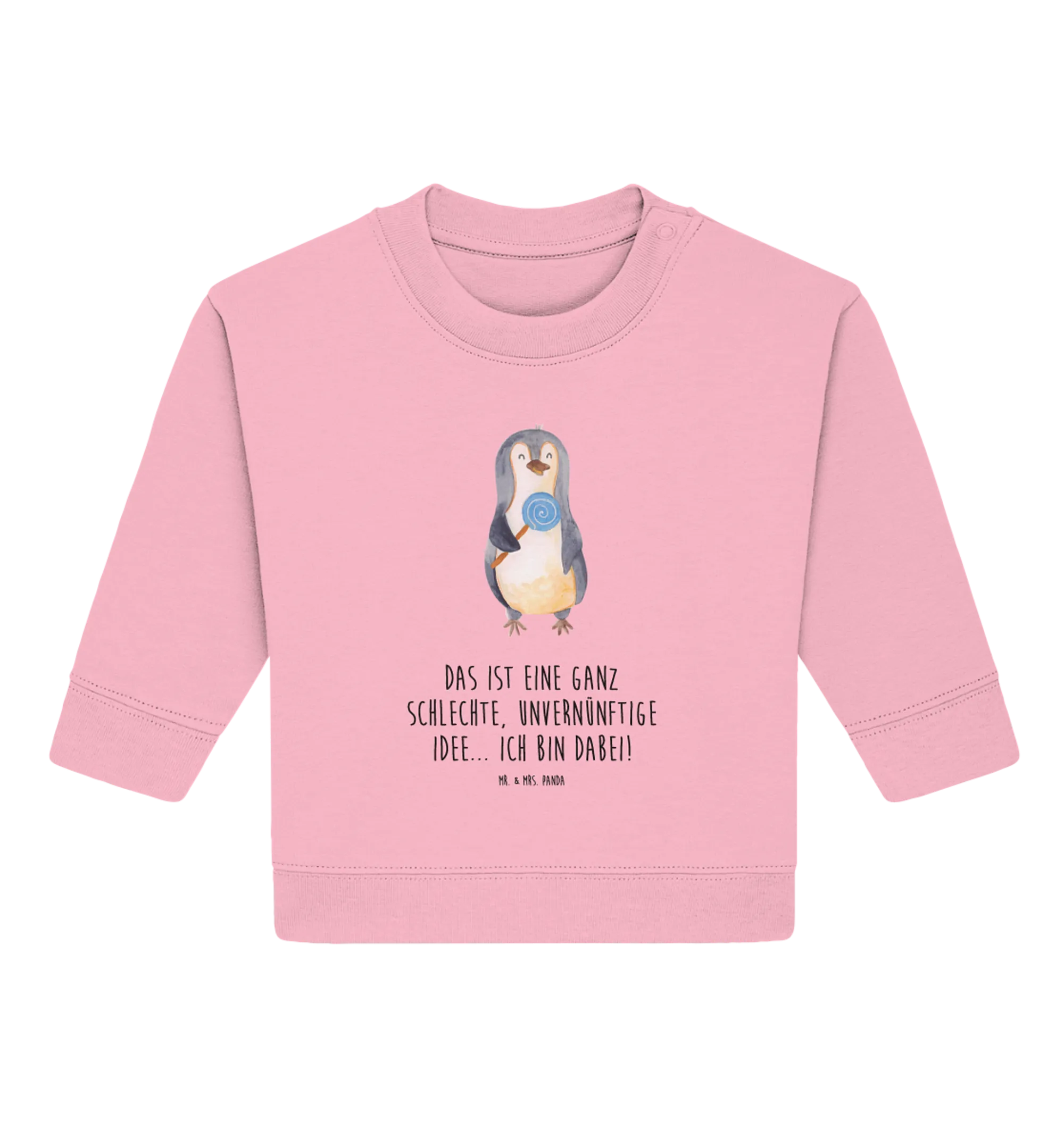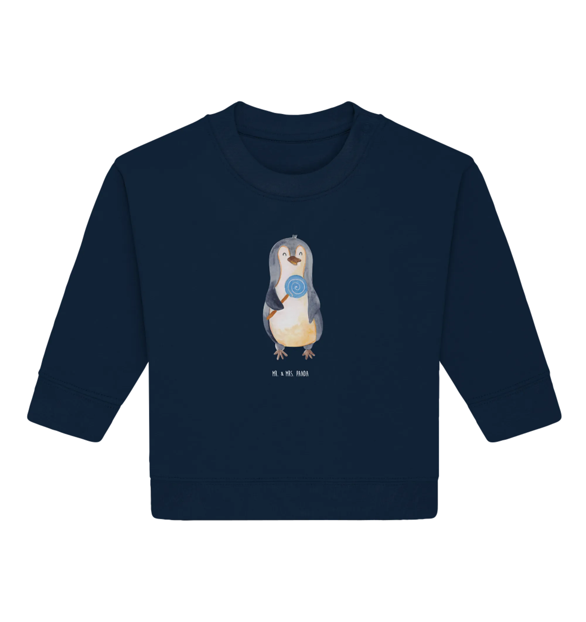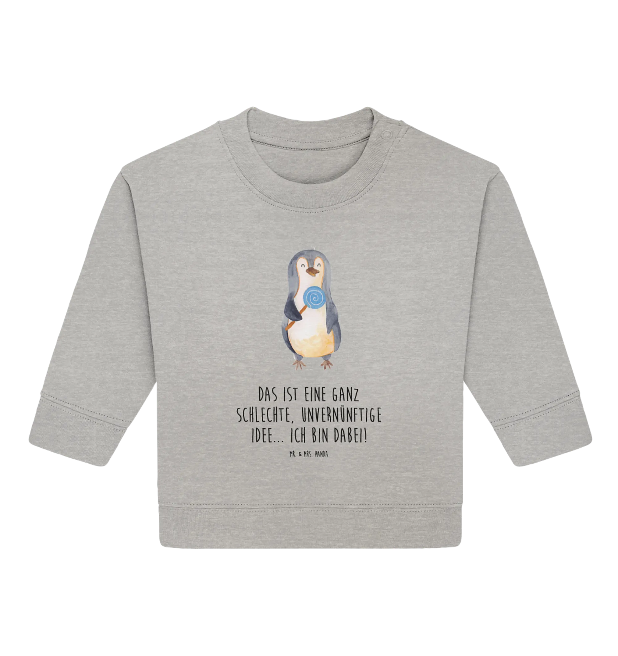 Are you searching for the perfect gift for your little one or a special baby in your life? Look no further! The Organic Baby Pullover featuring the adorable Penguin Lollipop motif from the Mr. & Mrs. Panda Penguin - Collection is here to melt hearts and keep your baby snug and stylish. This baby sweatshirt is an ideal blend of warmth, comfort, and cuteness, making it a must-have addition to any baby wardrobe!