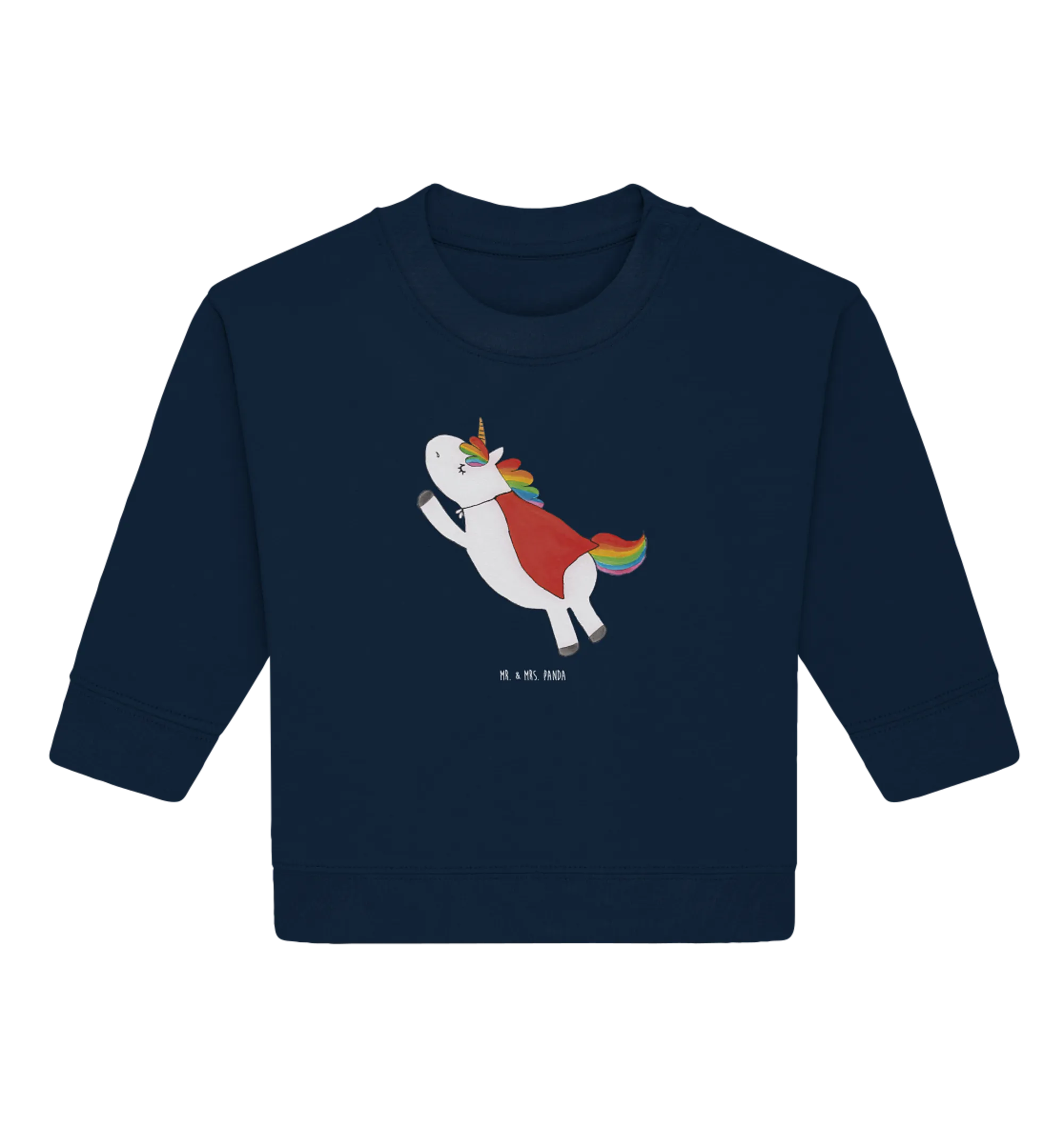 Searching for the perfect gift for that little superhero in your life? Look no further than our Organic Baby Pullover featuring the enchanting Unicorn Superman Birthday motif from the delightful Unicorn - Collection by Mr. & Mrs. Panda!