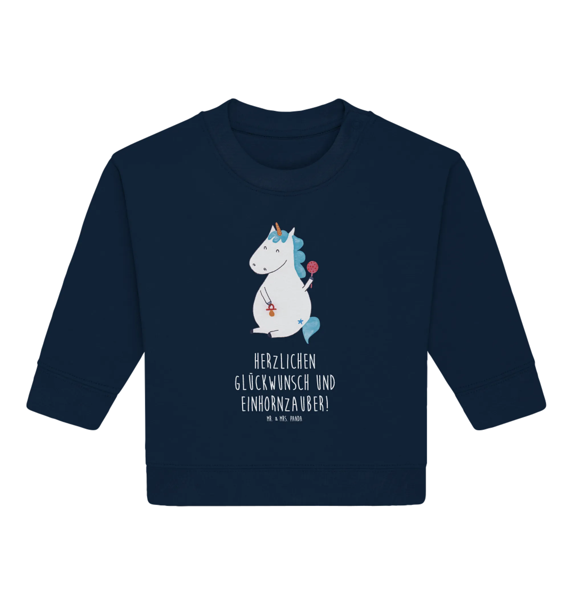 Egal ob als Geschenk zur Geburt, zum Geburtstag oder einfach nur so, der "Einhorn Baby" Pullover wird garantiert für strahlende Gesichter sorgen! Und da jedes Motiv von Mrs. Panda handgezeichnet ist, bekommst du ein Unikat, das seinesgleichen sucht. Greif zu und bereite einer Familie eine unvergessliche Freude!