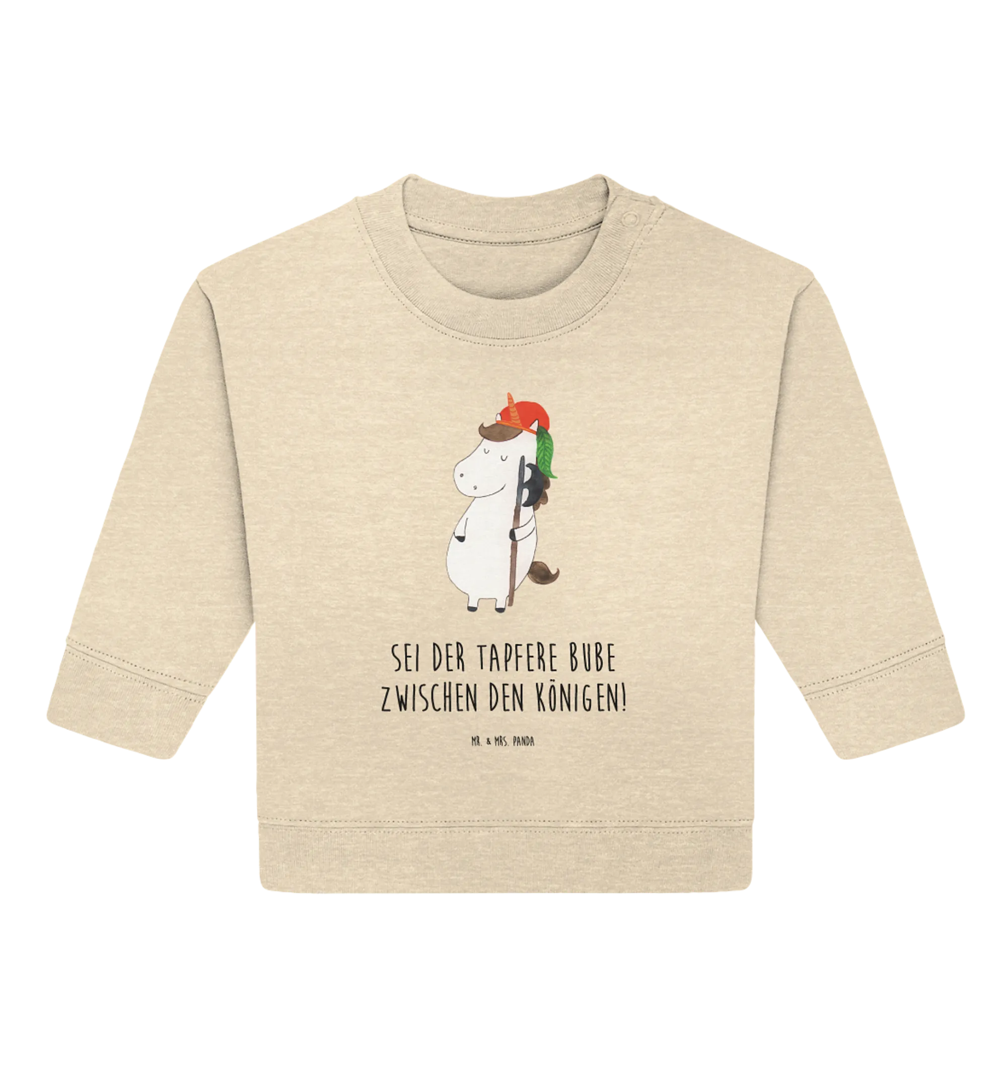 Looking for that perfect gift for a baby shower, birthday, or just because? The Organic Baby Pullover with Unicorn Jack is an ideal choice! Parents and grandparents alike will appreciate the thoughtful design and the whimsical charm it brings. It’s a gift that encourages creativity and playfulness, making it perfect for any occasion. This pullover captures the spirit of imagination, reminding little ones that they can be anything, even brave knights between kings with the slogan "Sei der tapfere Bube zwischen den Königen!" while they wear their magical unicorn buddy!