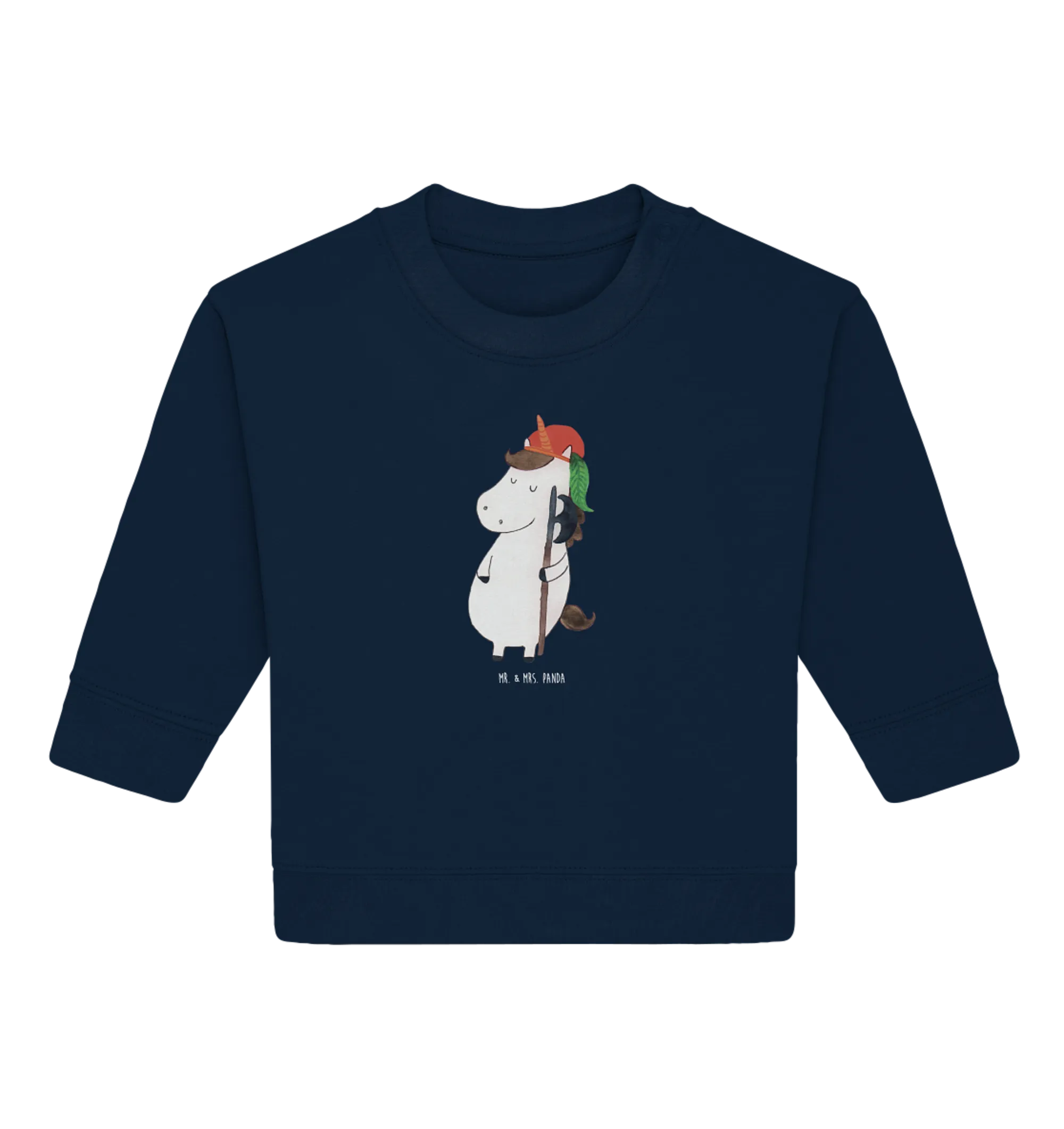 Picture your tiny tot in a charming pullover featuring Unicorn Jack, a captivating unicorn character adorned with playful accessories. With its friendly appearance, complete with a helmet and a whimsical pose, this unicorn pulls at the heartstrings of anyone who sees it. Designed with love and care in Hanover, Germany, each piece boasts unique hand-drawn artwork by Mrs. Panda, ensuring your baby wears a true work of art.