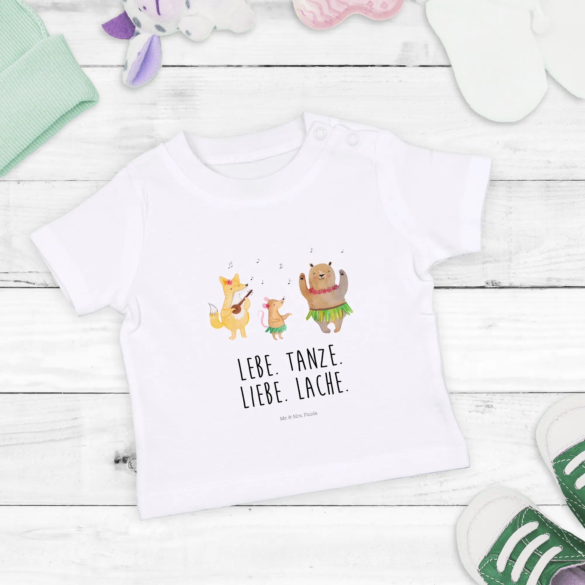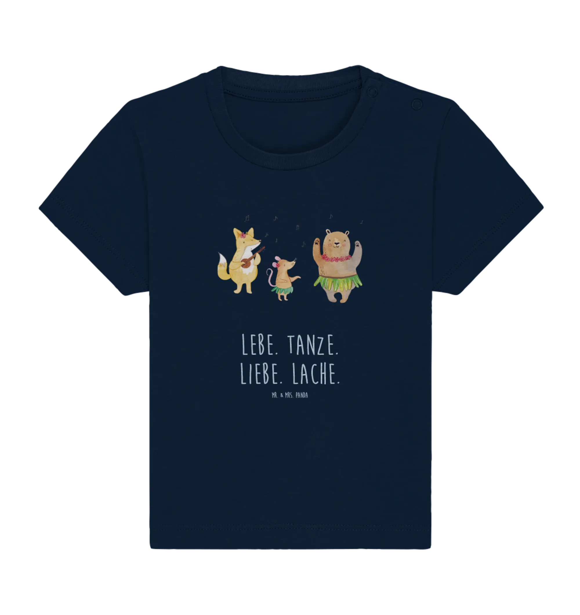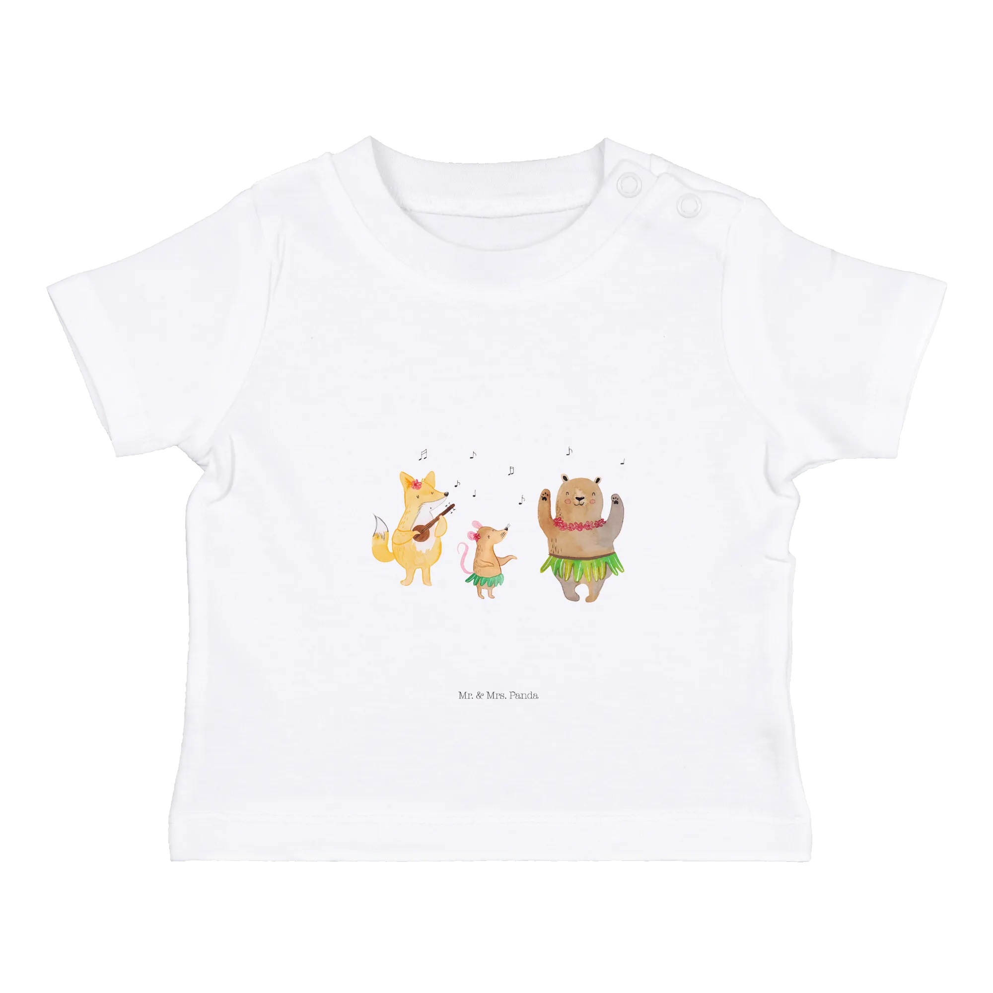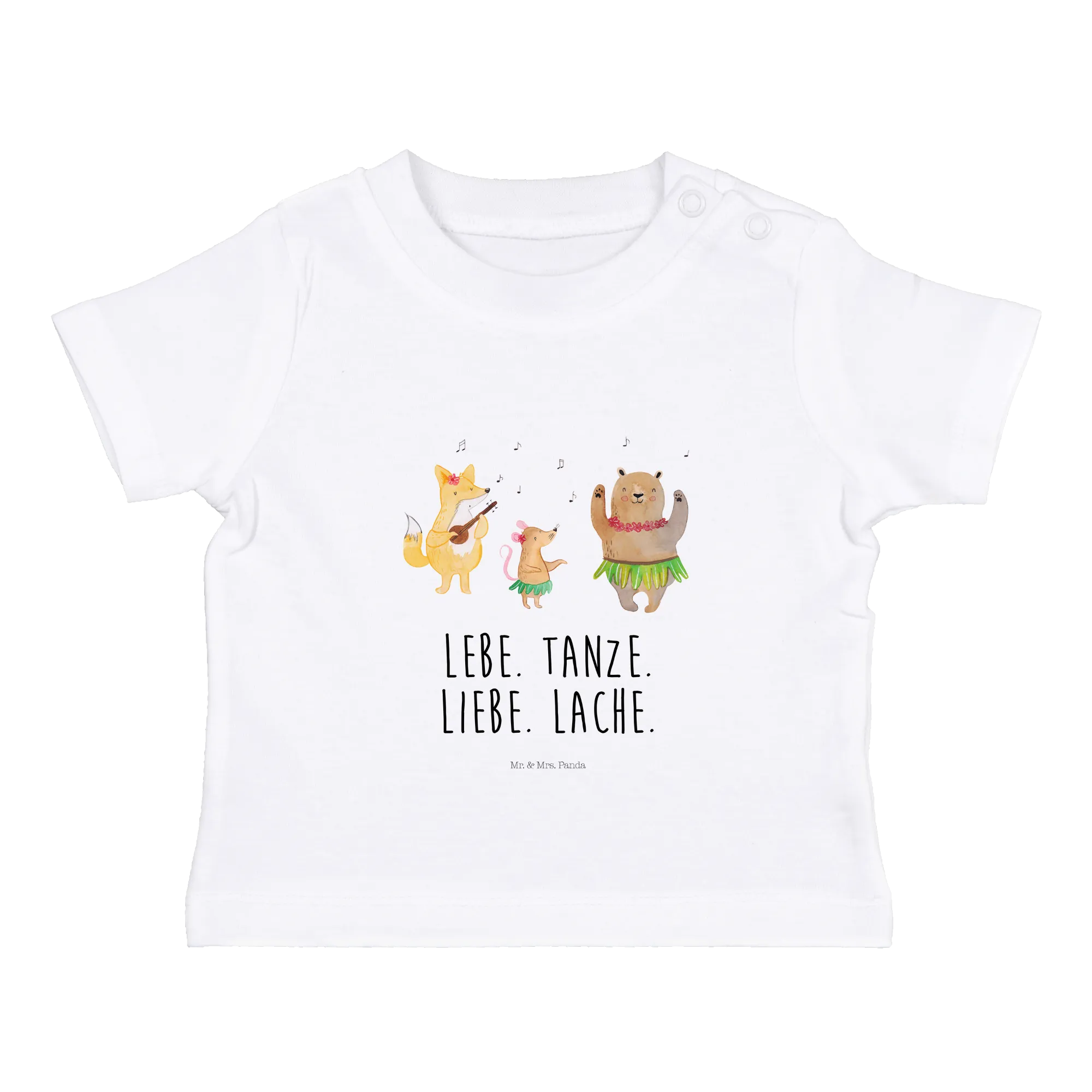 Designed for little ones aged 12 to 18 months, this shirt showcases enchanting illustrations of forest animals dancing joyfully to Hawaiian tunes. Can you picture a bear in a hula skirt, a rabbit swaying to the beat, and a hedgehog twirling amidst the trees? With its vibrant colors and hand-drawn motifs by Mr. & Mrs. Panda, this shirt is an invitation to explore the small world of nature in the cutest way possible!