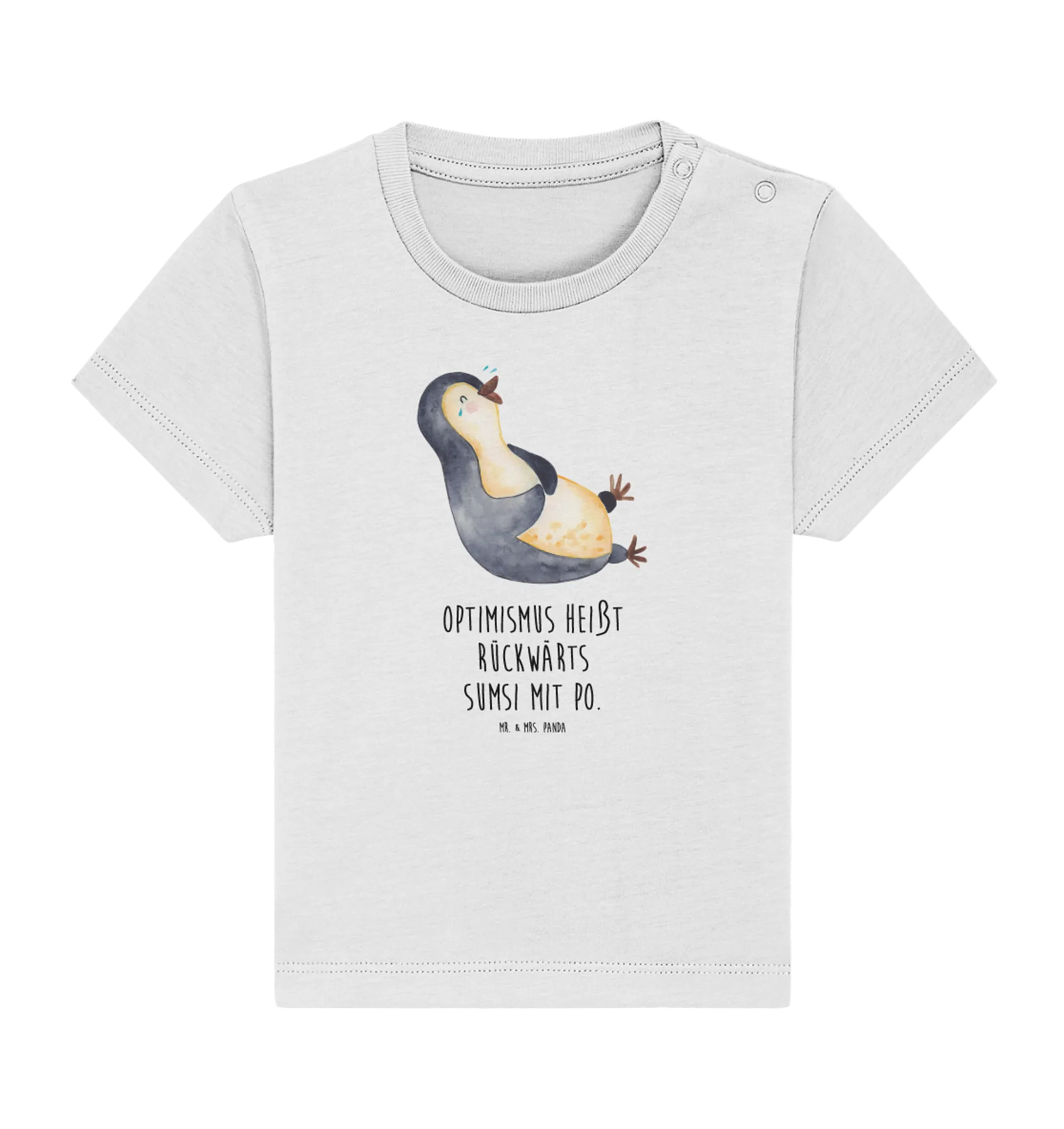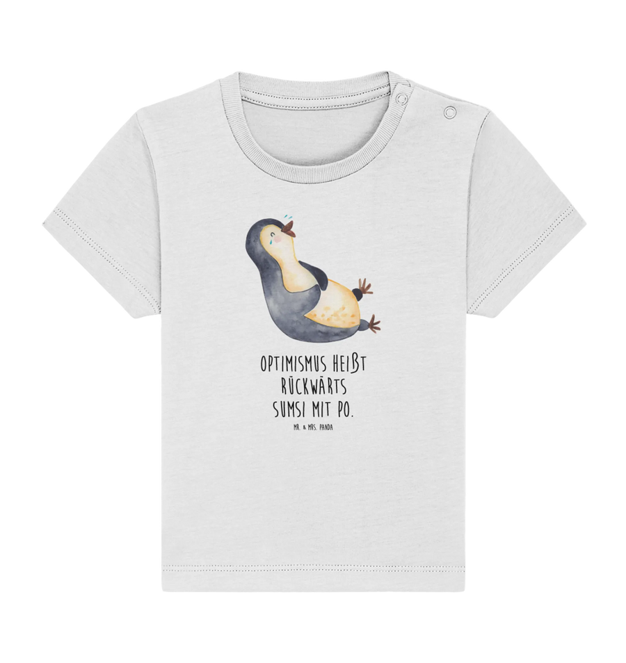 Crafted from 100% organic cotton, this baby shirt is not only soft against sensitive skin but also eco-friendly. Parents will appreciate the choice of sustainable materials, knowing they are making a gentle impact on the planet while dressing their little ones in style. The bright white background of the shirt perfectly highlights the joyful penguin motif - a hand-drawn piece by Mr. & Mrs. Panda that will surely melt hearts.